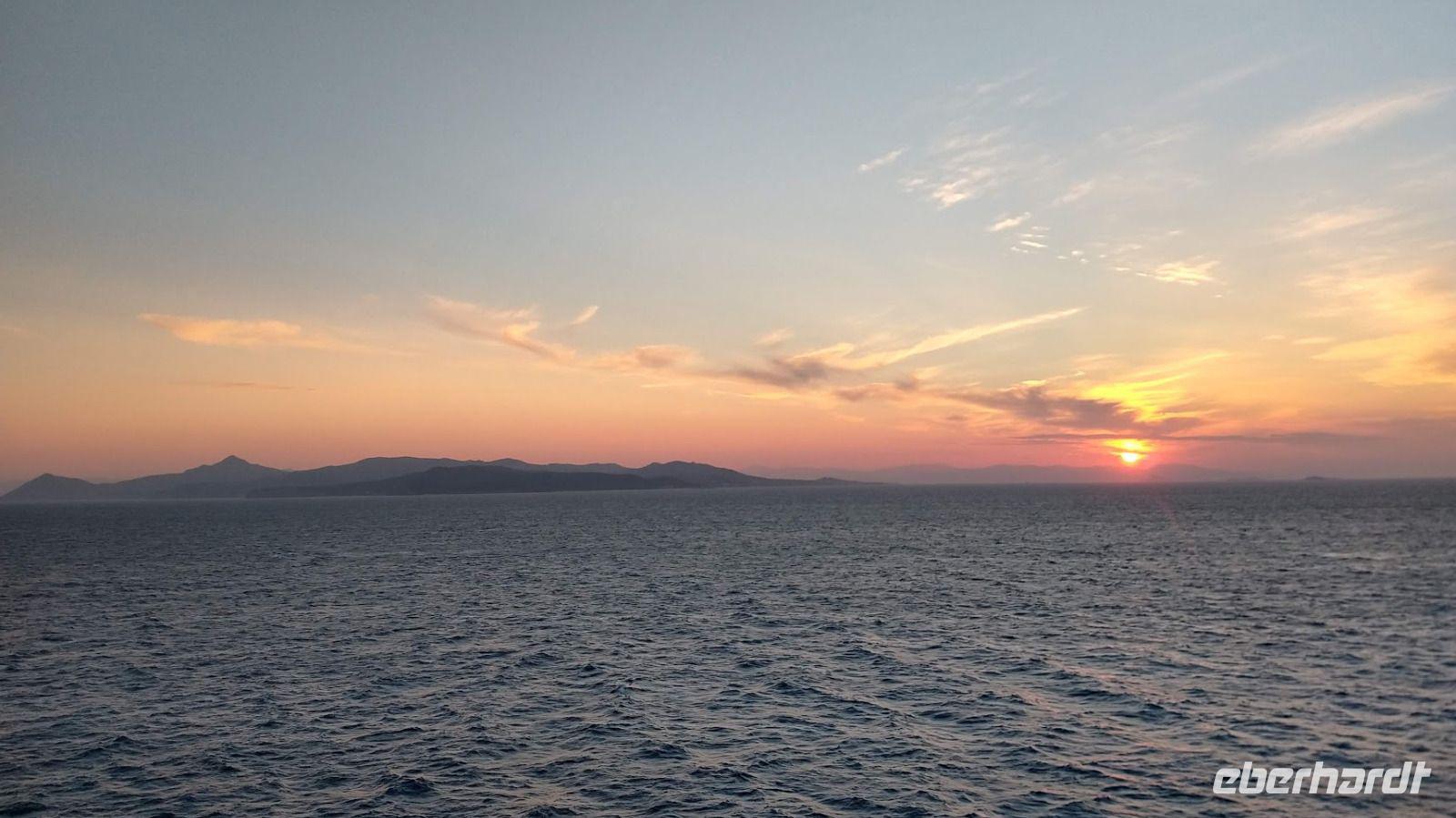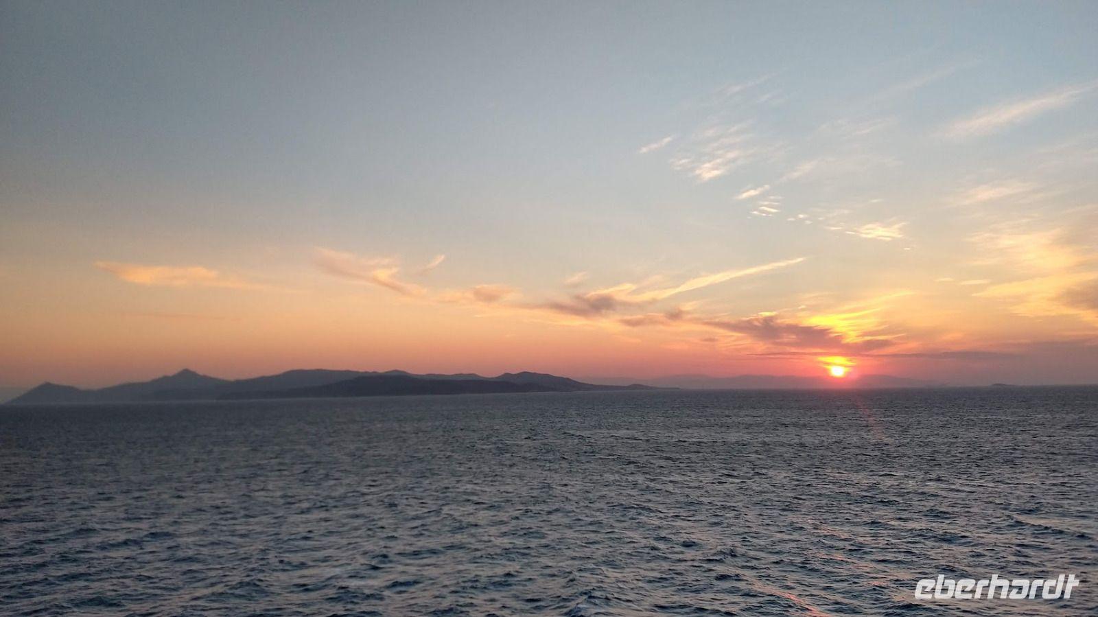 Uns erwartet ein Abends mit etwas stärkerem Seegang.