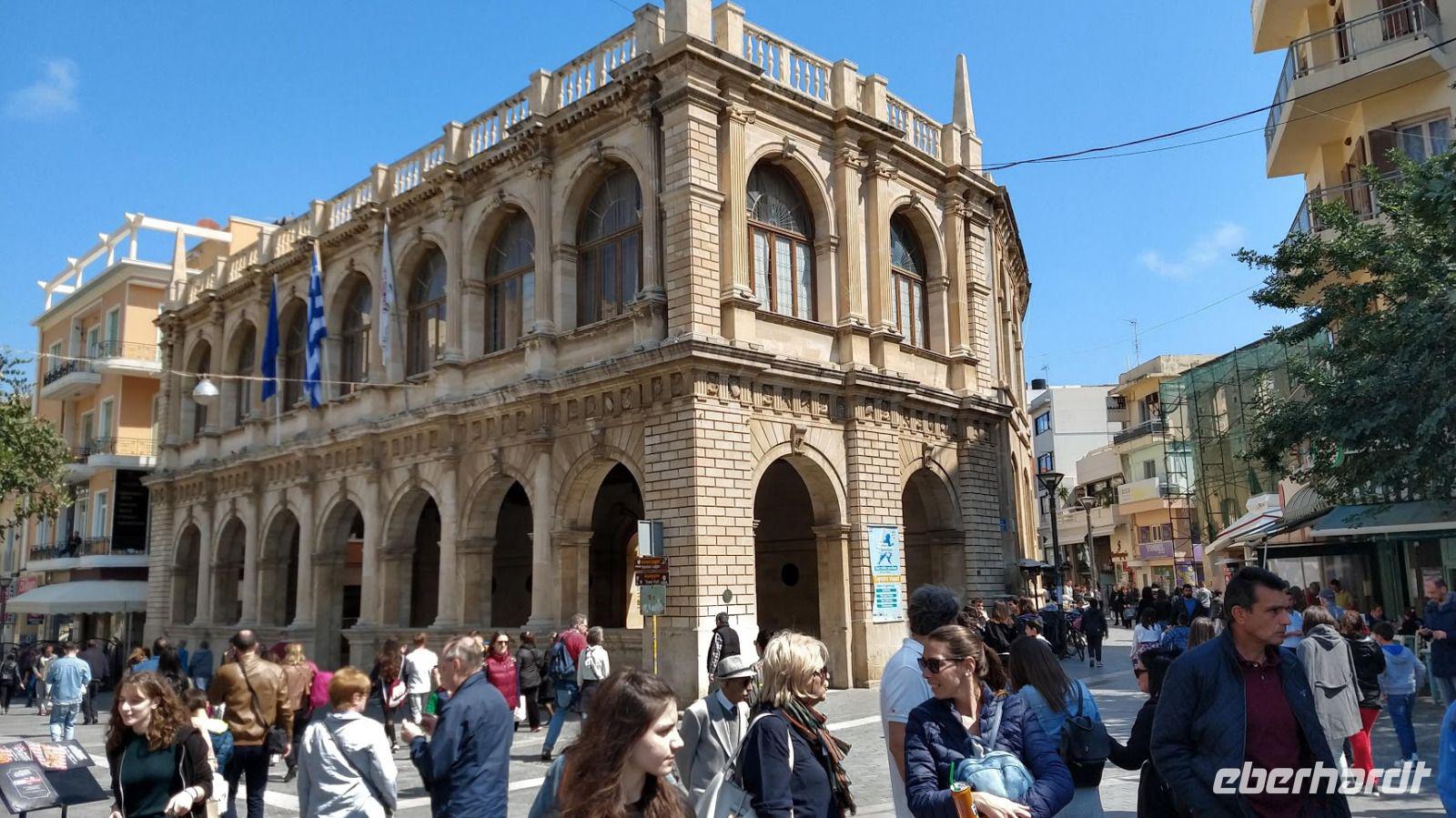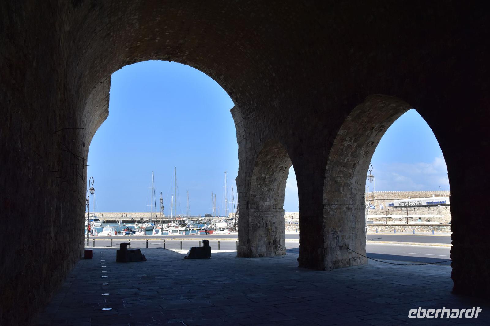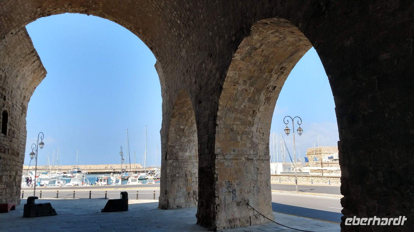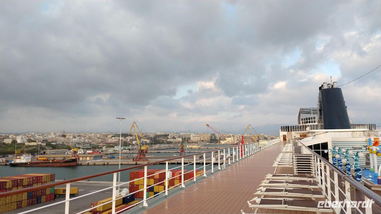 Über der Insel Kreta hängen noch Gewitterwolken und es ist ziemlich diesig als wir Heraklion erreichen. Der große Hafen auf der Nordseite ist gleichzeitig das Tor zur Insel mit seinen hohen Gebirgen im Westen, Ida-Gebirge (2456 m) und Weiße Berge (2453 m), sowie im Osten, das Dikti-Gebirge (2148 m).