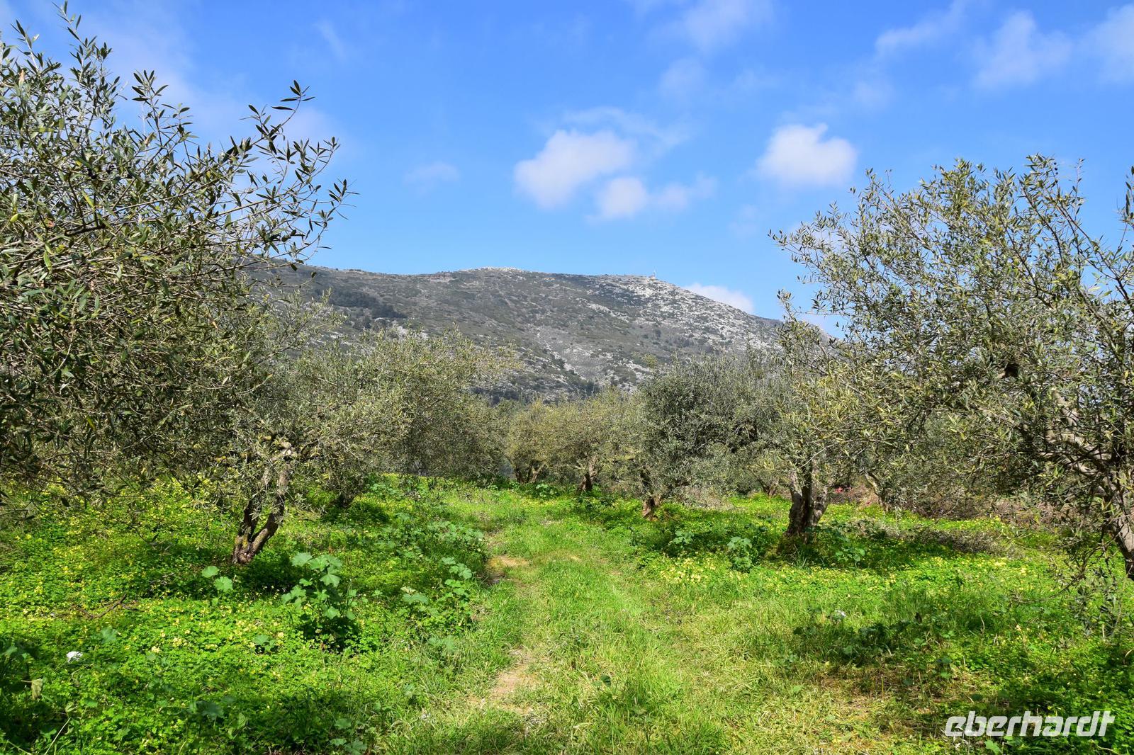 Unsere Panorama-Tour führt uns zuerst ins Inselinnere, zu malerischen Buchten in der Steilküsten und durch unendliche Olivenhaine, mit sehr hohen und großen Olivenbäumen. Das Mikroklima der Insel bewirkt eine einzigartige Pflanzenvielfalt und den Baumreichtum, den die Venezianer auch durch die Anpflanzung der Olivenbäume förderten.