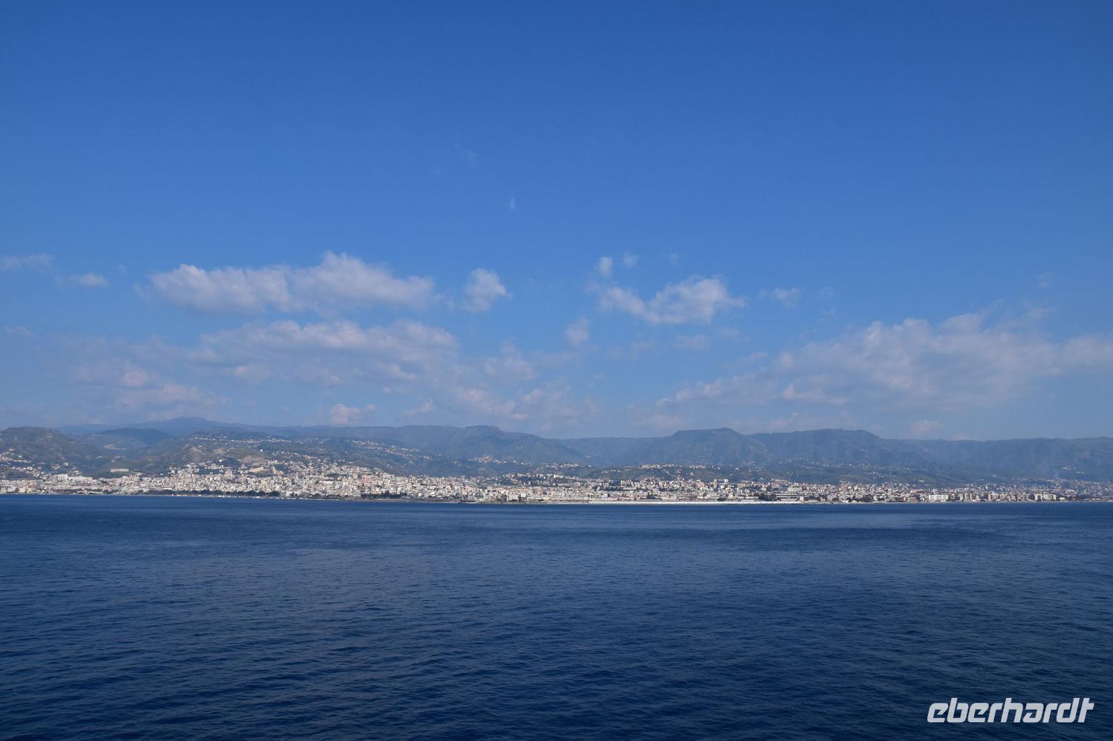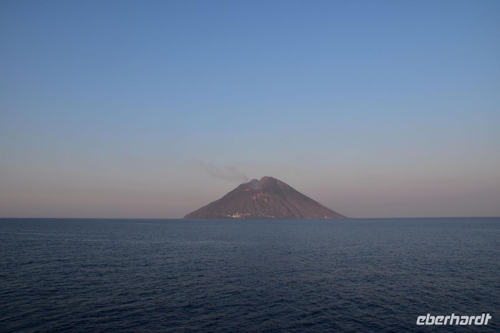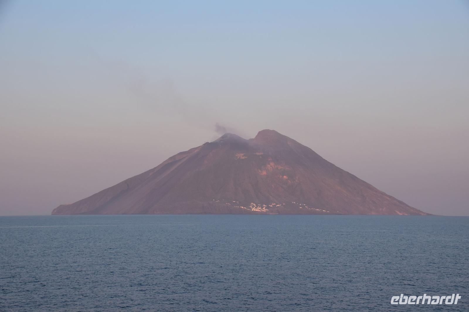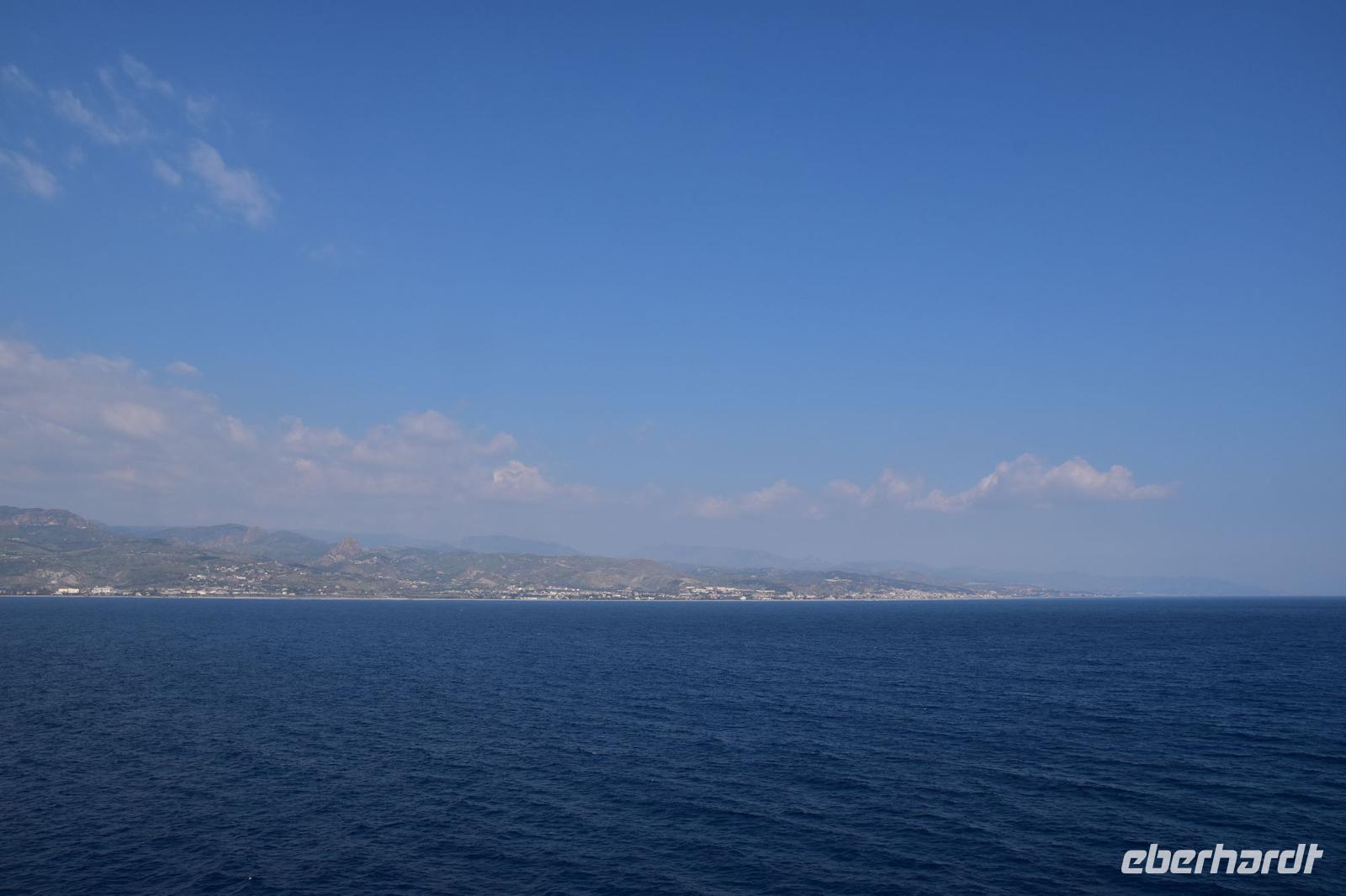 Der Nachmittag ist vom Blick auf Sizilien mit dem Ätna, von der Passage der Straße von Messina, und der Passage des aktiven Stromboli geprägt.