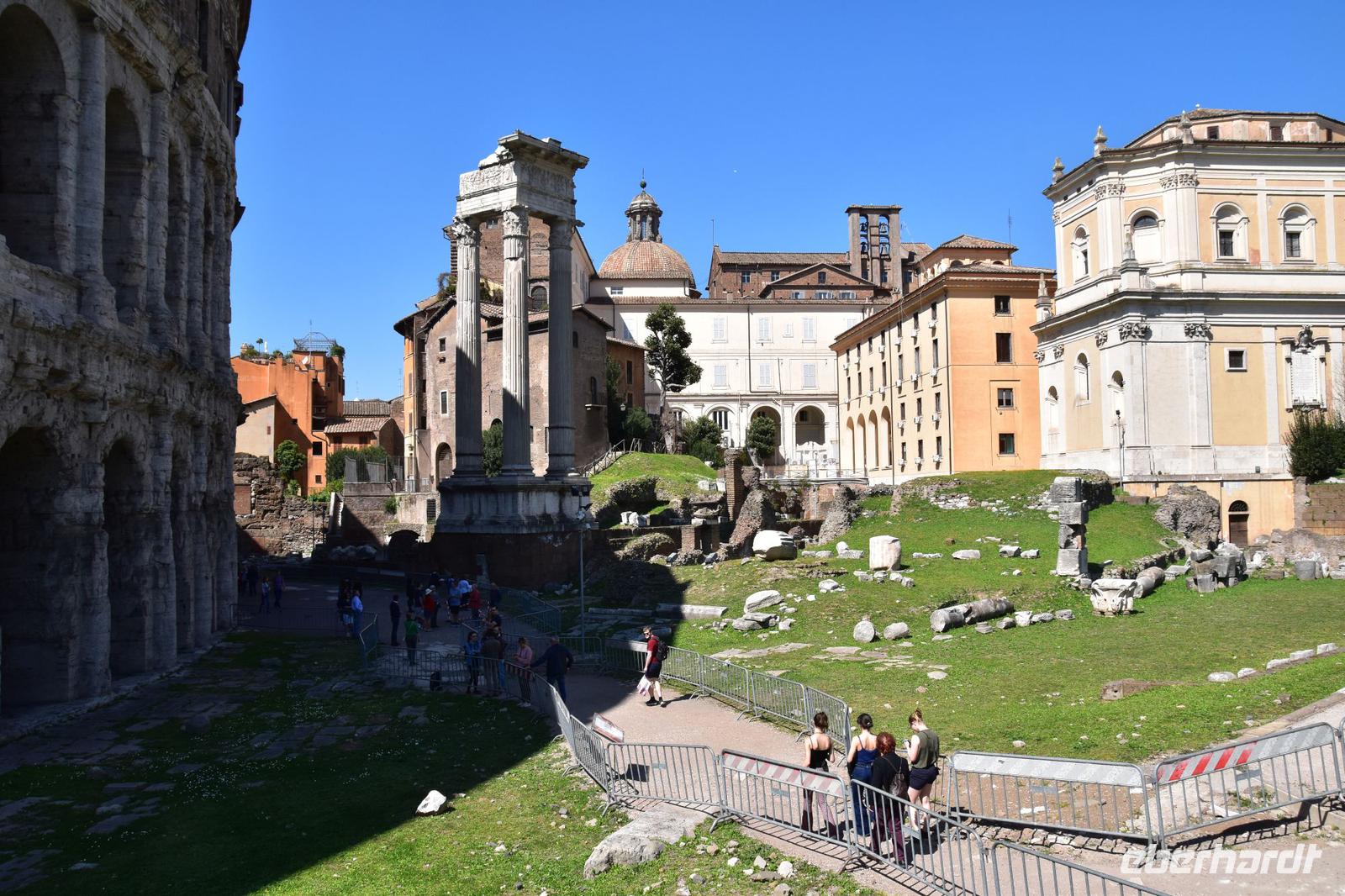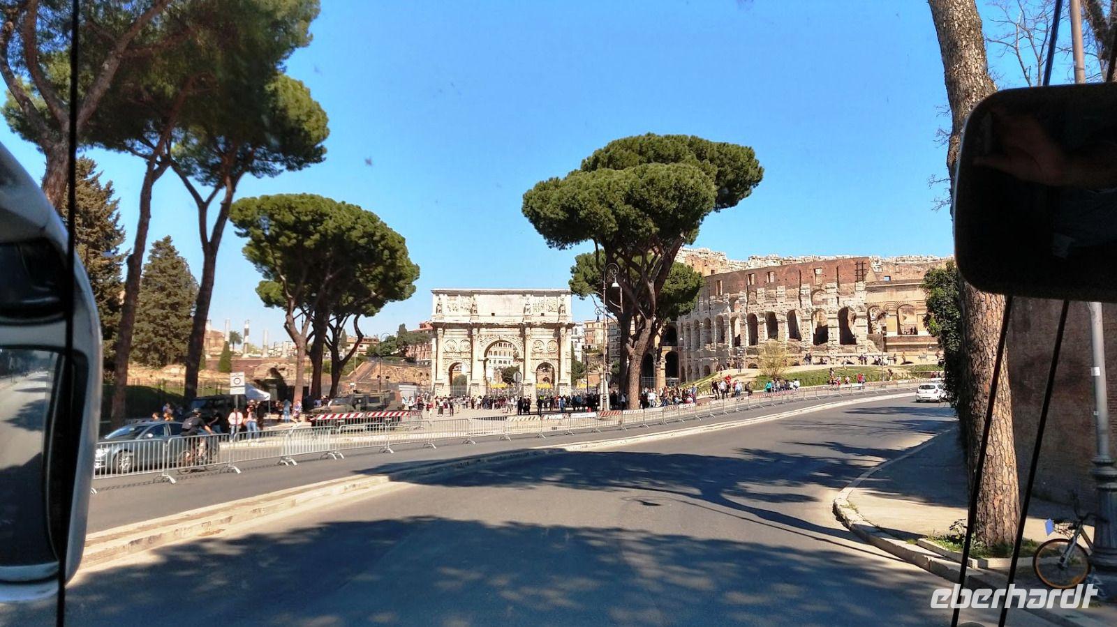 Dem folgt eine kleine Stadtrundfahrt zum Circus Maximus, zu den Kaiserpalästen, dem Konstantinbogen, dem Kolloseum und den Caracalla-Thermen.