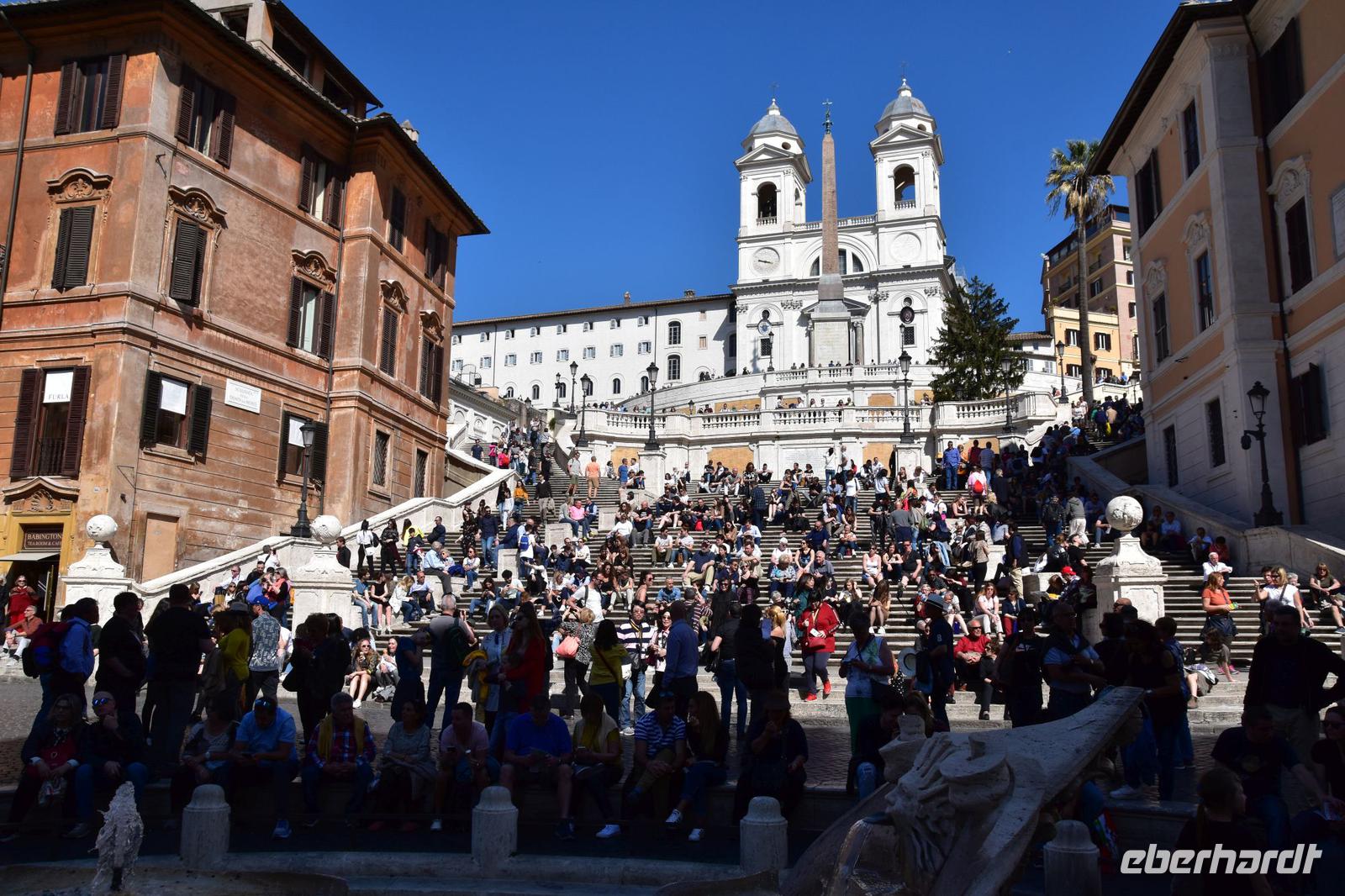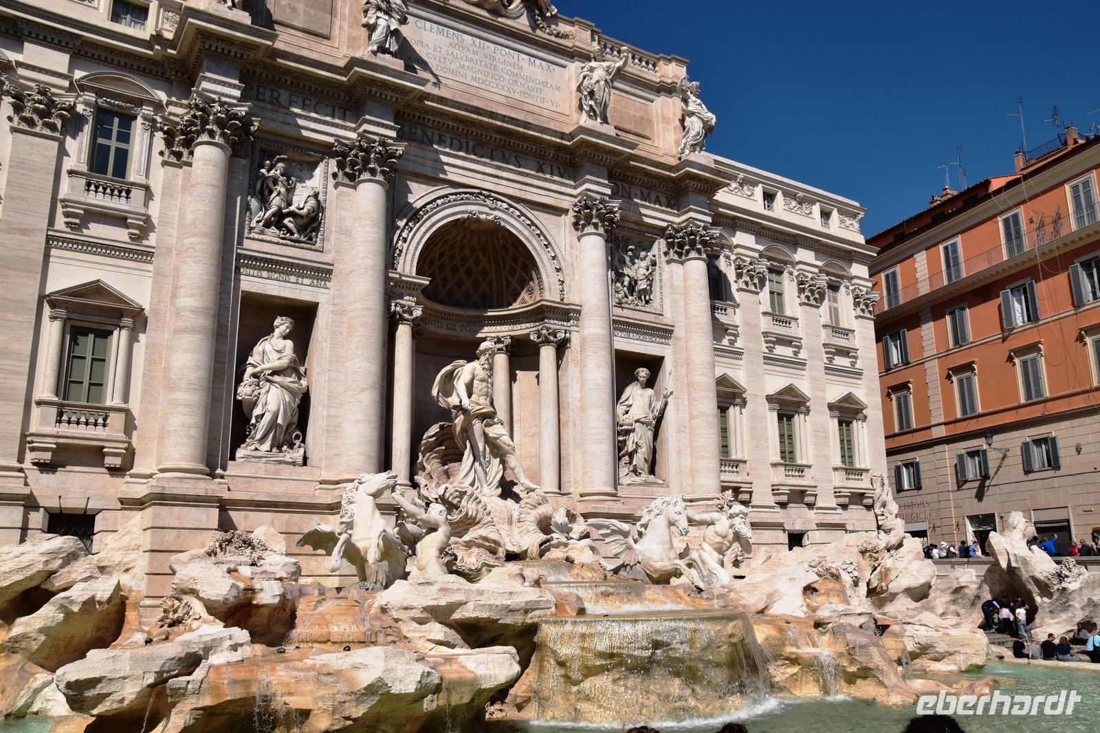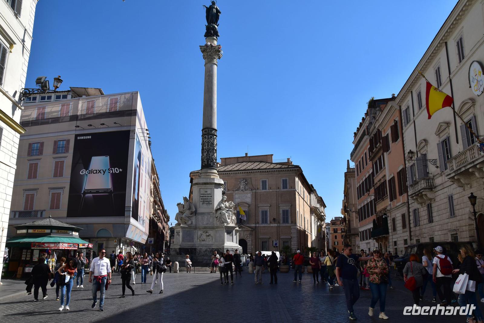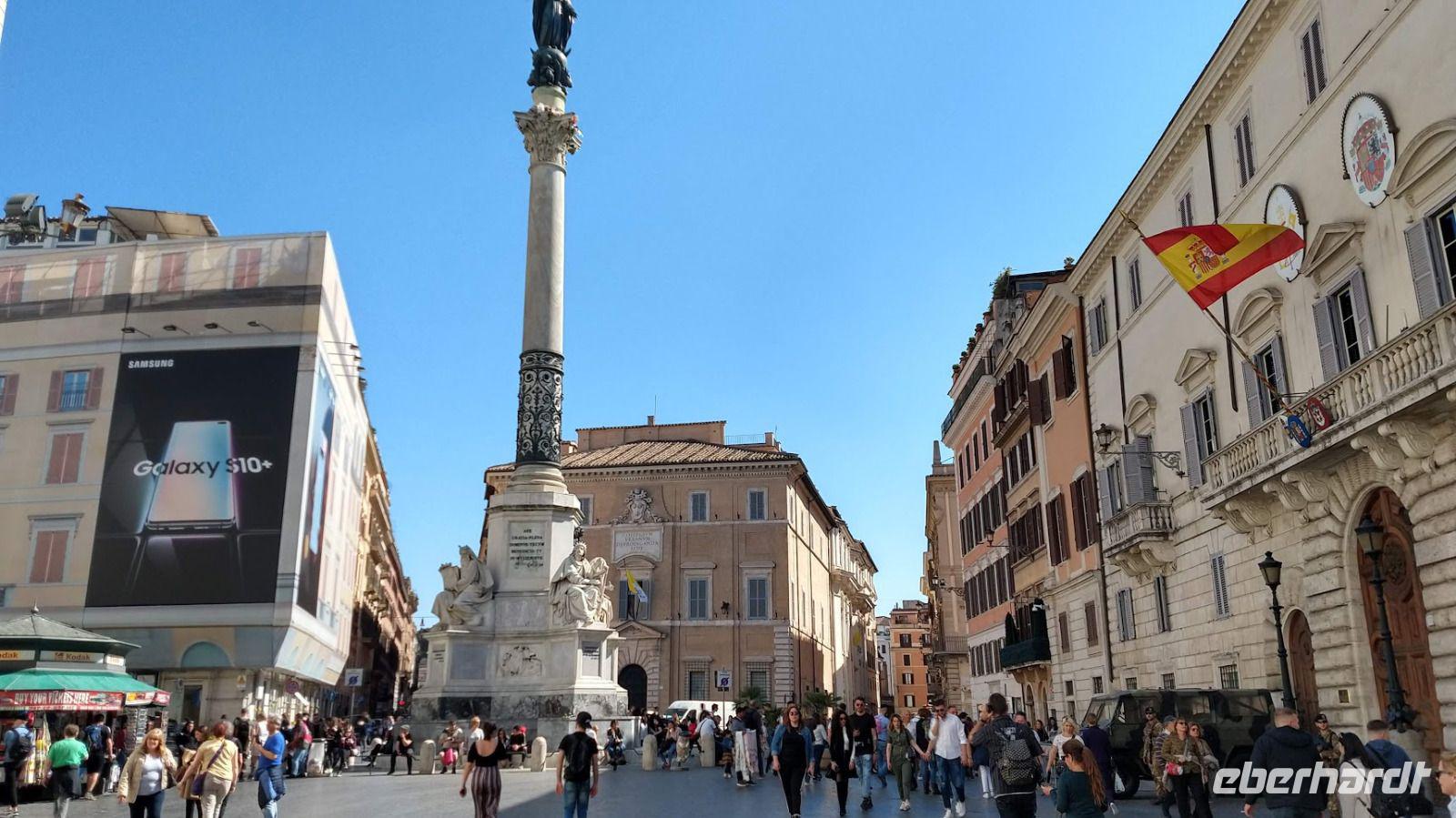 Dann beginnt unser gemeinsamer Fußweg durch die Stadt Rom: Apollo-Tempel, Marcello Theater, Senatorenpalast mit dem Kapitolsplatz, der Statue von Kaiser Marc Aurel und der Freitreppe von Michelangelo, Forum Romanum, Trajan-Säule, durch die Via del Corso zur Marc-Aurel-Säule, Trevi-Brunnen, Spanischer Platz mit der Statue der unbefleckten Empfängnis, Scalinata di Trinità dei Monti (Spanische Treppe), Pantheon, Navona-Platz mit den drei Brunnen und dem Bauensemble von Bernini , Engelsburg, Engelsbrücke und Petersplatz (Vatikan).