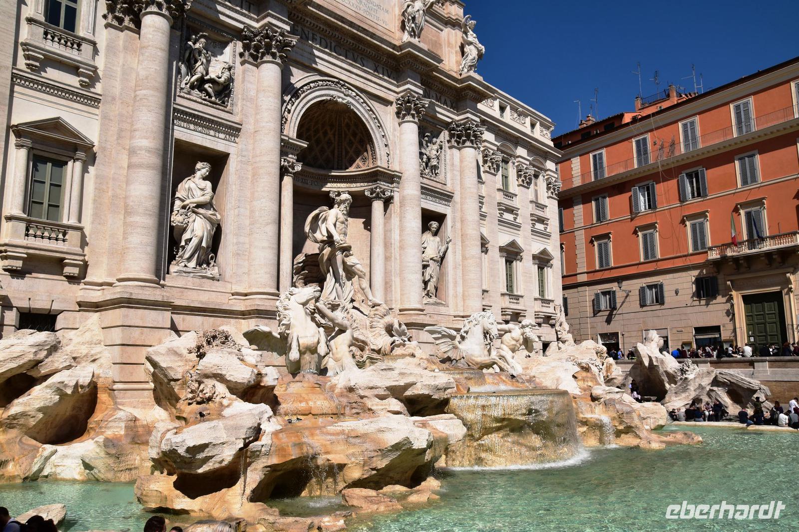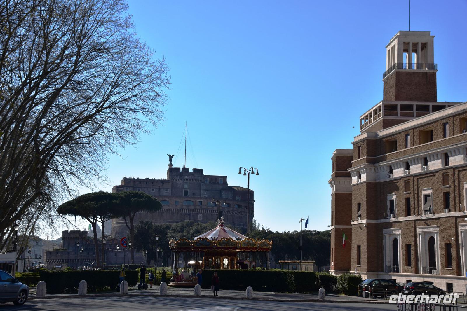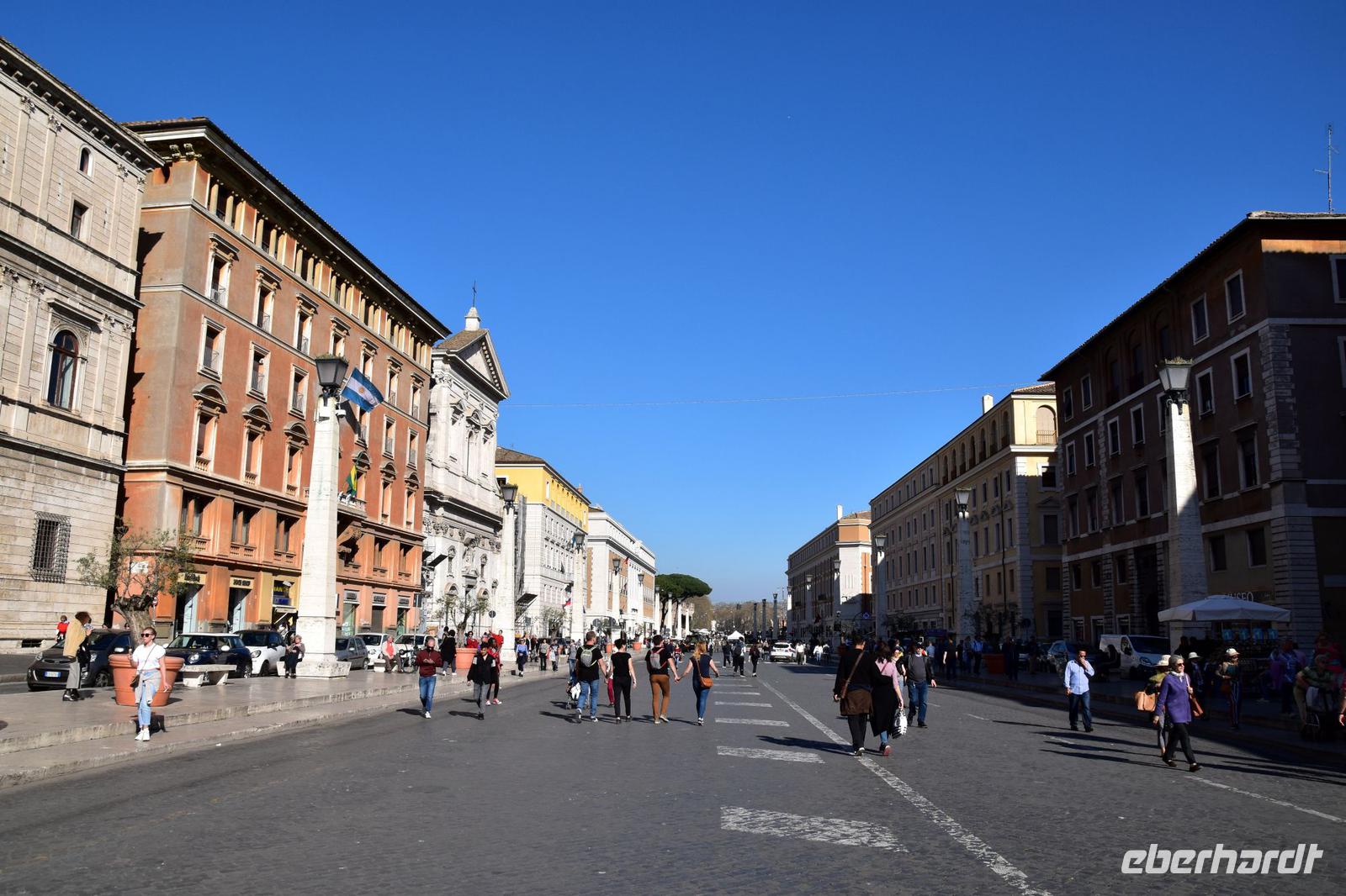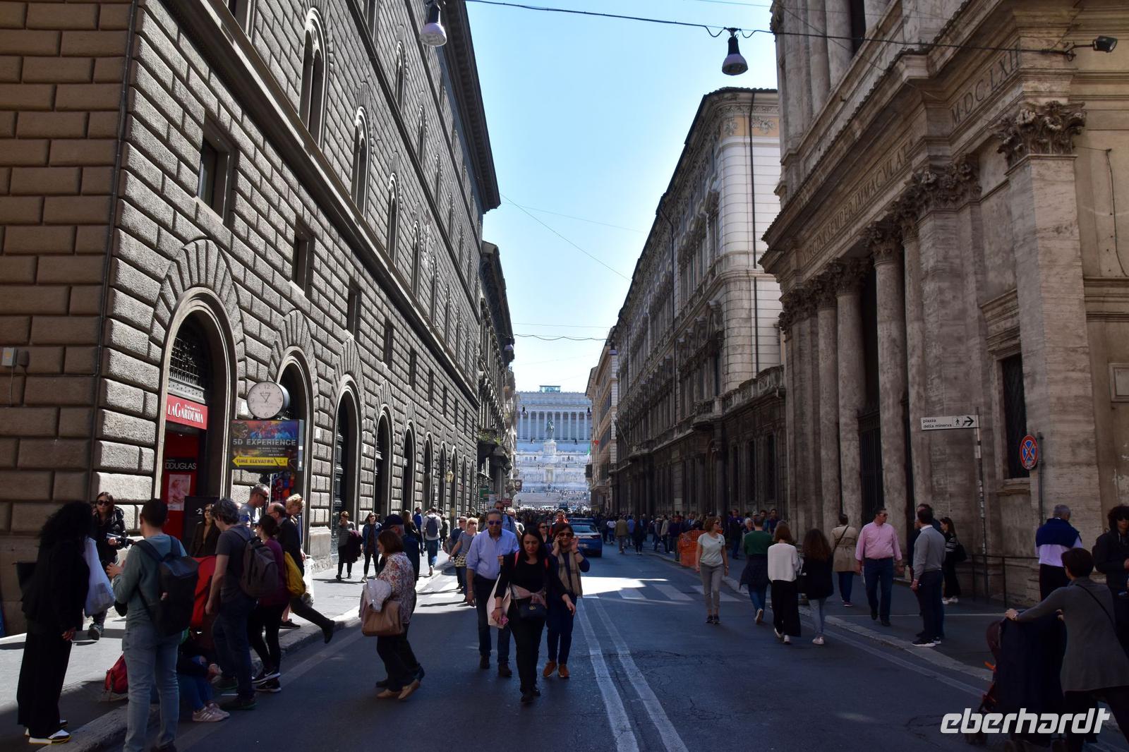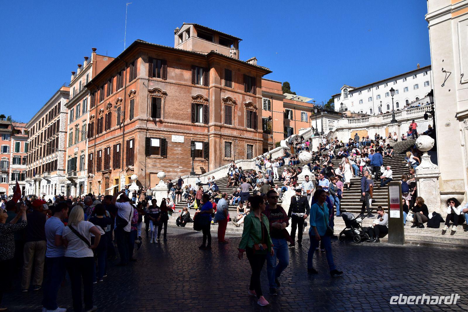 Dann beginnt unser gemeinsamer Fußweg durch die Stadt Rom: Apollo-Tempel, Marcello Theater, Senatorenpalast mit dem Kapitolsplatz, der Statue von Kaiser Marc Aurel und der Freitreppe von Michelangelo, Forum Romanum, Trajan-Säule, durch die Via del Corso zur Marc-Aurel-Säule, Trevi-Brunnen, Spanischer Platz mit der Statue der unbefleckten Empfängnis, Scalinata di Trinità dei Monti (Spanische Treppe), Pantheon, Navona-Platz mit den drei Brunnen und dem Bauensemble von Bernini , Engelsburg, Engelsbrücke und Petersplatz (Vatikan).