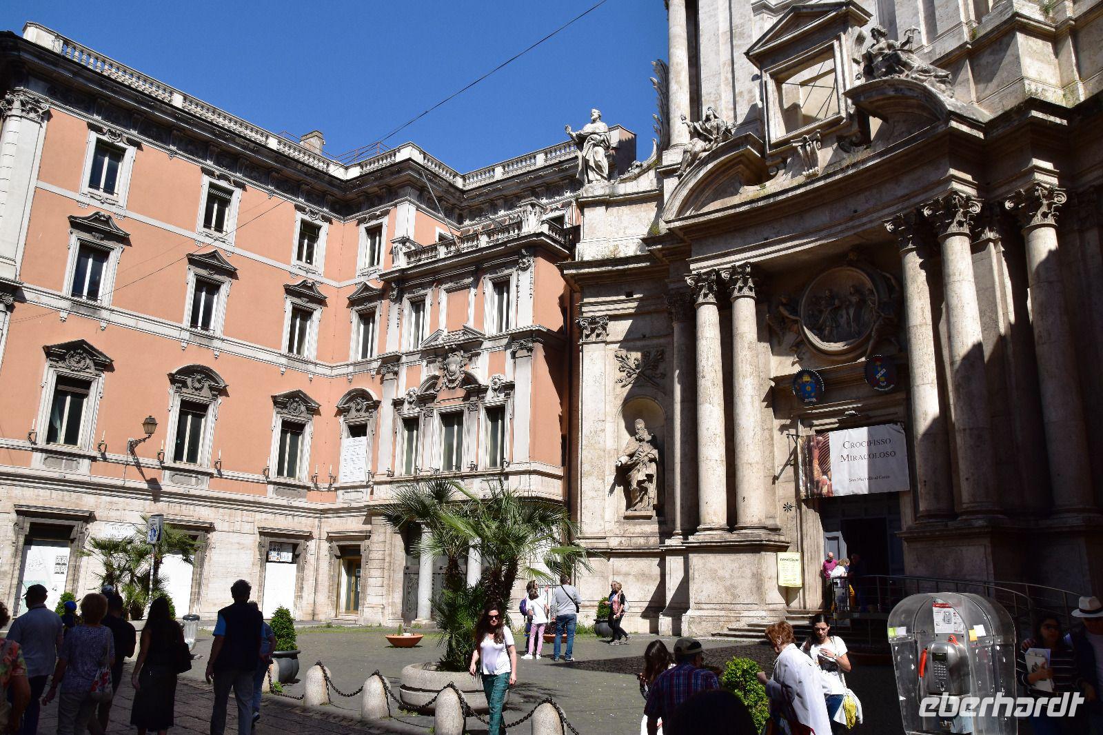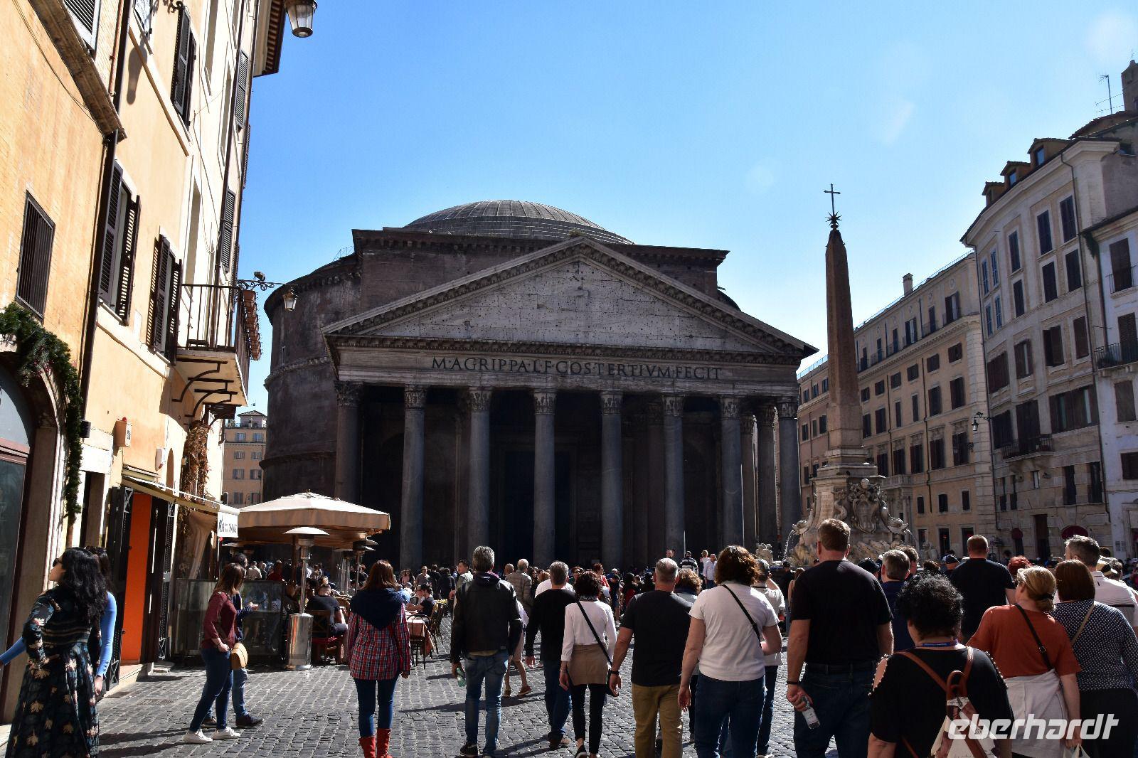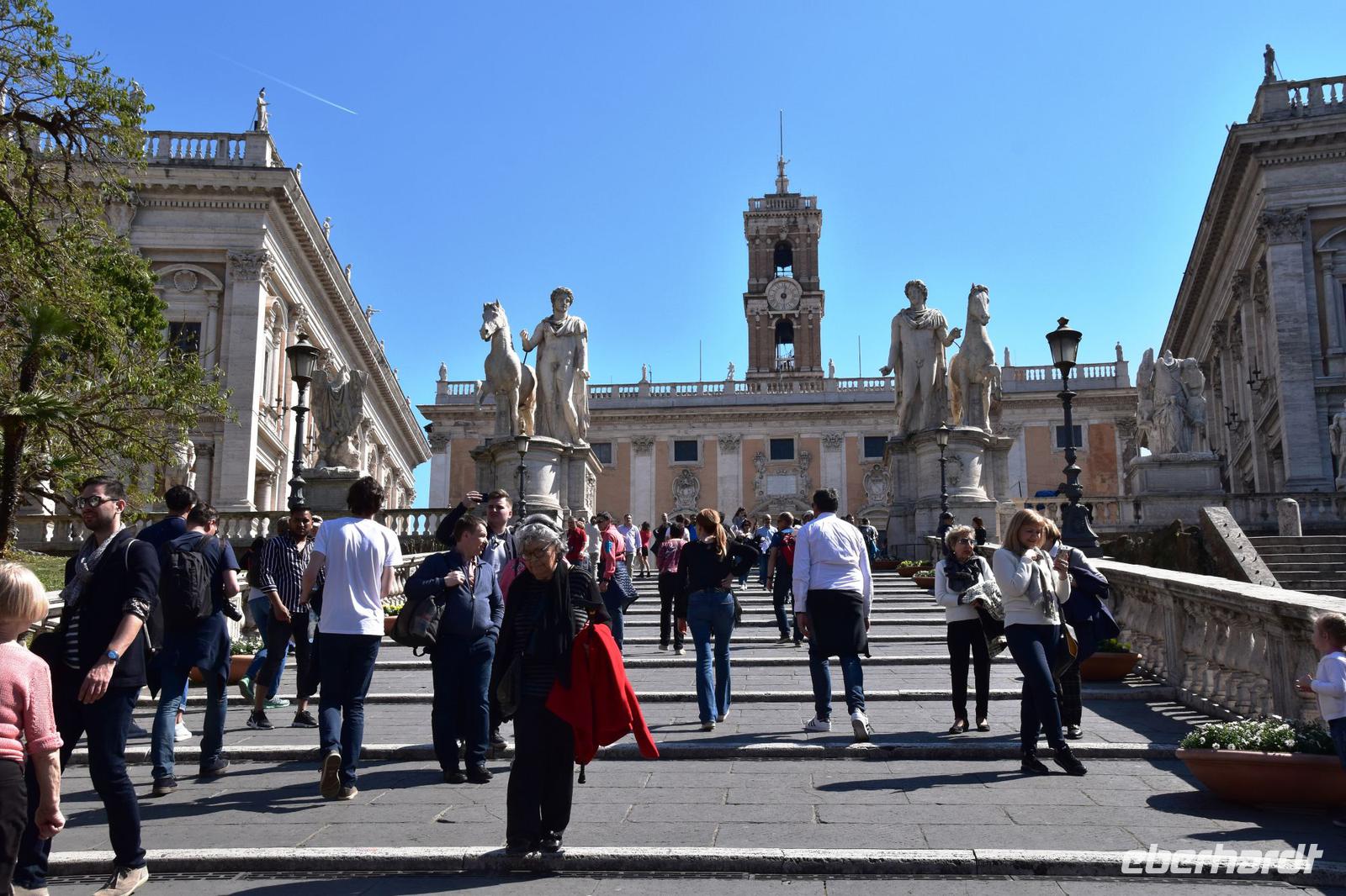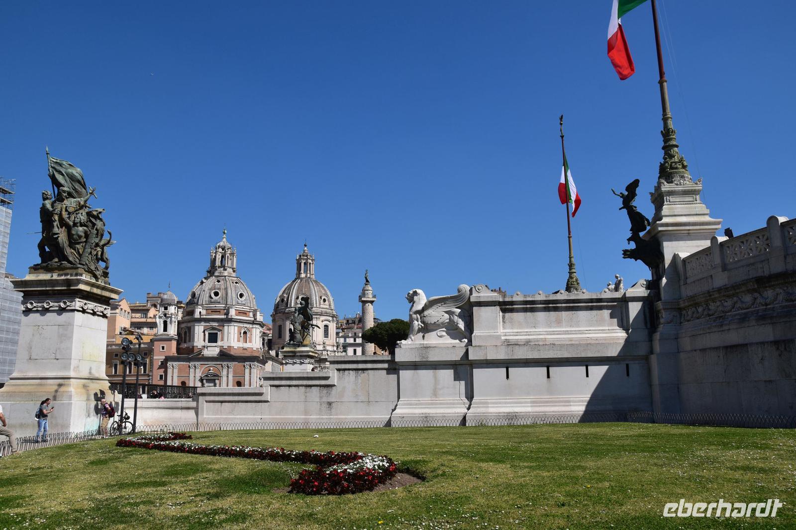 Dann beginnt unser gemeinsamer Fußweg durch die Stadt Rom: Apollo-Tempel, Marcello Theater, Senatorenpalast mit dem Kapitolsplatz, der Statue von Kaiser Marc Aurel und der Freitreppe von Michelangelo, Forum Romanum, Trajan-Säule, durch die Via del Corso zur Marc-Aurel-Säule, Trevi-Brunnen, Spanischer Platz mit der Statue der unbefleckten Empfängnis, Scalinata di Trinità dei Monti (Spanische Treppe), Pantheon, Navona-Platz mit den drei Brunnen und dem Bauensemble von Bernini , Engelsburg, Engelsbrücke und Petersplatz (Vatikan).