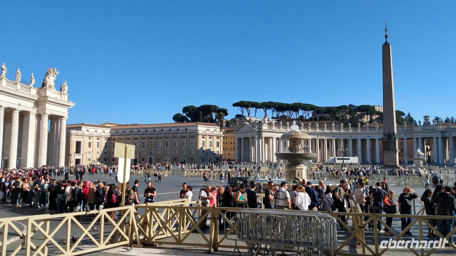 Wir laufen morgens in den Hafen von Civitavecchia ein, dem Hafen Roms am Tyrrhenisches Meer.09:15 Uhr ist Treffen nahe der Rezeption des Schiffes auf Deck 5. Wir nutzen den kostenfreien Shuttle-Bus, um das Hafengelände zu verlassen und steigen dann in unseren italienischen Reisebus mit Fahrer Nikola. Er bringt uns die ca. 69 km lange Strecke nach Rom.