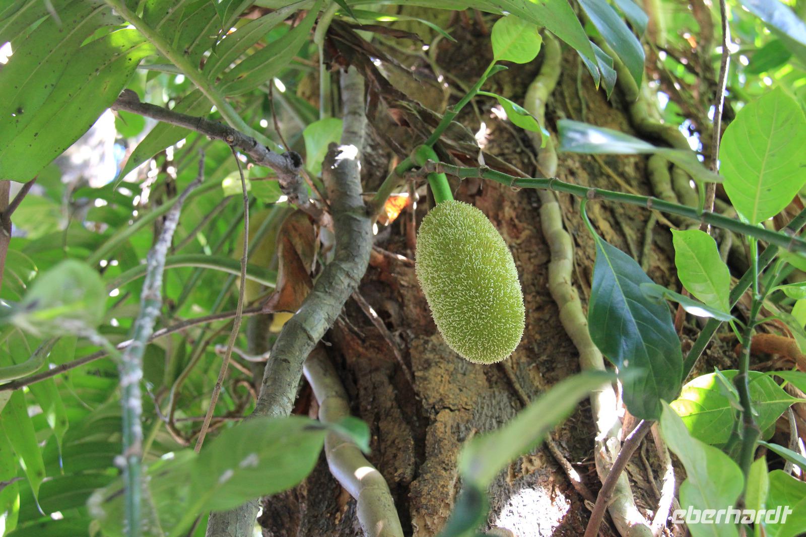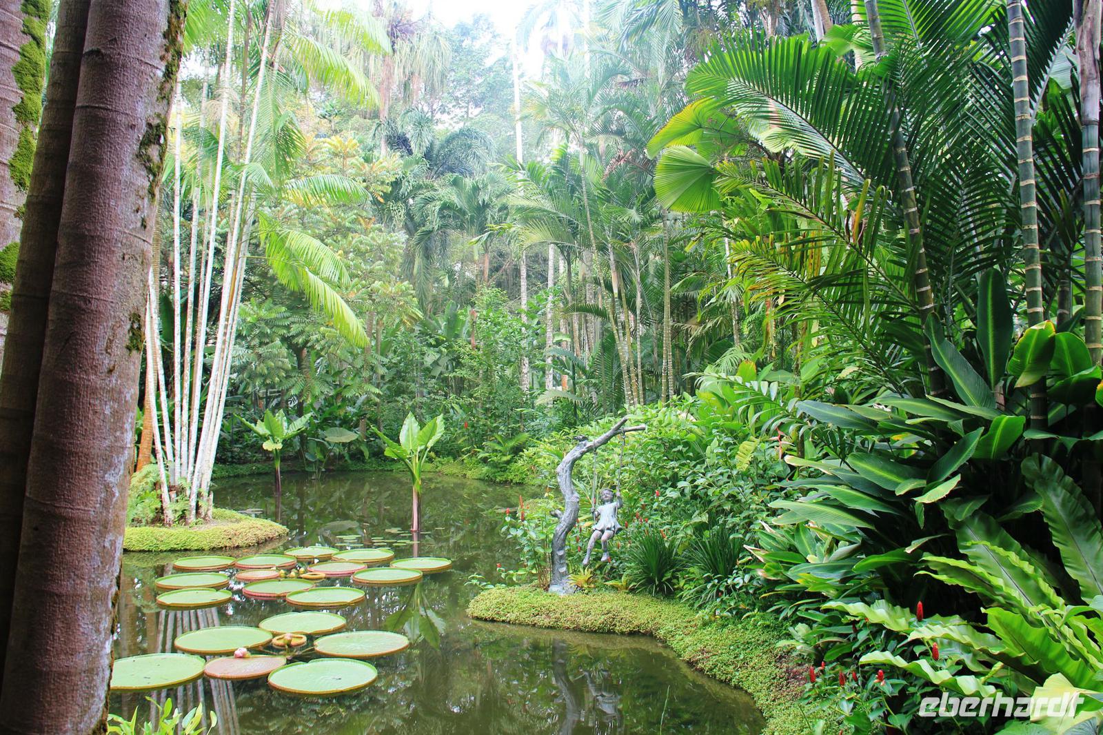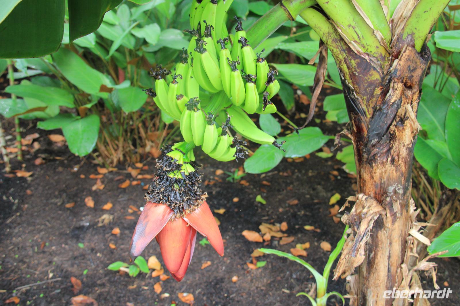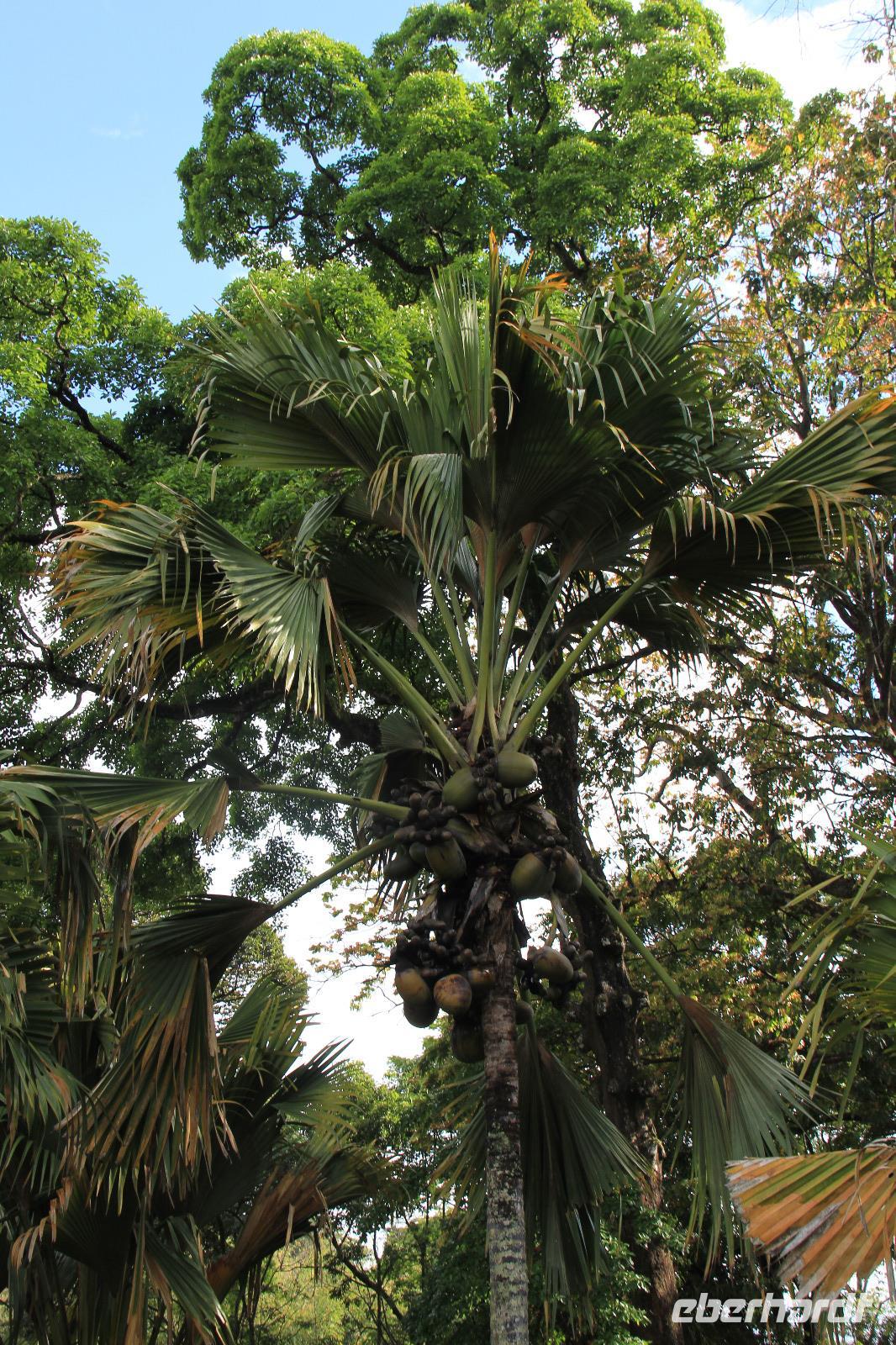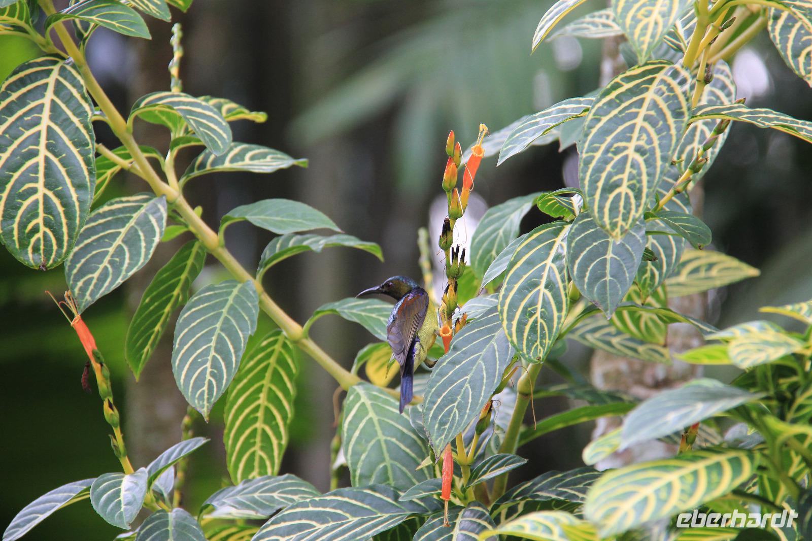 Beeindruckend waren vor allem die Riesen-Kokosnüsse, welche enorm groß werden. Doch die Komposition aller Pflanzen und Bäume, die schiere grüne Natur und die Tiere in dem Garten, getarnt an und in den Bäumen sorgten gemeinsam erst für diese schöne Atmosphäre hier.