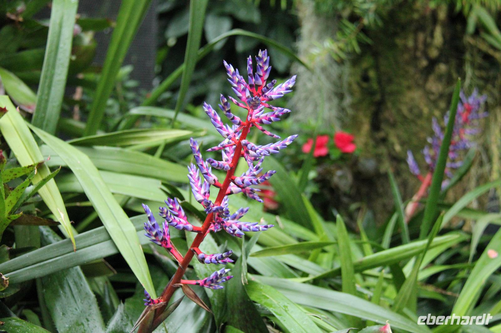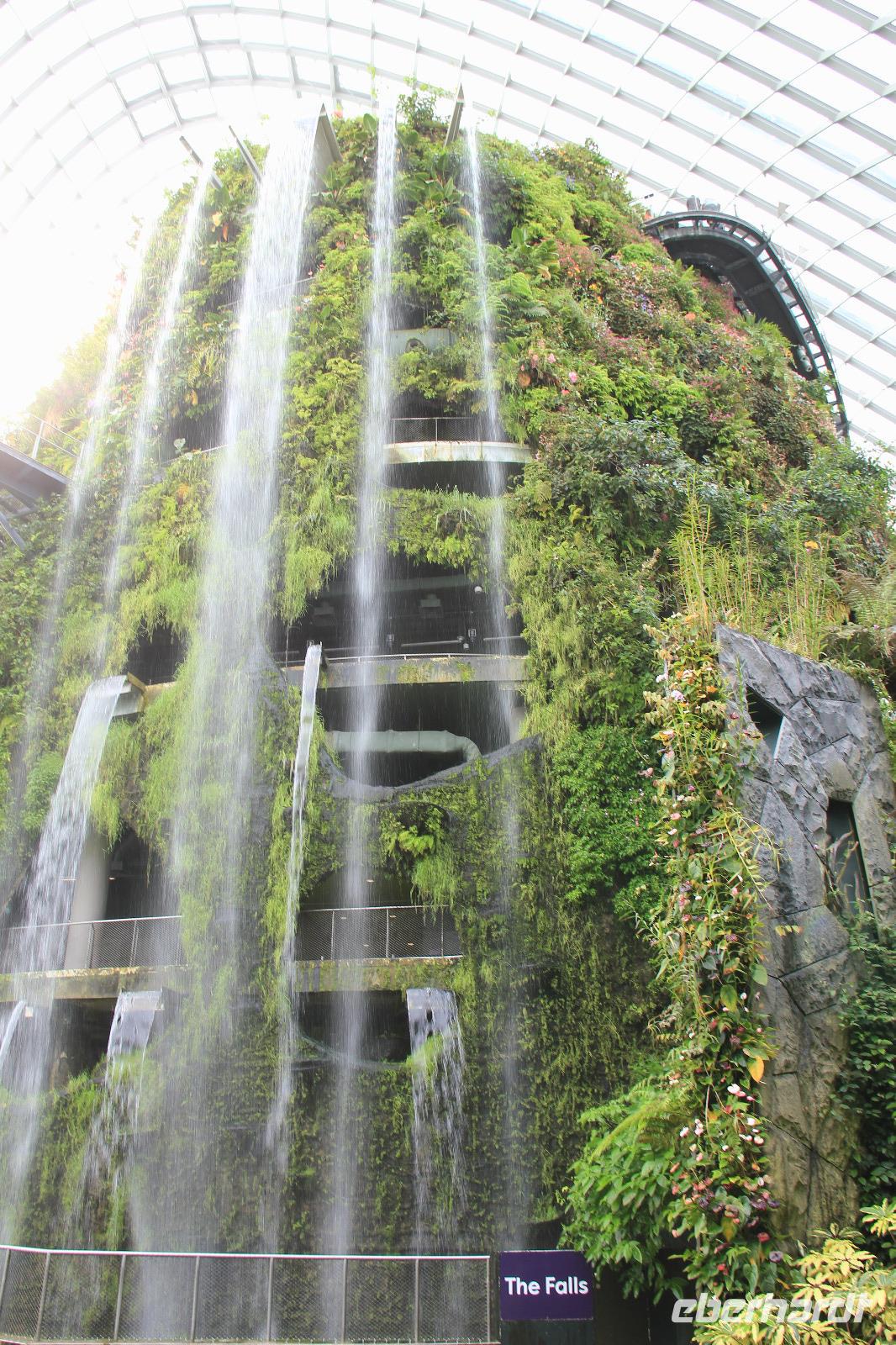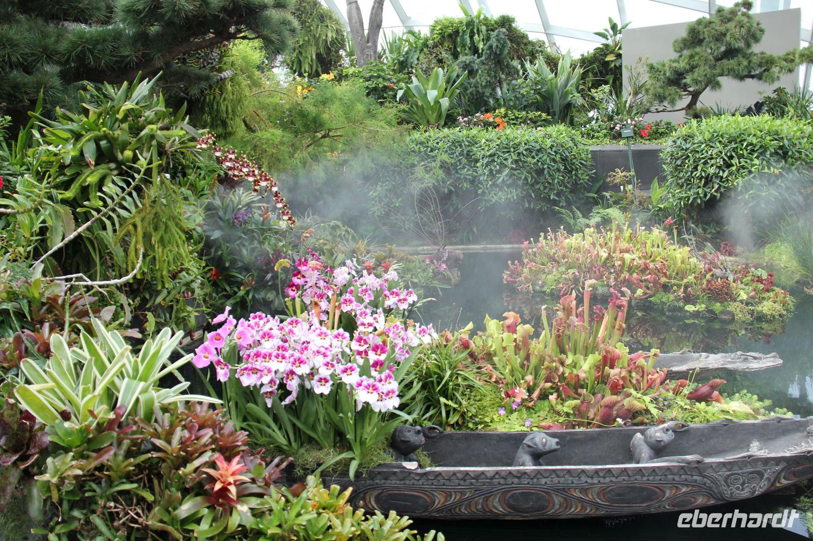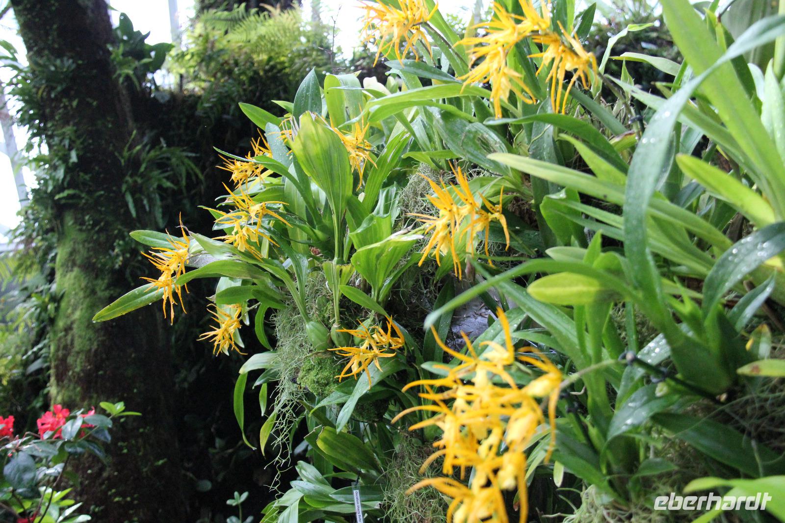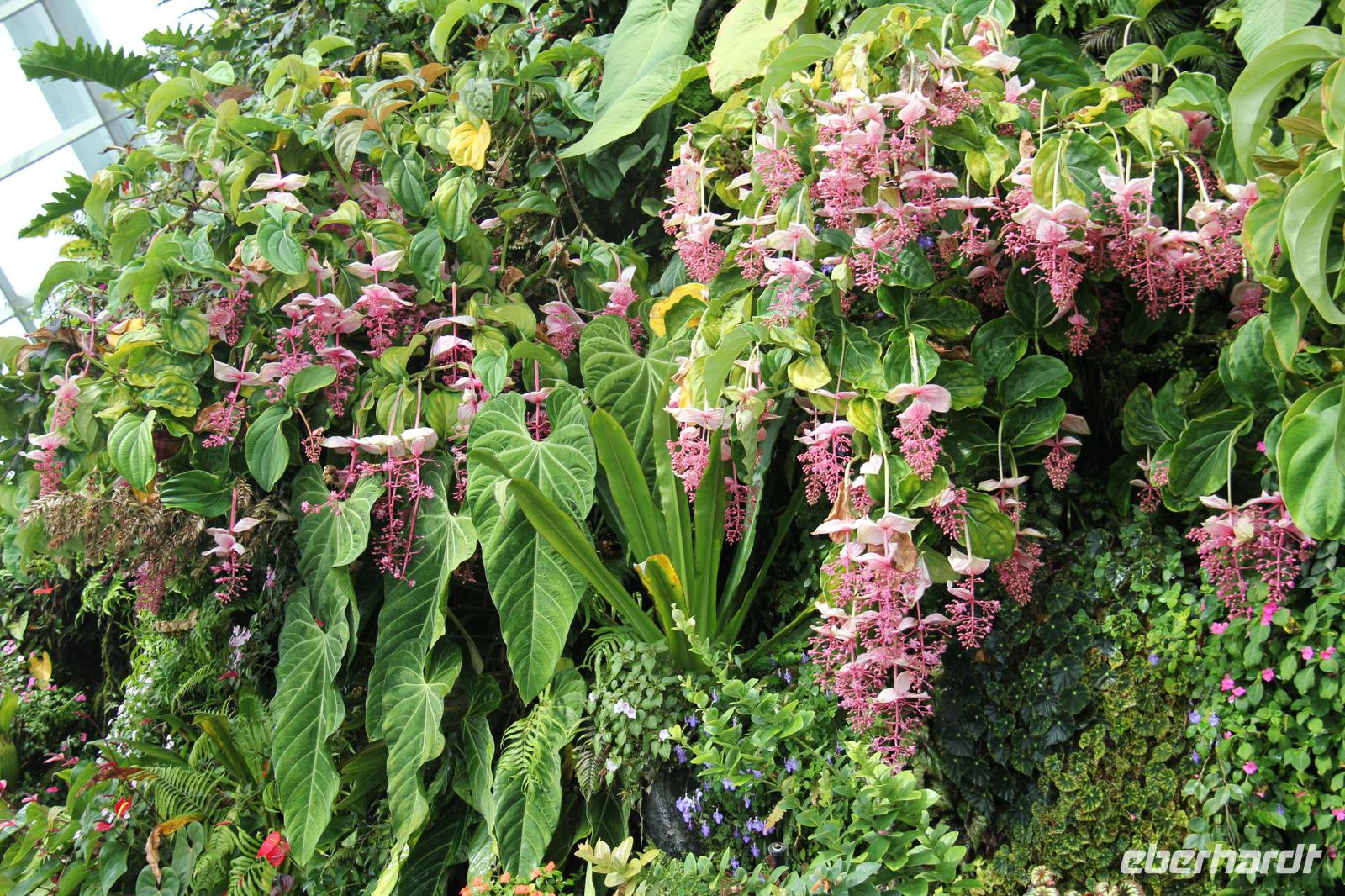 In der ersten Halle wurde das tropische Bergklima nachempfunden mit kühl-feuchter Atmosphäre. Von einem Wasserfall in Empfang genommen ging es über verschiedene Aussichtsplattformen und kleine Rundwege durch die Halle. Die bunten Blumen angelegt über die komplette Höhe der Halle waren sehr schön anzusehen und wir konnte auch eine Vielzahl an tropischen Blumen sehen können.