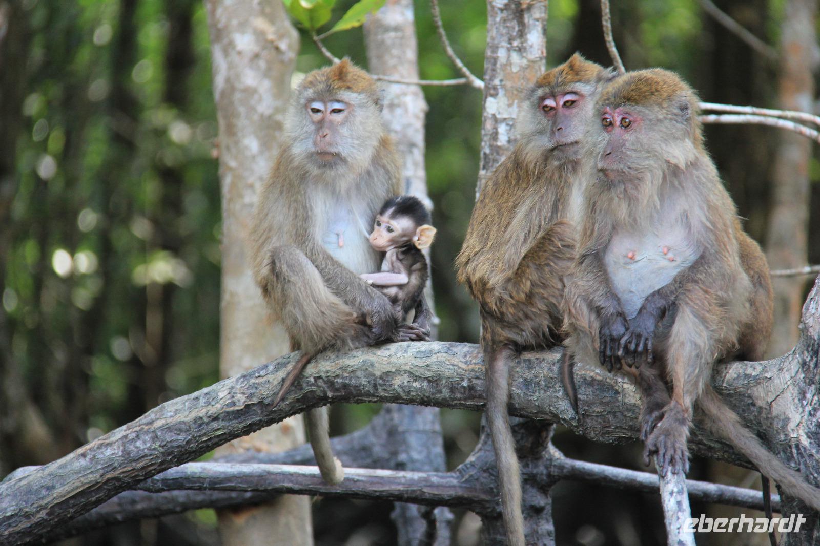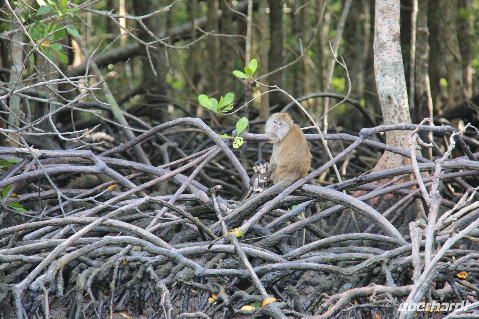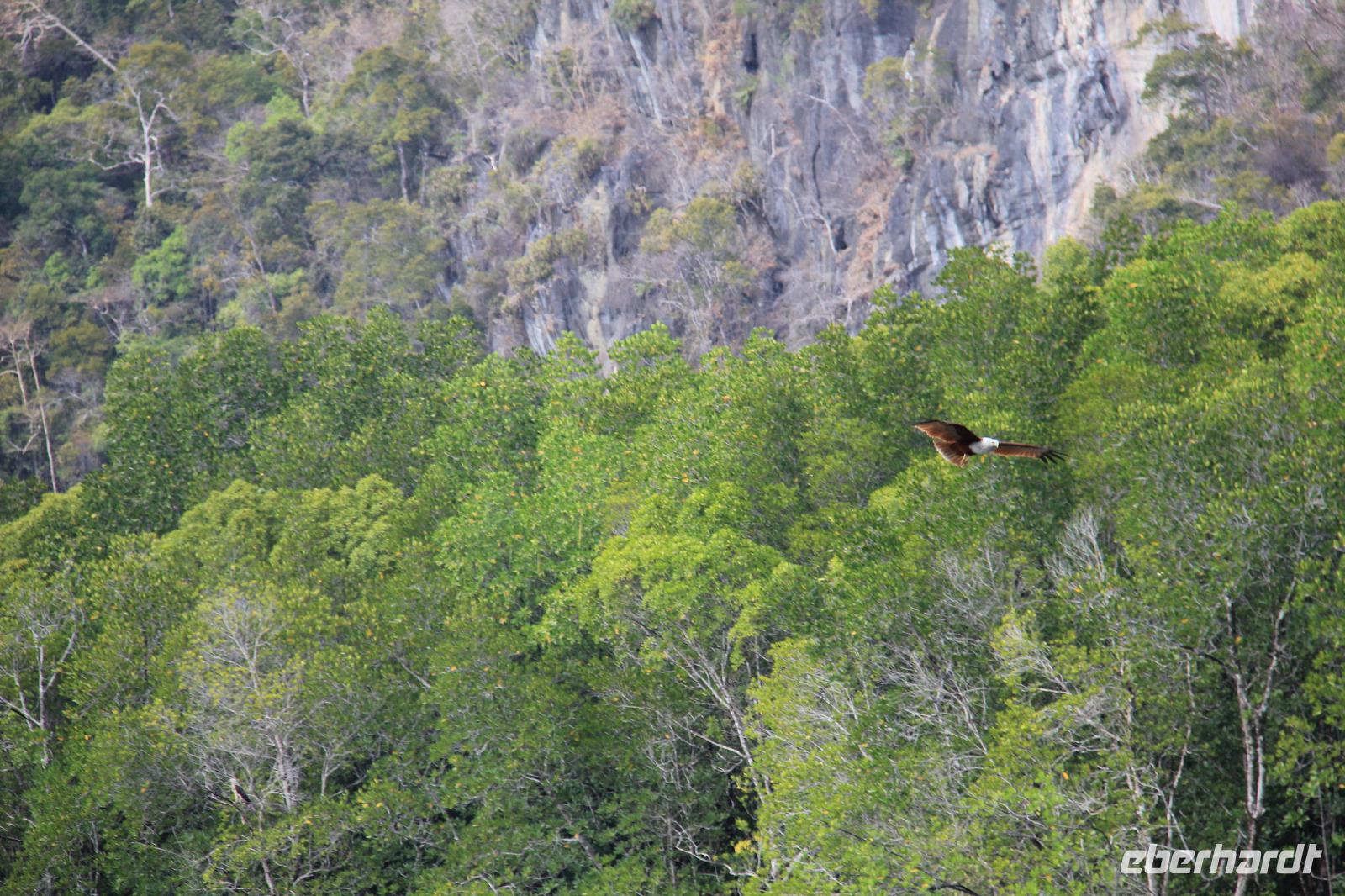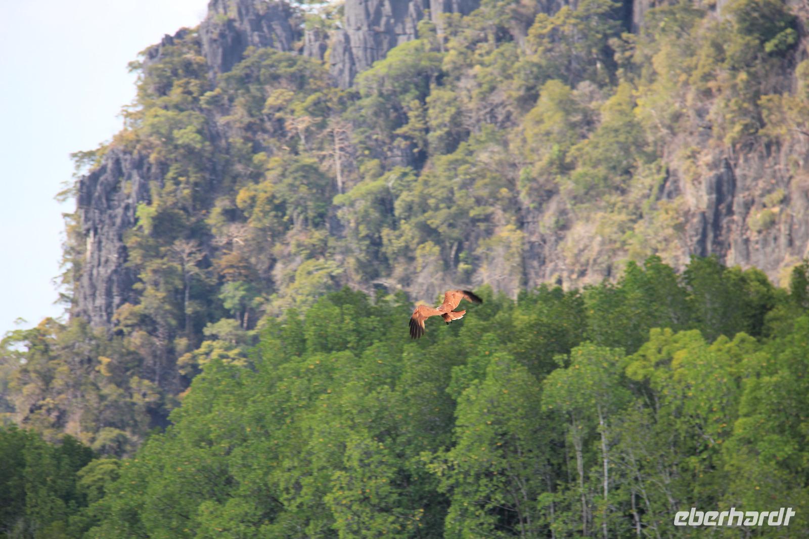 Auf unserer weiteren Fahrt sahen wir zudem noch verschiedene Affen, auch mit Jungtieren, einen Leguan sowie kleine Fische und die Wappentiere der Insel, die braunen Adler.