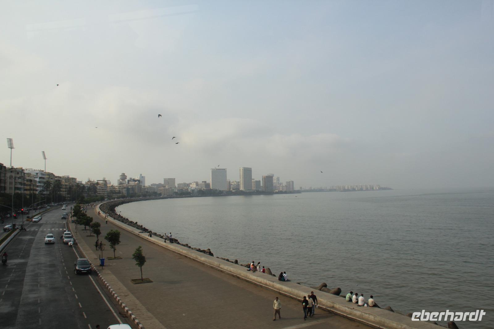 Vorbei am Oval Maidan, dem Stadtspielplatz, ging es entlang des Colaba Causeway zum Wahrzeichen der Stadt, dem Gateway of India. Dieser Triumphbogen wurde von 1911 bis 1924 errichtet, um dem Besuch von König Georg V. zu gedenken, welcher 1911 hier erstmals indischen Boden betrat. Zu dieser Zeit hieß die Stadt auch noch Bombay. Direkt nebenan liegt auch das bekannte Taj Mahal Palace Hotel.