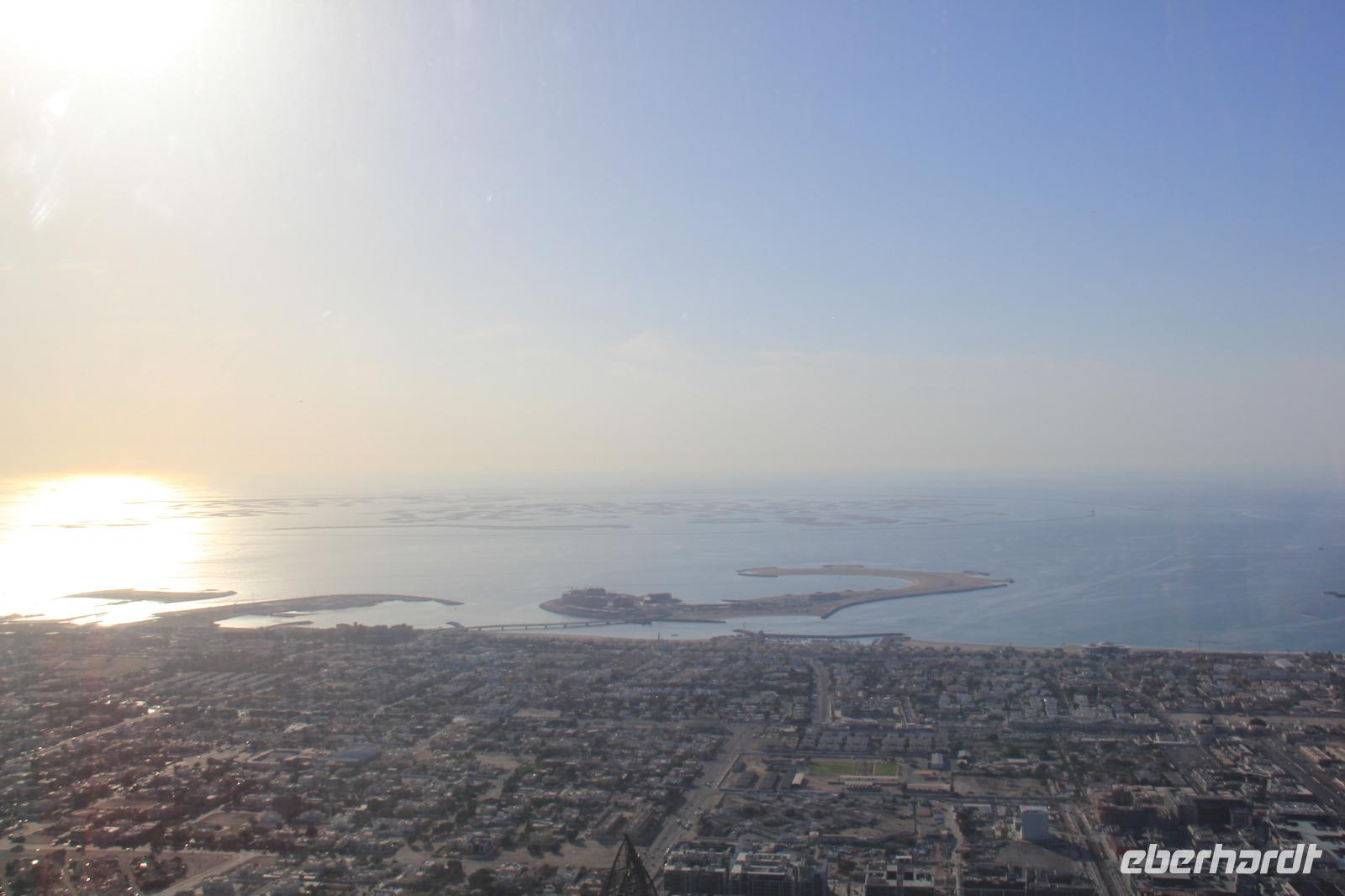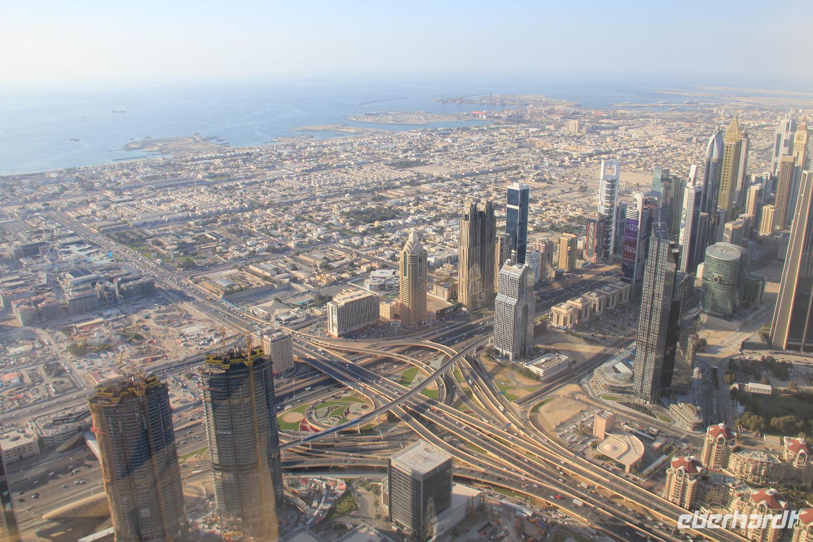 Gegen Mittag erreichten wir Dubai und konnten mehrere Stunden den Ausblick auf die näherkommende Skyline mit dem herausragenden Burj Khalifa genießen.