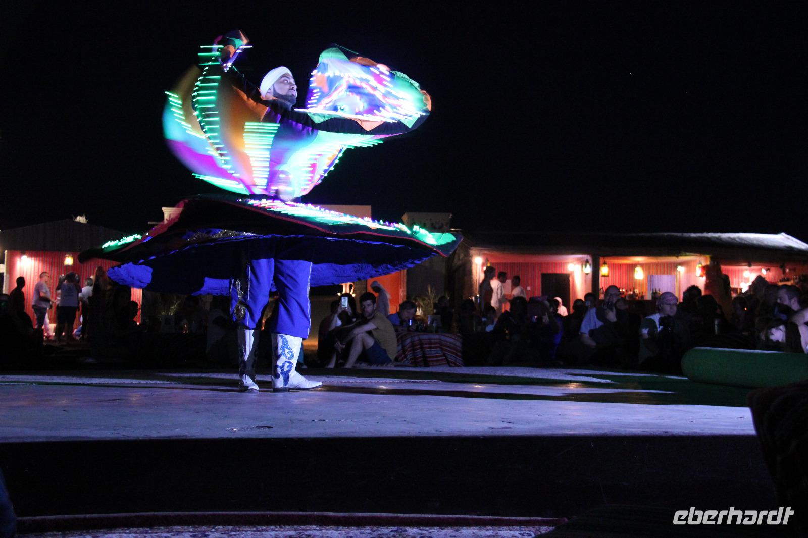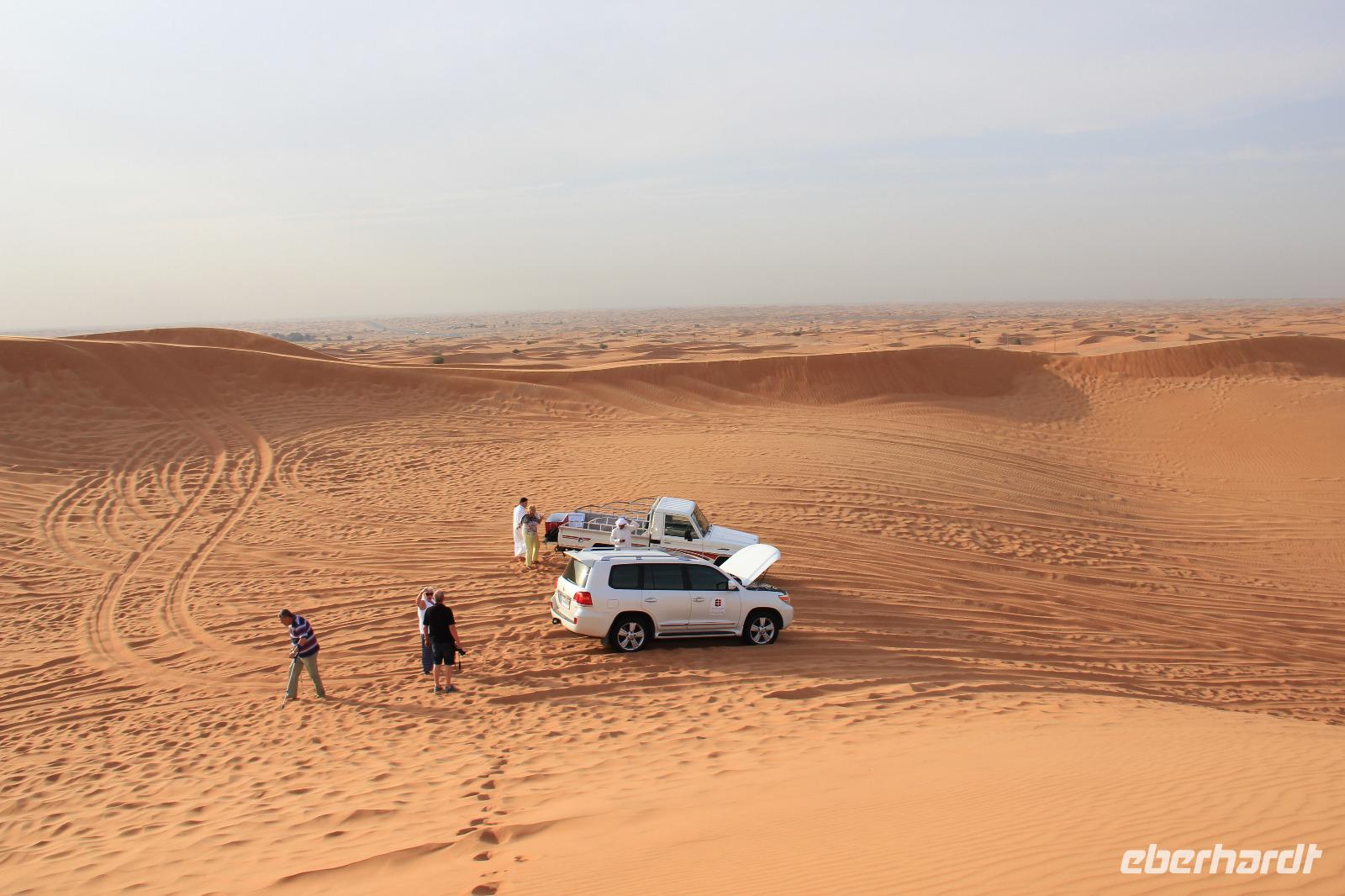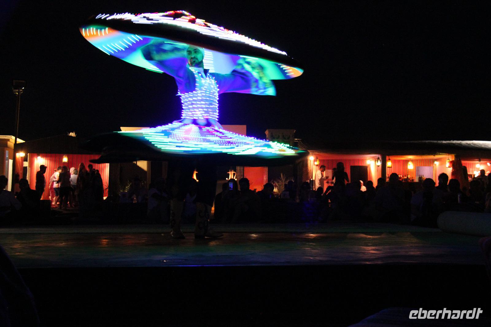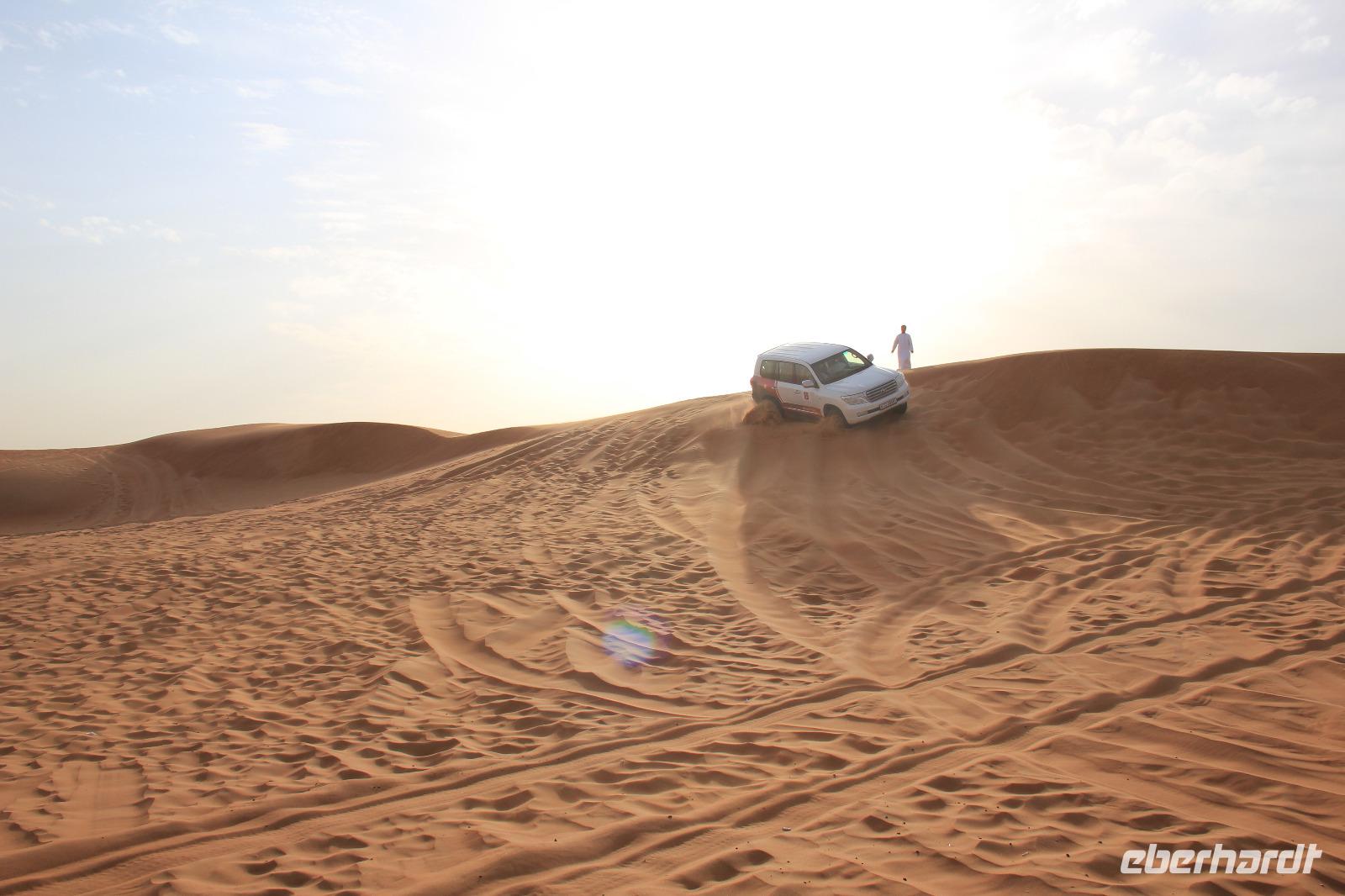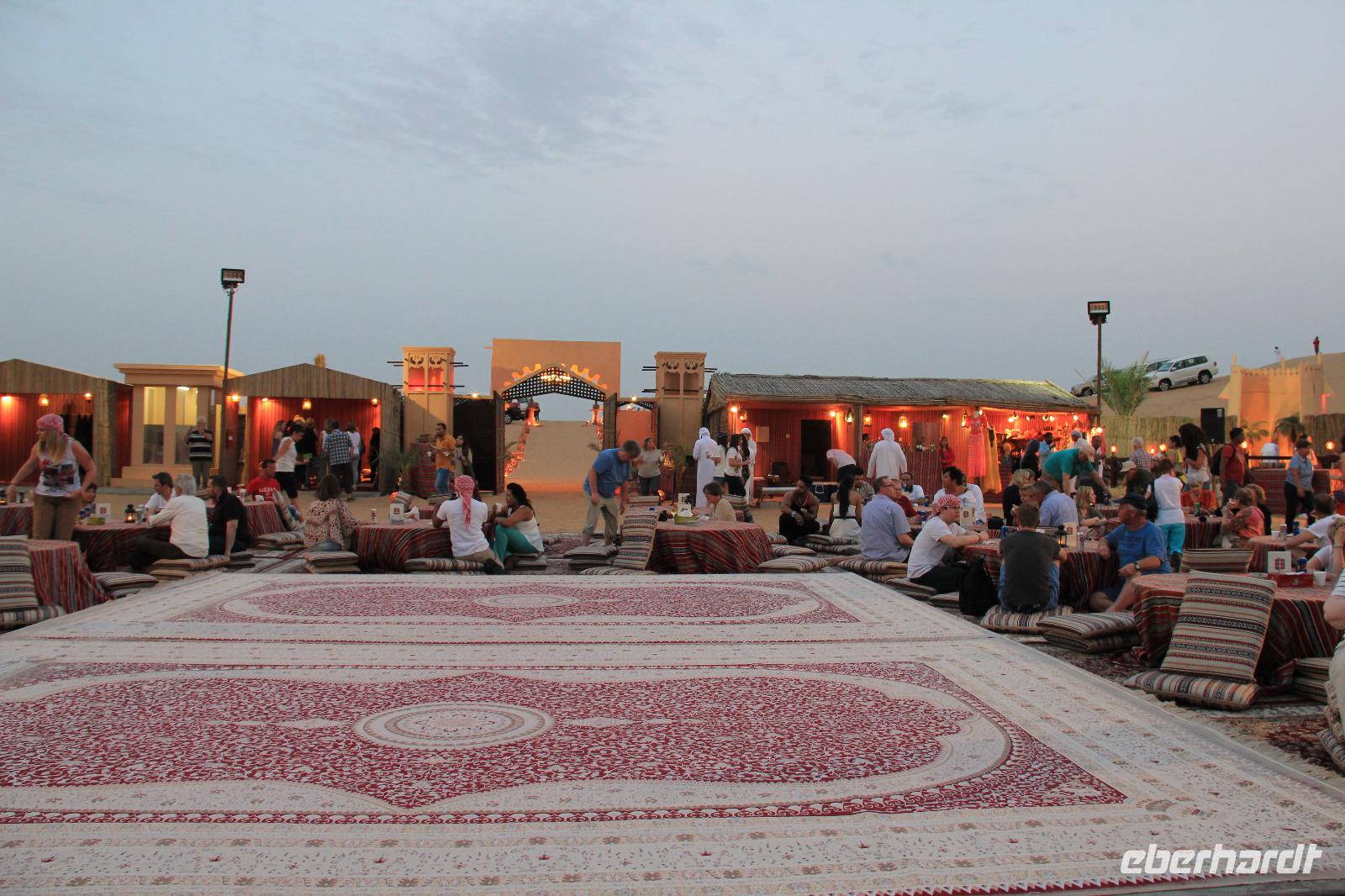 Am frühen Nachmittag kamen wir wieder im Hotel an und hatten noch ein wenig Freizeit, bis wir uns später für die Jeep Safari durch die Wüste wieder trafen. In zwei Jeeps fuhren wir durch die arabische Wüste, dabei nahmen unsere Fahrer auch gern mal die ein oder andere Düne als Weg, den wir wohl nie in Betracht gezogen hätten. Angekommen im Wüstencamp hatten wir einige Minuten alles für uns und so konnte uns der „Brotbäcker" sein Werk im Steinkohleofen zeigen und wir konnten in Ruhe die vor Ort selbst hergestellten Pelmeni genießen. Später wurden wir durch einen Derwish und eine Bauchtänzerin traditionell unterhalten und ein orientalisches Buffet sorgte für ein typisch arabisches Abschiedsabendessen.