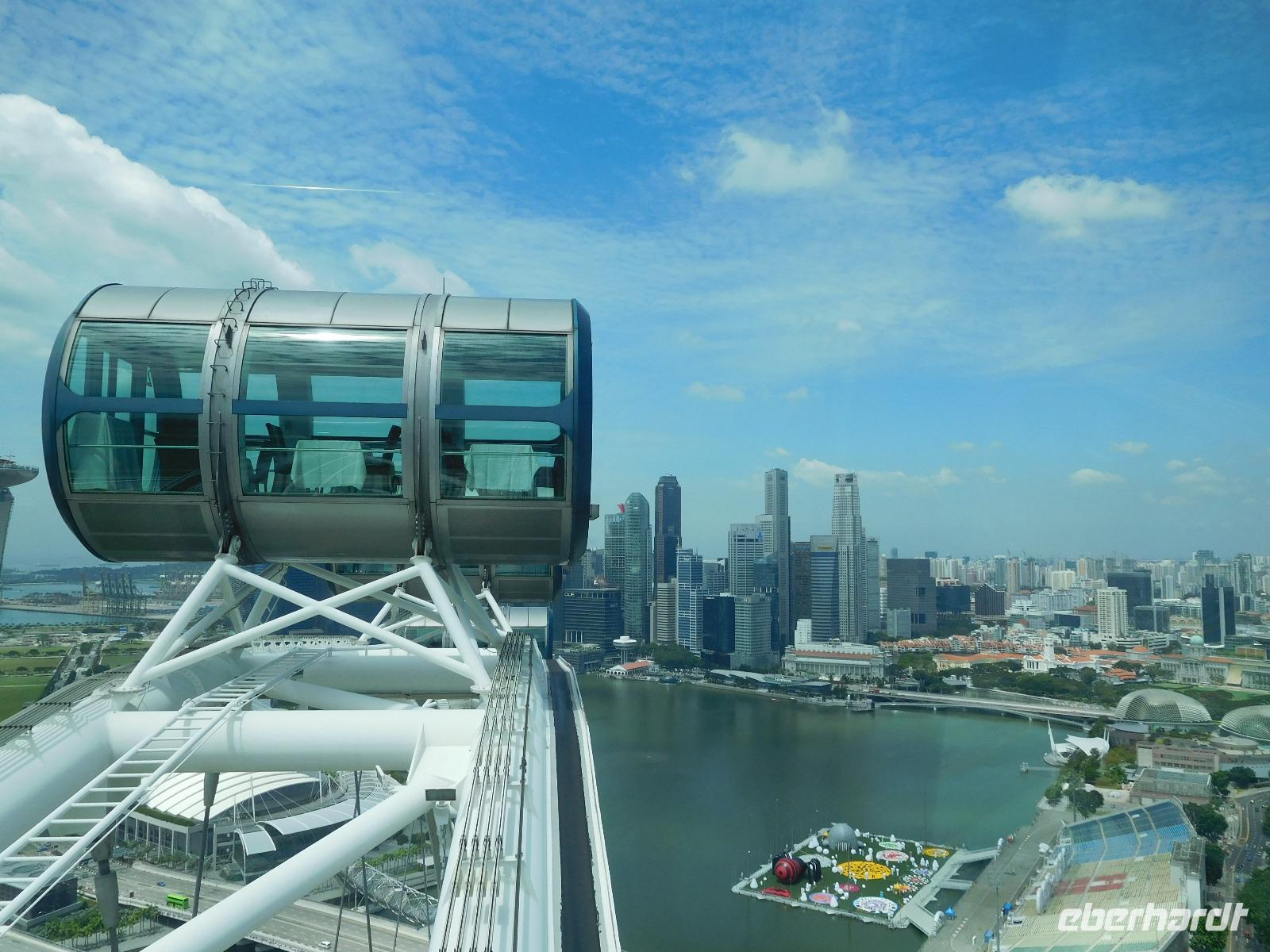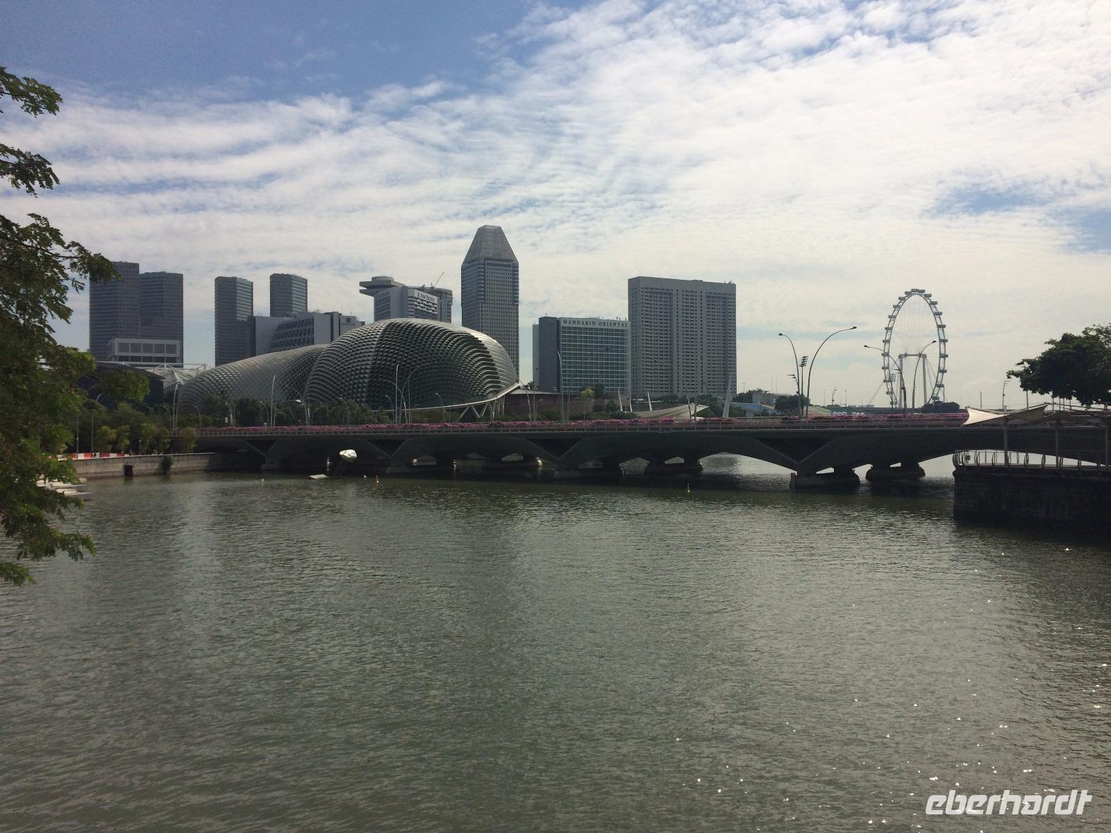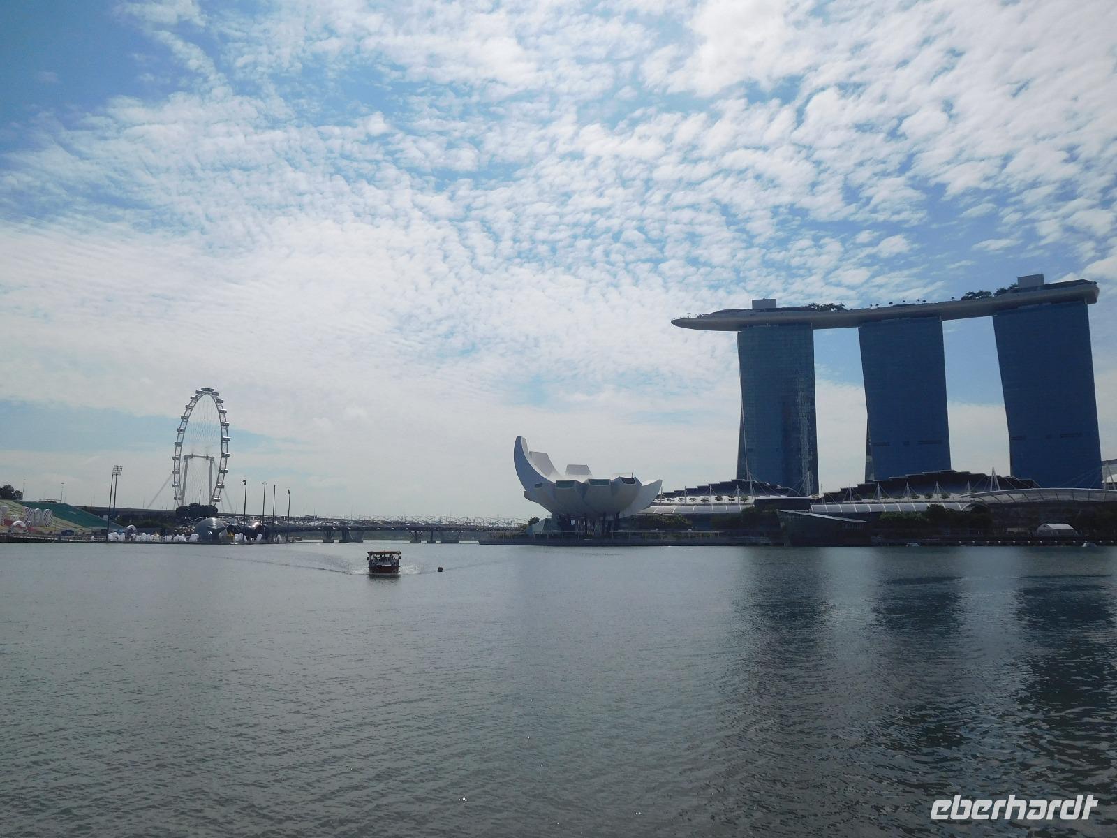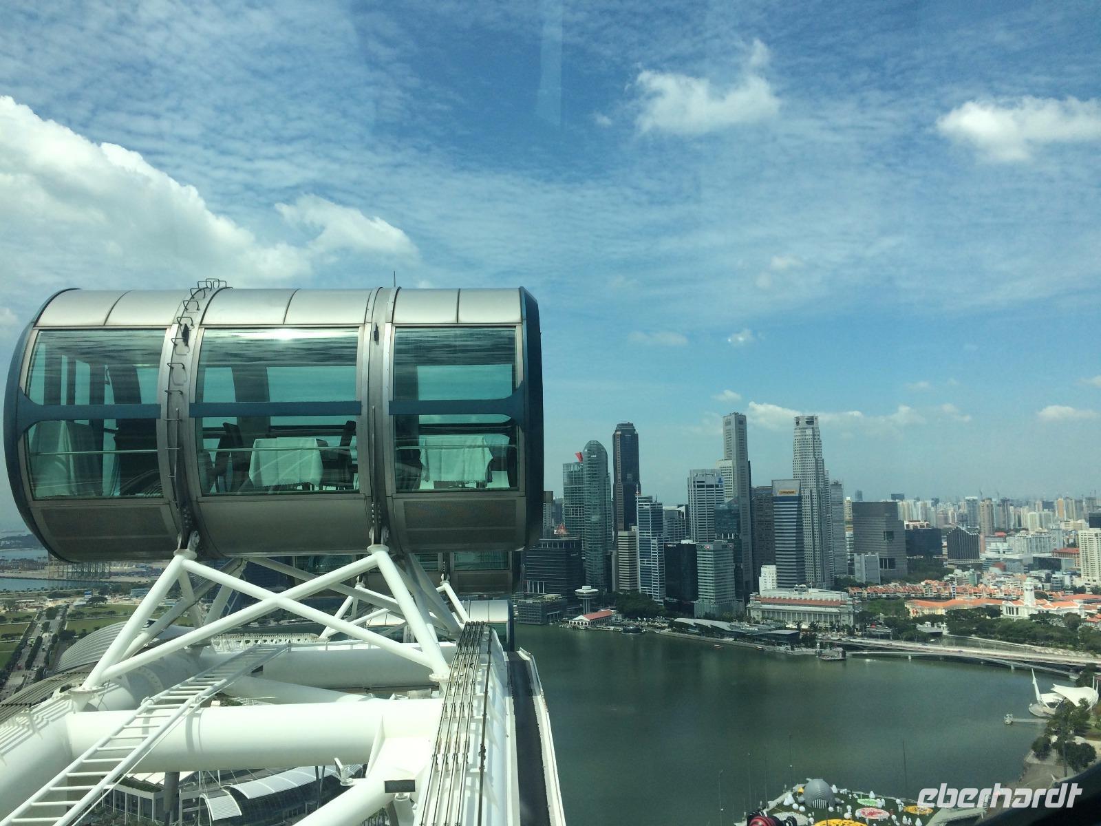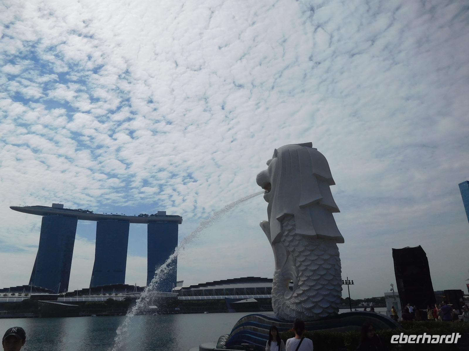 Wie passierte eigentlich Singapur? So seltsam diese Frage anmutet, so berechtigt ist sie auch, war im 18. Jahrhundert hier nichts an Rohstoffen oder Weltmacht anzutreffen. Unser Guide gab uns dafür bei unserer Stadtrundfahrt einen kleinen Einblick in die Geschichte des sehr strengen Stadtstaats, der seit den 60er Jahren ein unglaubliches Wachstum hingelegt hat. Wir schlenderten so von atemberaubender zu faszinierender Sehenswürdigkeit und waren uns dabei immer der Einmaligkeit des Momentes bewusst. Wir sahen die Nationalgalerie, auf der der Oberste Gerichtshof wie ein UFO thront. Weiter spazierten wir zum Merlion, dem Wahrzeichen von Singapur und konnten einen Blick auf das Riesenrad Singapore Flyer, die Insektenaugen der Konzerthalle und die markanten drei Türme werfen - wie schön reflektierte die Sonne von den sauberen Fassaden des berühmten Hotels Marina Bay Sands! Diese Perspektive genossen wir während der geruhsamen Fahrt mit dem zweithöchsten Riesenrad der Erde: Dem Singapore Flyer. Von oben erschlossen wir außerdem die Boxenstopps und Tribünen der Formel-1-Strecke, die lotusförmige Kunstakademie und konnten schon einen Blick auf die gigantische Gartenanlage Gardens by the Bay erhaschen. Schier endlos erstreckt sich von hier die Hochhauslandschaft von Singapur, zumindest so weit wie die Dunstschwaden unser Auge haben blicken lassen.