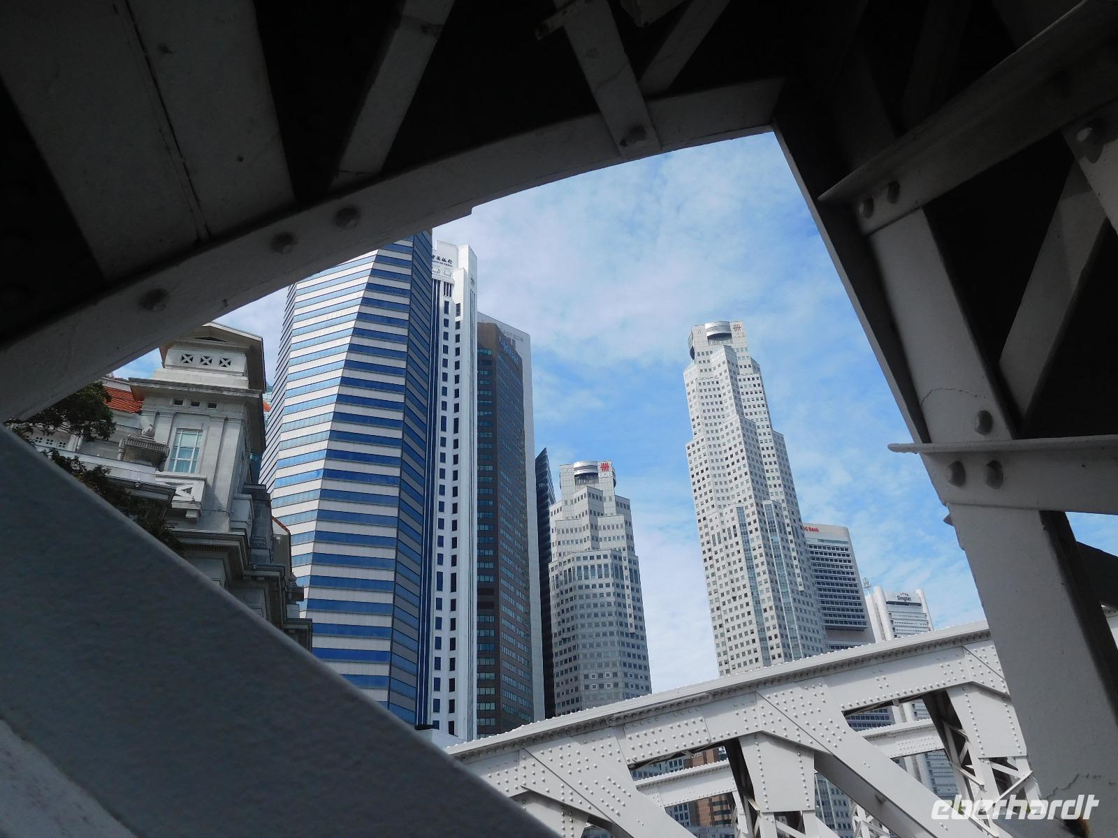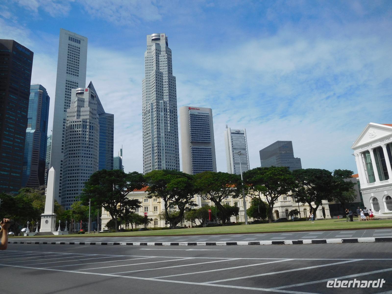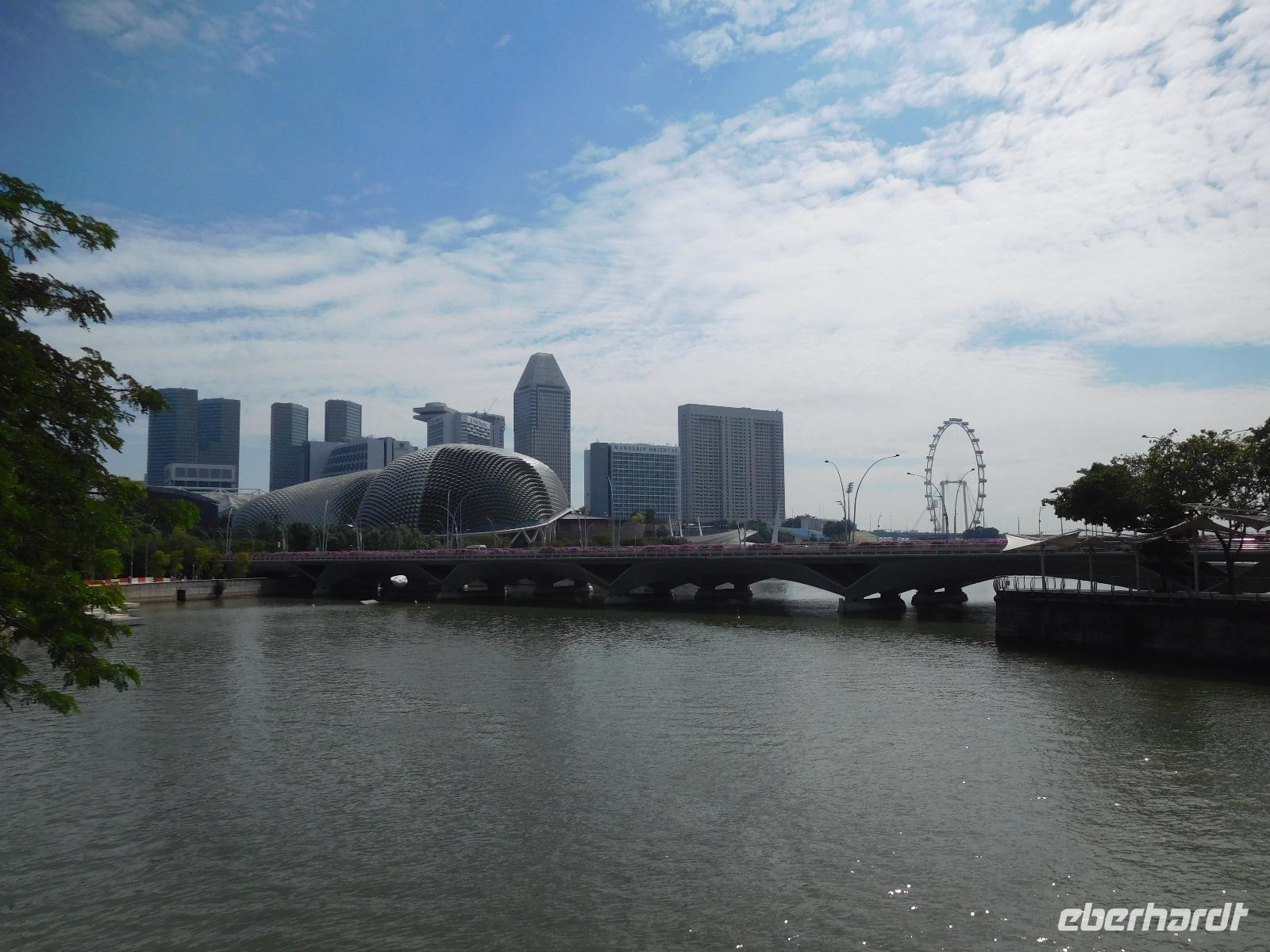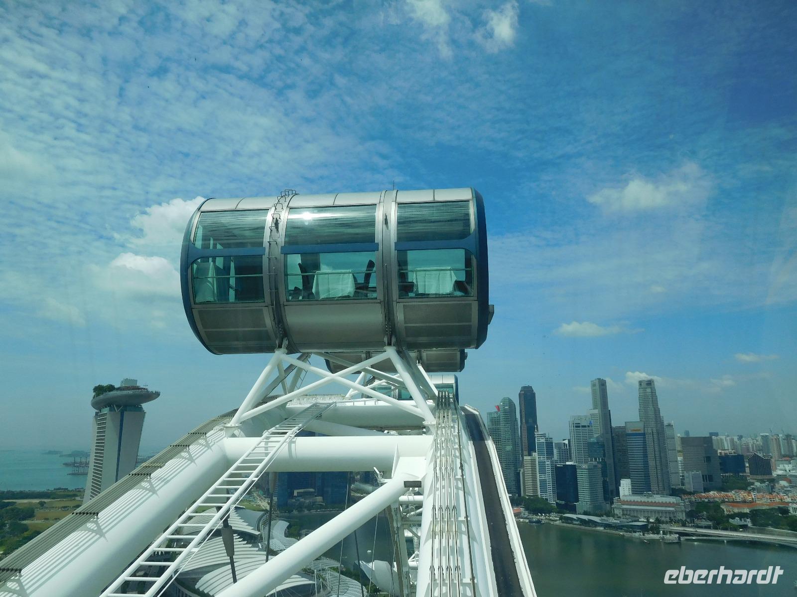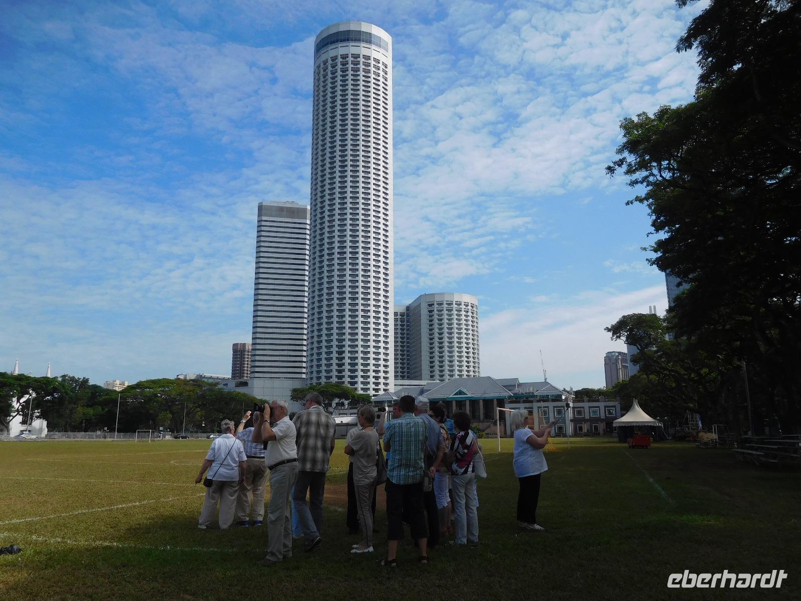 Wie passierte eigentlich Singapur? So seltsam diese Frage anmutet, so berechtigt ist sie auch, war im 18. Jahrhundert hier nichts an Rohstoffen oder Weltmacht anzutreffen. Unser Guide gab uns dafür bei unserer Stadtrundfahrt einen kleinen Einblick in die Geschichte des sehr strengen Stadtstaats, der seit den 60er Jahren ein unglaubliches Wachstum hingelegt hat. Wir schlenderten so von atemberaubender zu faszinierender Sehenswürdigkeit und waren uns dabei immer der Einmaligkeit des Momentes bewusst. Wir sahen die Nationalgalerie, auf der der Oberste Gerichtshof wie ein UFO thront. Weiter spazierten wir zum Merlion, dem Wahrzeichen von Singapur und konnten einen Blick auf das Riesenrad Singapore Flyer, die Insektenaugen der Konzerthalle und die markanten drei Türme werfen - wie schön reflektierte die Sonne von den sauberen Fassaden des berühmten Hotels Marina Bay Sands! Diese Perspektive genossen wir während der geruhsamen Fahrt mit dem zweithöchsten Riesenrad der Erde: Dem Singapore Flyer. Von oben erschlossen wir außerdem die Boxenstopps und Tribünen der Formel-1-Strecke, die lotusförmige Kunstakademie und konnten schon einen Blick auf die gigantische Gartenanlage Gardens by the Bay erhaschen. Schier endlos erstreckt sich von hier die Hochhauslandschaft von Singapur, zumindest so weit wie die Dunstschwaden unser Auge haben blicken lassen.