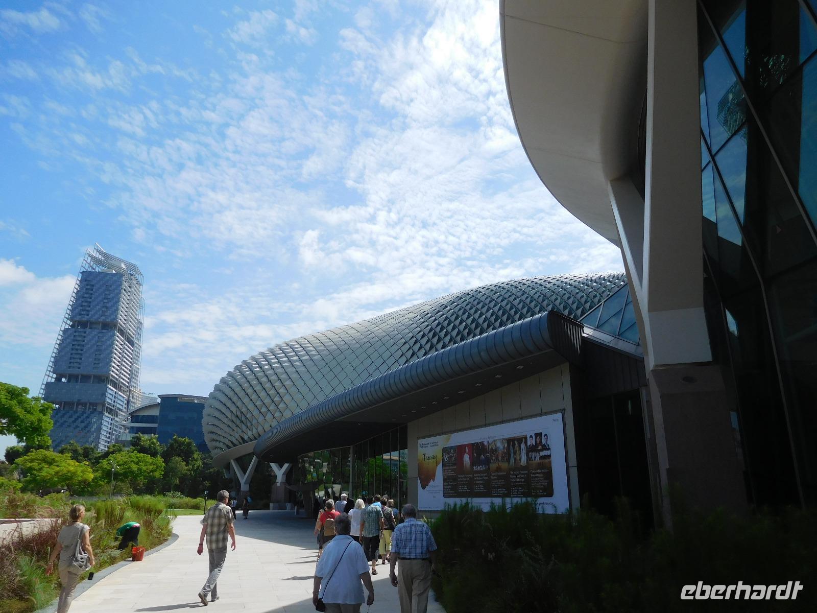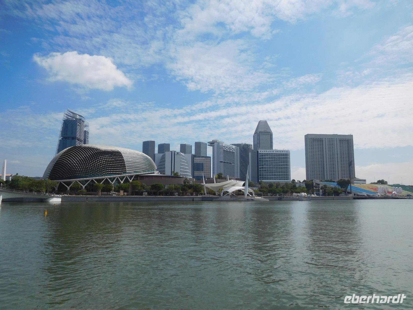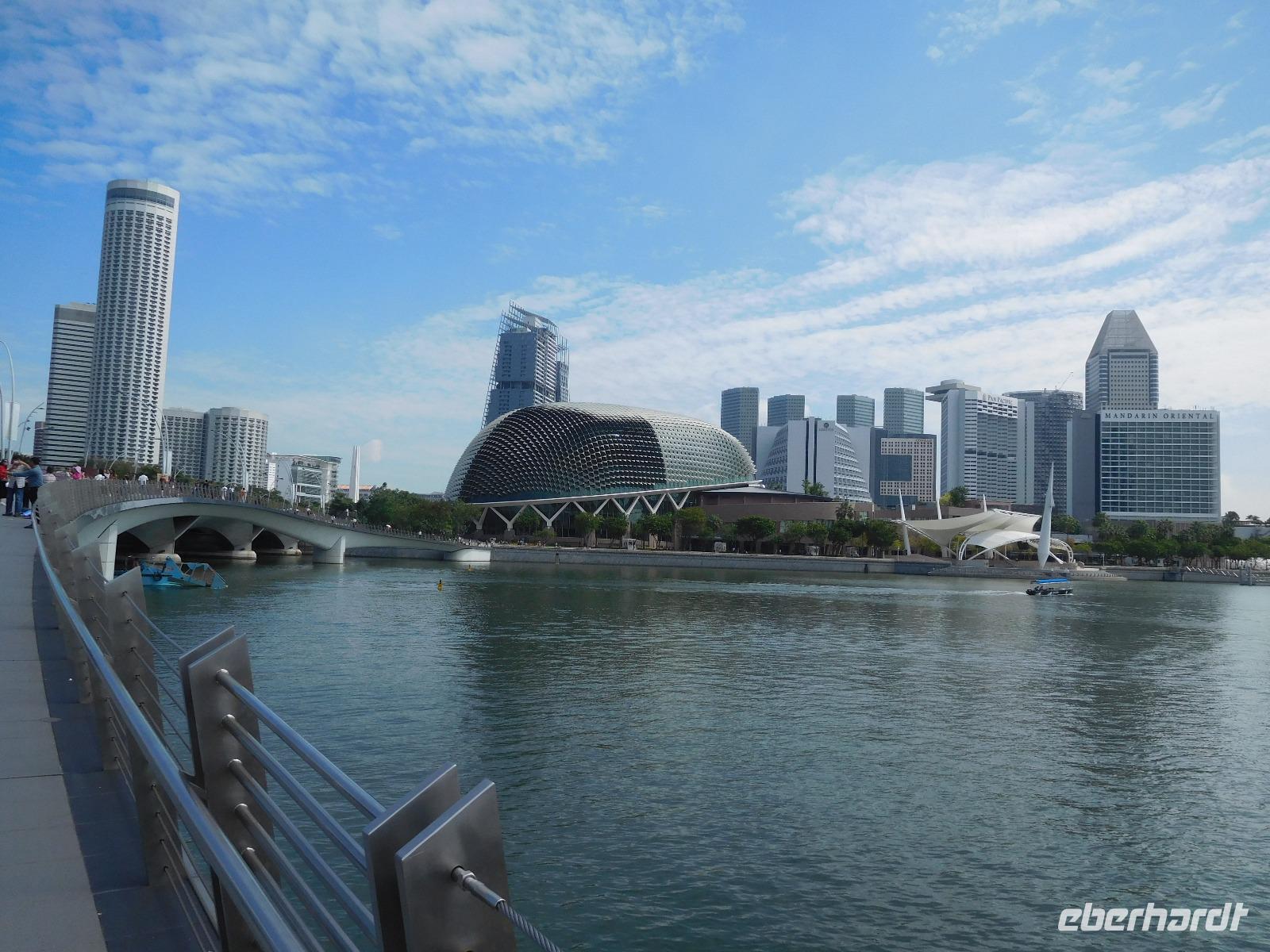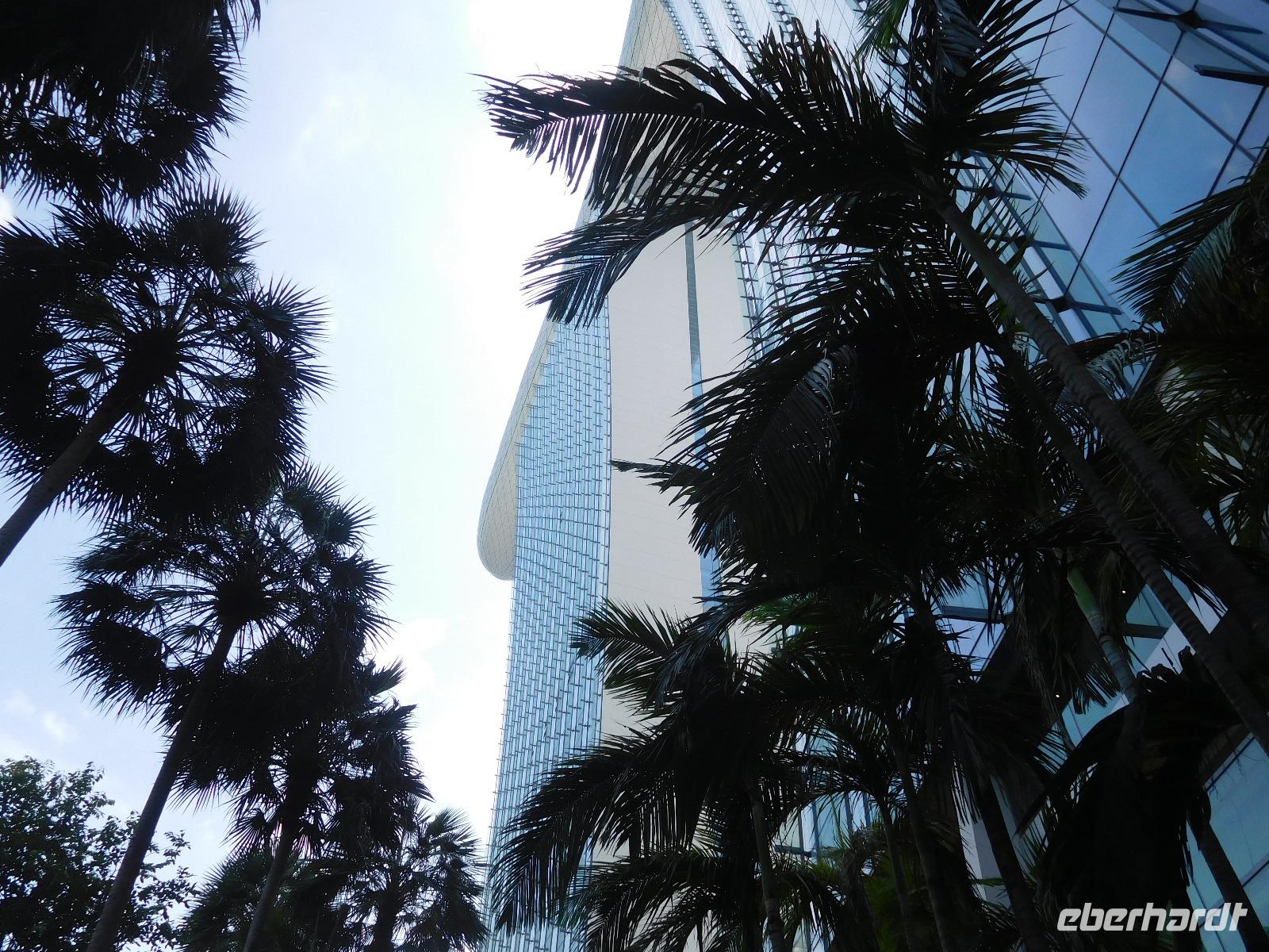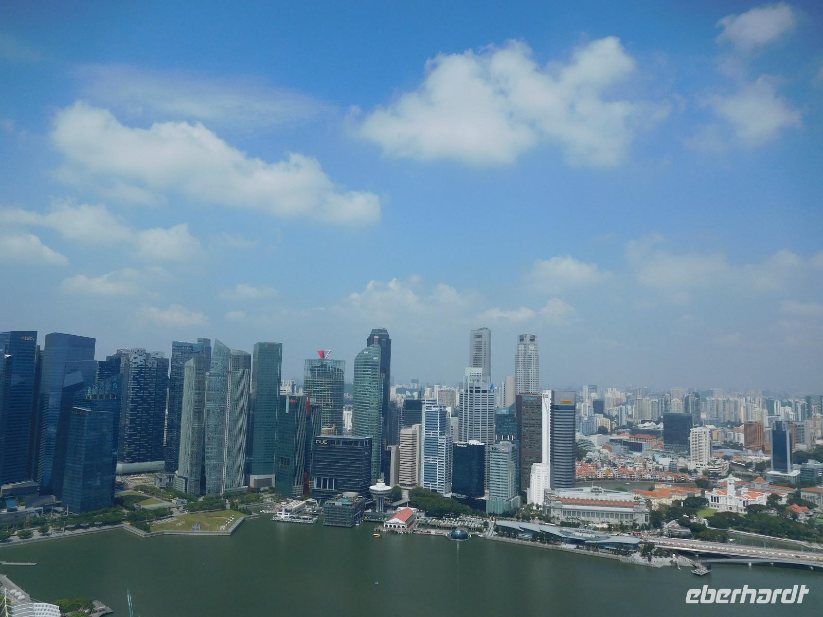 Viel hatten wir in den letzten Tagen schon von Singapur sehen dürfen, nun konnte jeder noch das sehen, was er gern wollte. Manche zog es in den Dschungel, manche zum Erholungsschlaf an Bord, wieder andere genossen einen Singapore Sling im dafür berühmten Raffles Hotel - und wir fuhren hinauf auf das Marina Bay Sands Hotel. Von dessen Aussichtsplattform konnten wir einen spektakulären Blick auf die Skyline von Singapur, den Singapore Flyer und das Hafengelände genießen. Wie der berühmte Infinity Pool aussieht, konnten wir leider nur erahnen, da dessen Gäste dank eines Sichtschutzes von unseren neugierigen Blicken geschützt wurden.
