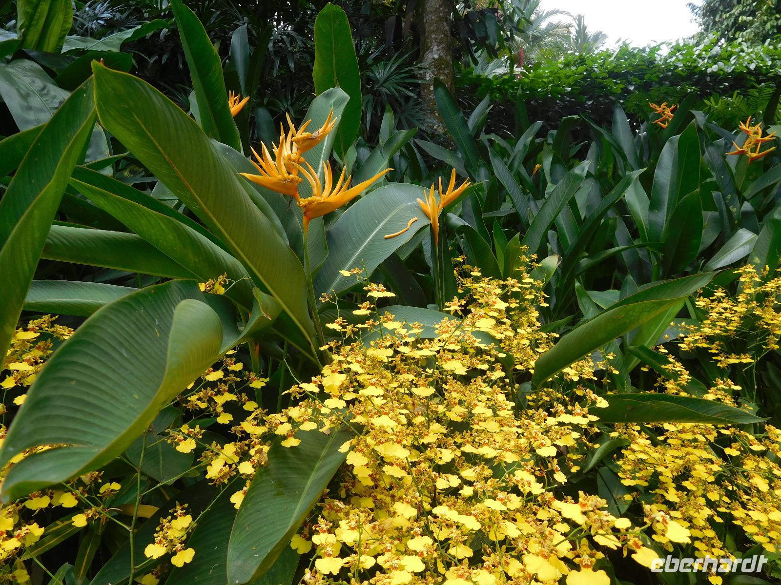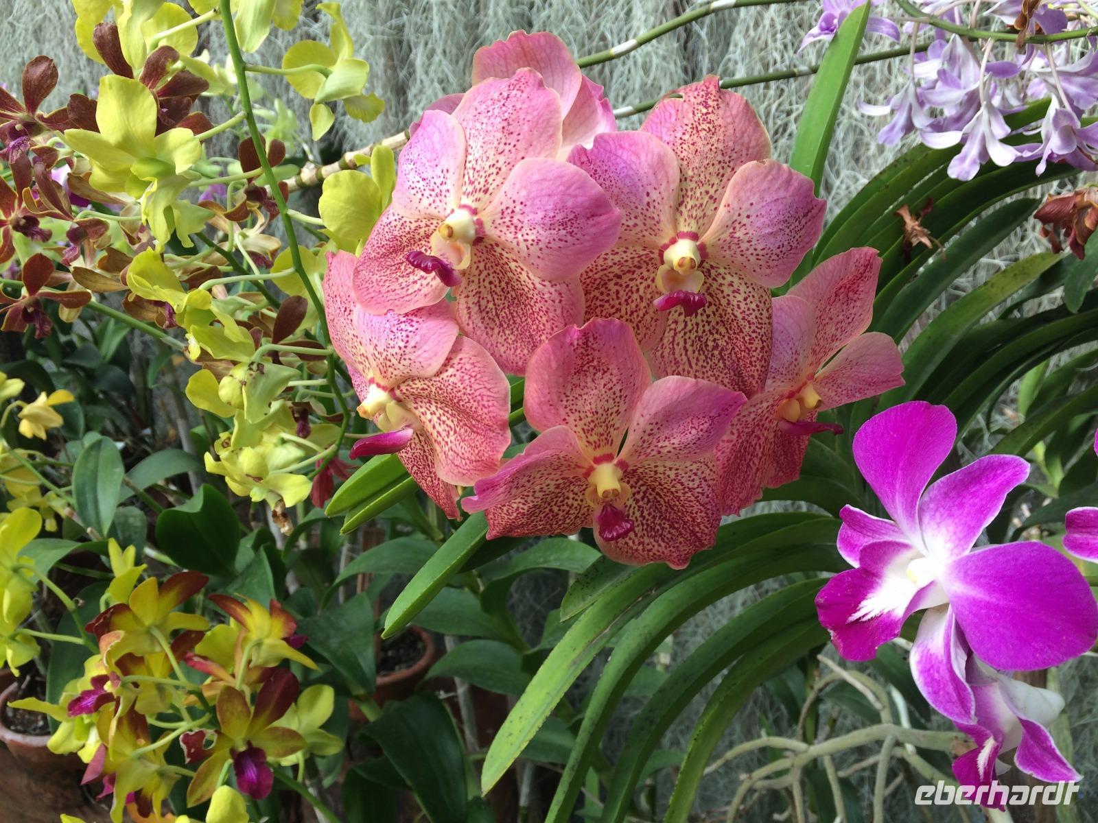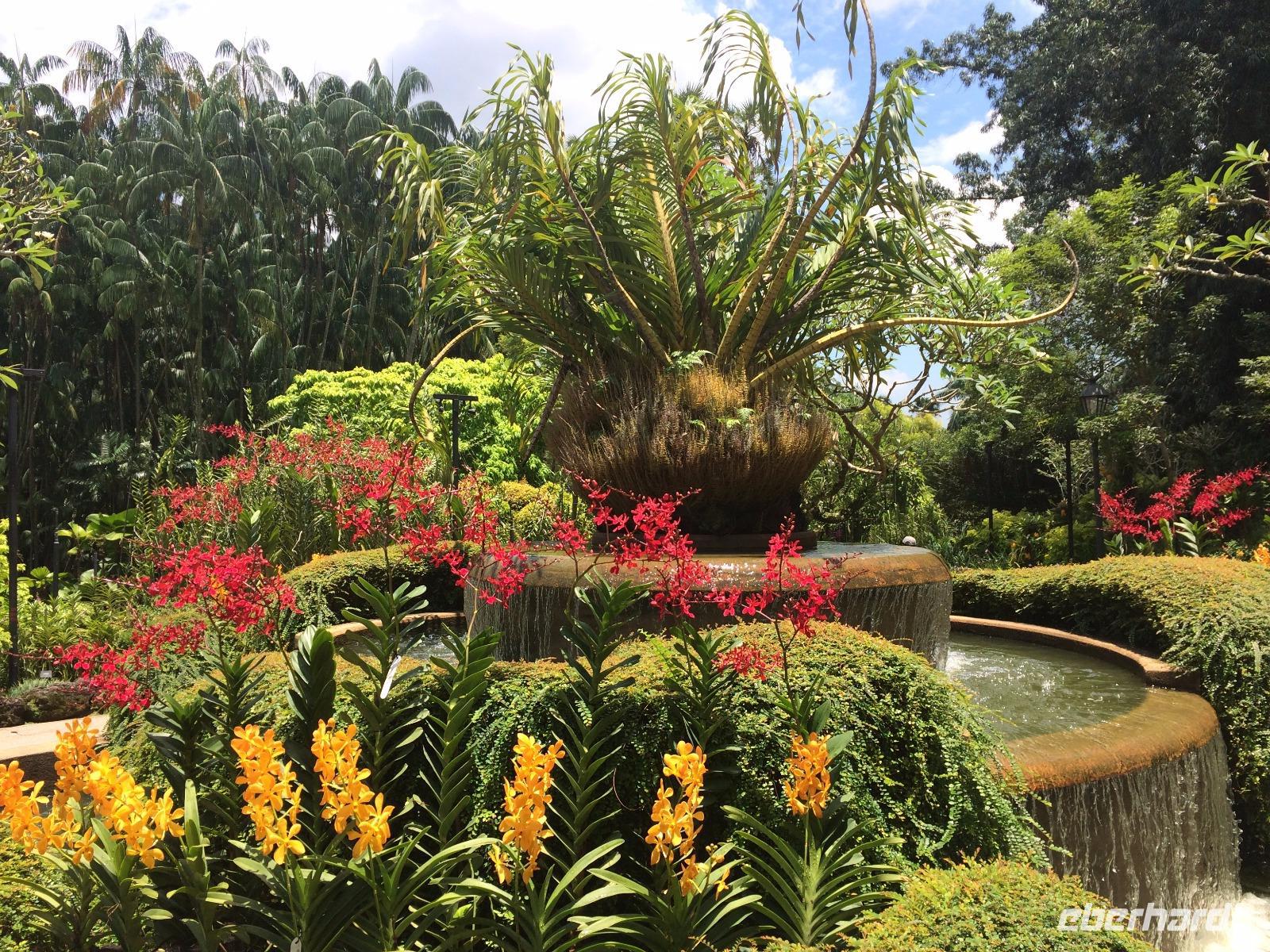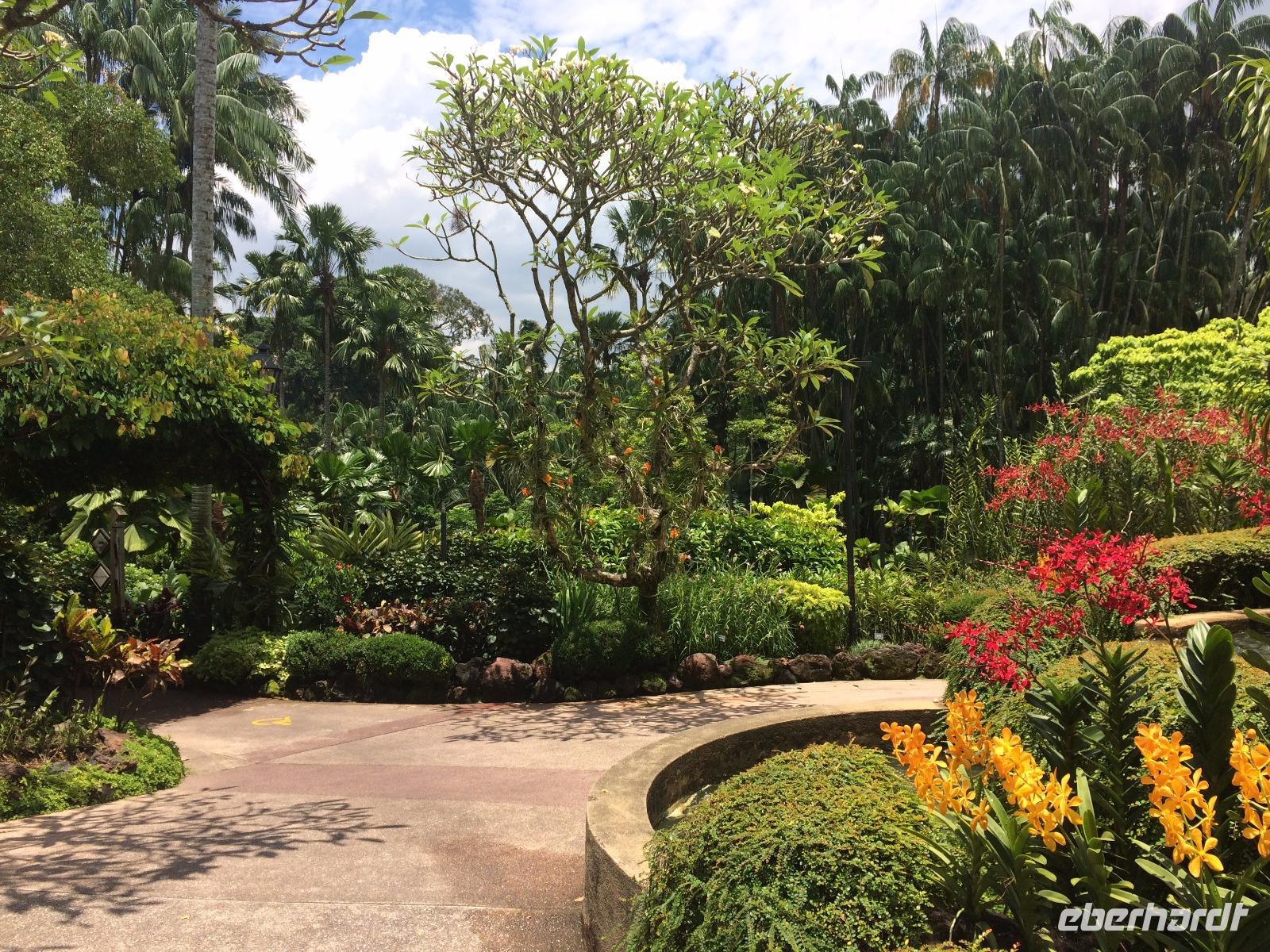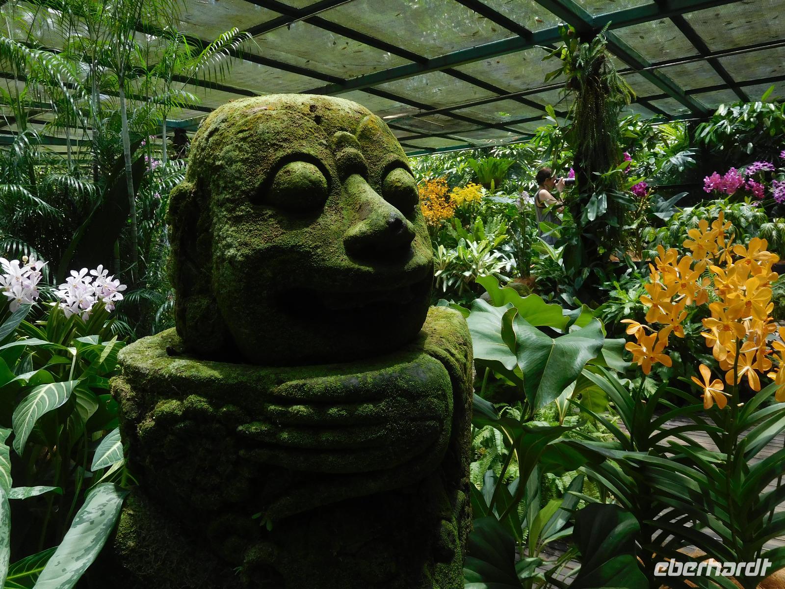 Aber nicht nur Glas und grauer Beton begeistern in Singapur, sondern die vielen Pflanzen, die man nicht nur in Parks und an der Straße, sondern auch an den Fassaden wachsen. Deswegen mussten wir auch in den Orchid Garden, wo unzählige farbenfrohe Orchideen gedeihen.