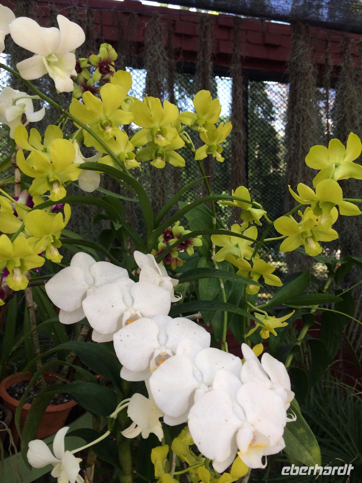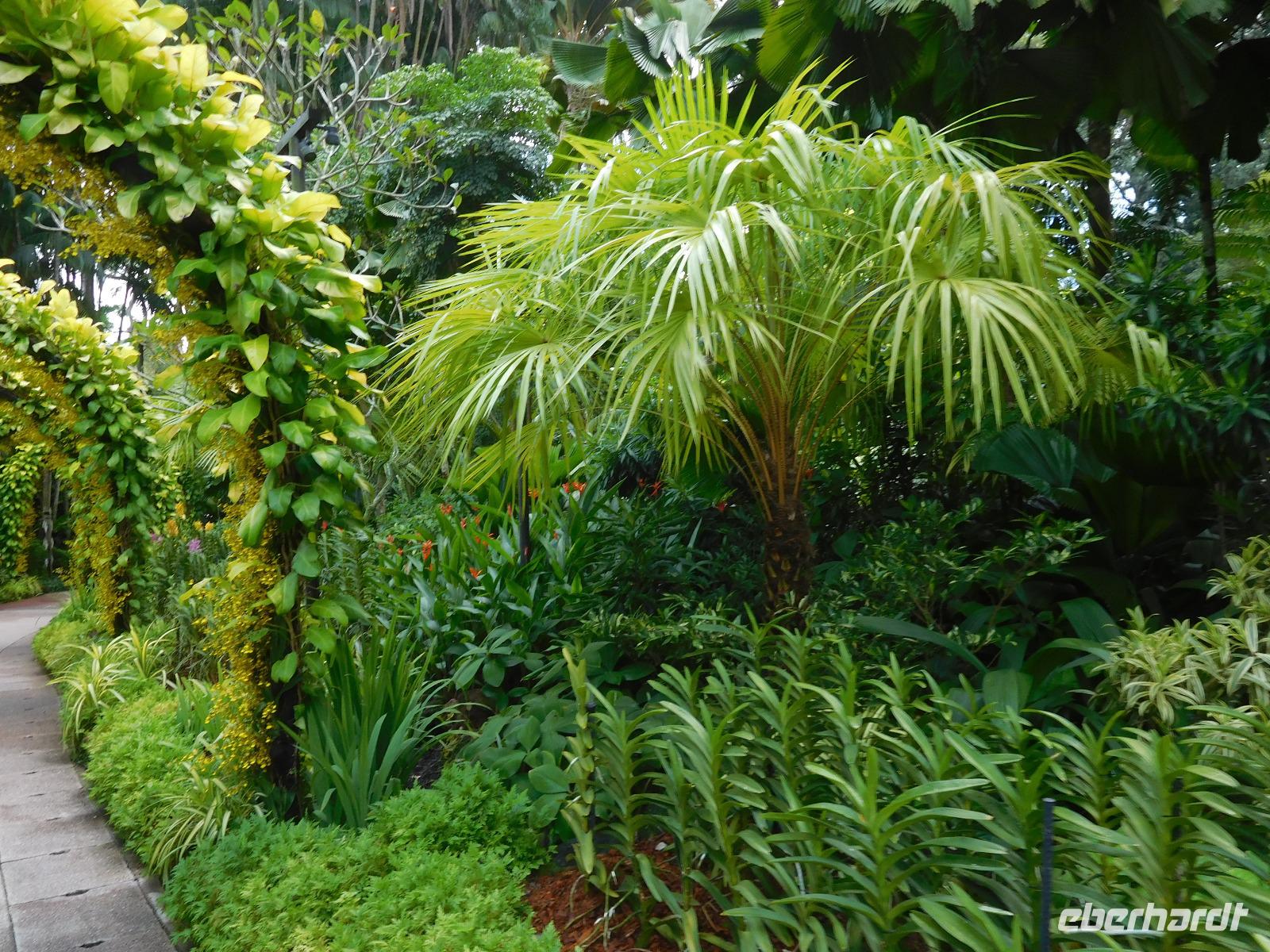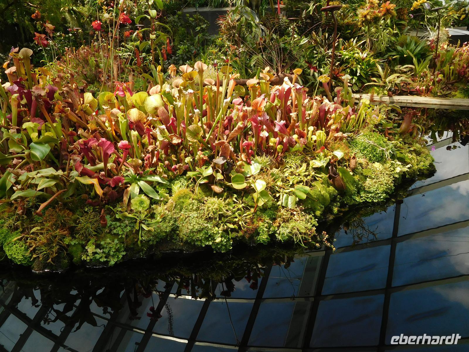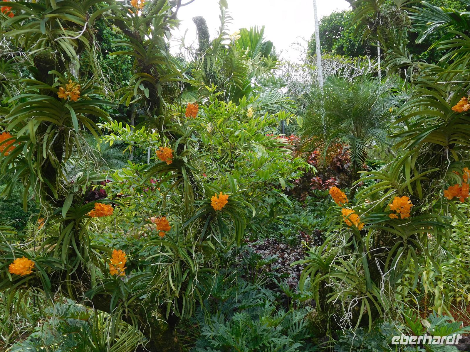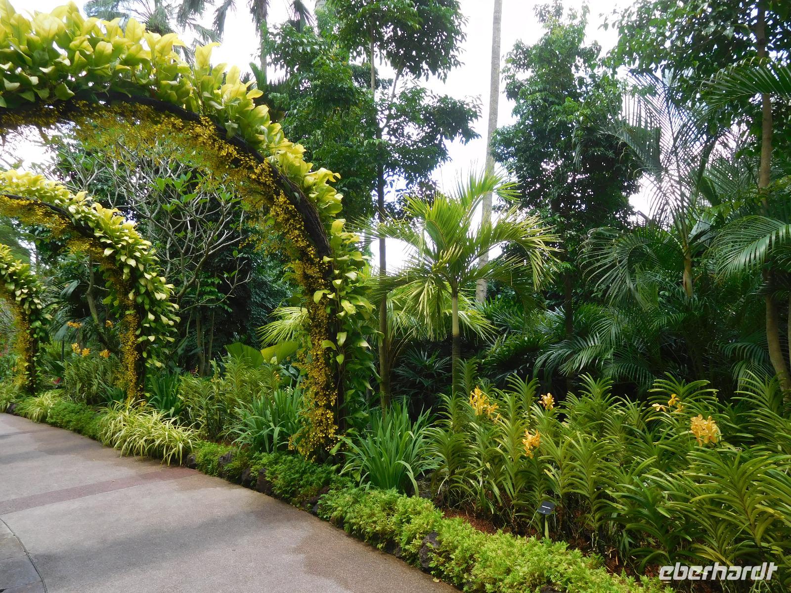 Aber nicht nur Glas und grauer Beton begeistern in Singapur, sondern die vielen Pflanzen, die man nicht nur in Parks und an der Straße, sondern auch an den Fassaden wachsen. Deswegen mussten wir auch in den Orchid Garden, wo unzählige farbenfrohe Orchideen gedeihen.