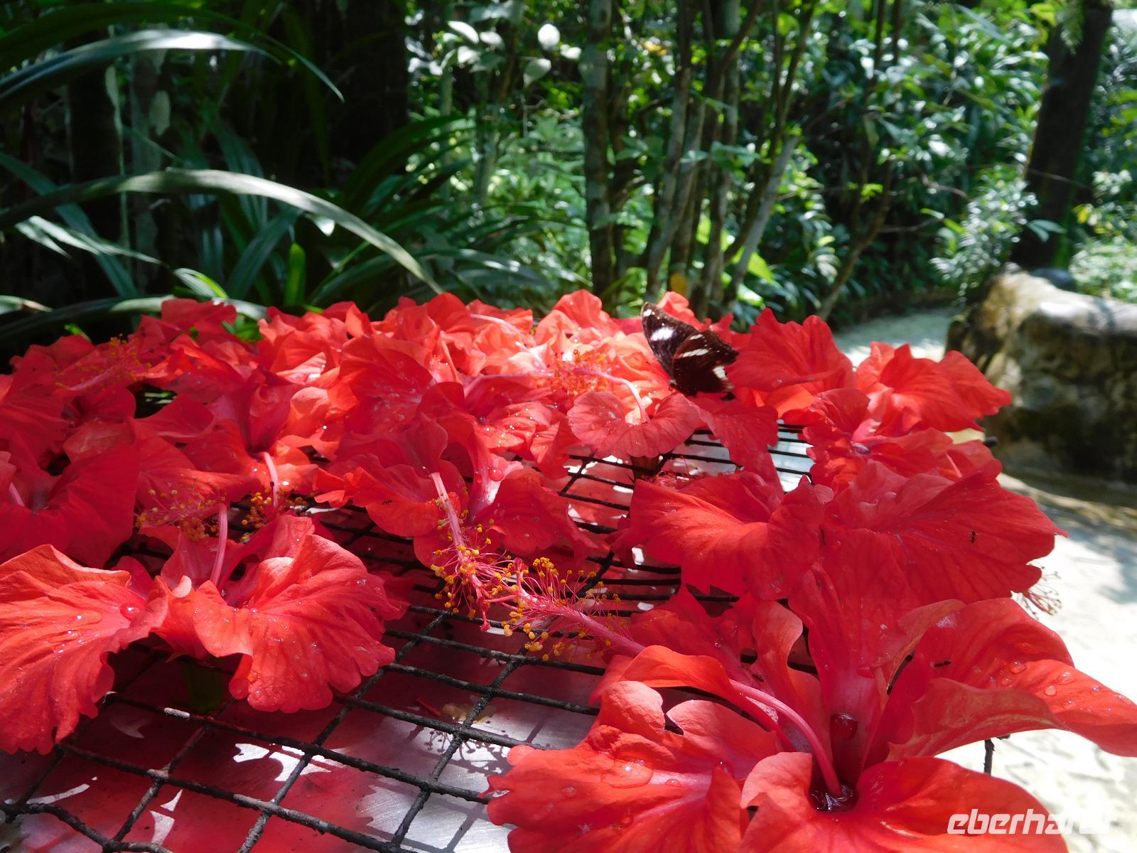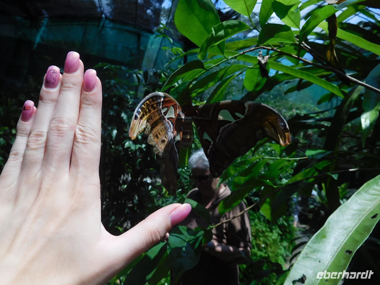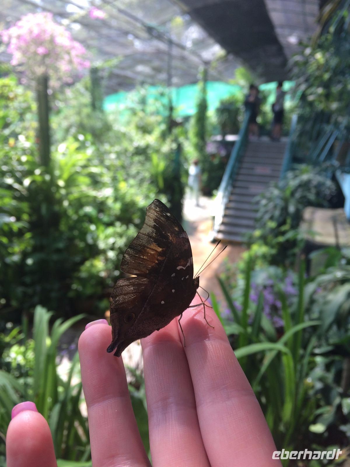 Nach einer Stärkung in einem kleinen Restaurant führte uns Lee zum Schmetterlingspark, in dem eine unfassbare Vielfalt an Farben, Formen und Größen der beflügelten Insekten ihr paradiesisches zu Hause gefunden hatten. Hielt man still, setzten sie sich auch direkt auf unsere Köpfe oder Finger.