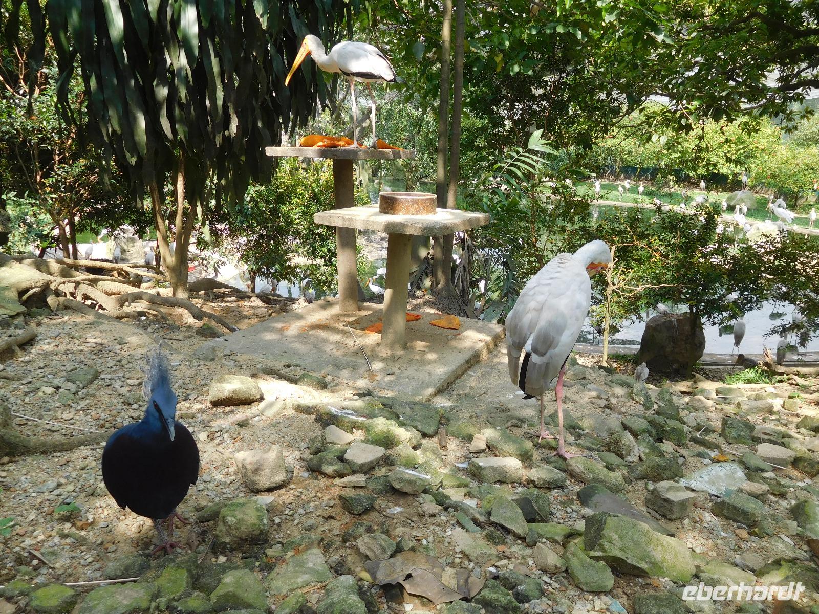 Beflügelt war auch der nächste Programmpunkt: Der Vogelpark von Kuala Lumpur ist der größte Freiluft-Vogelpark weltweit. Hier spazierten wir eine kurze Weile zwischen den frei fliegenden Vögeln umher, bevor wir bei der Hitze kapitulierten und gern die einstündige Rückfahrt zur Mein Schiff 1 antraten.