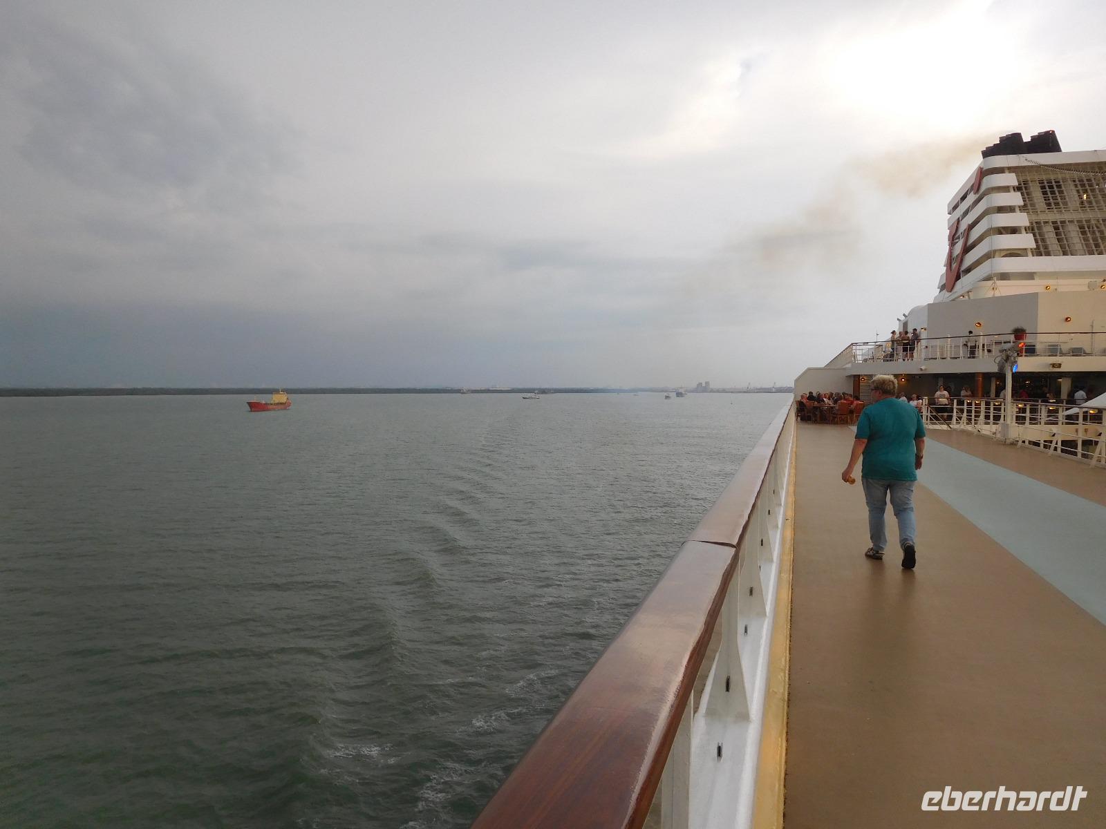 Mancher freute sich nun über das kostenlose WLAN im Hafengebäude für Grüße in die Heimat, andere nutzten schon die Gelegenheit zu einem abendlichen Ausflug nach Kuala Lumpur. Am Abend verzauberte an Deck eine malayische Tänzergruppe die Gäste mit einer Zusammenstellung verschiedener traditioneller Tänze von Bollywood bis Apsara-Tanz.
