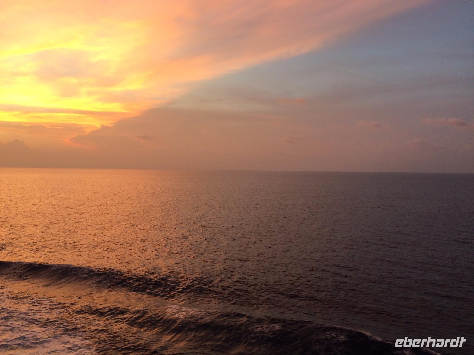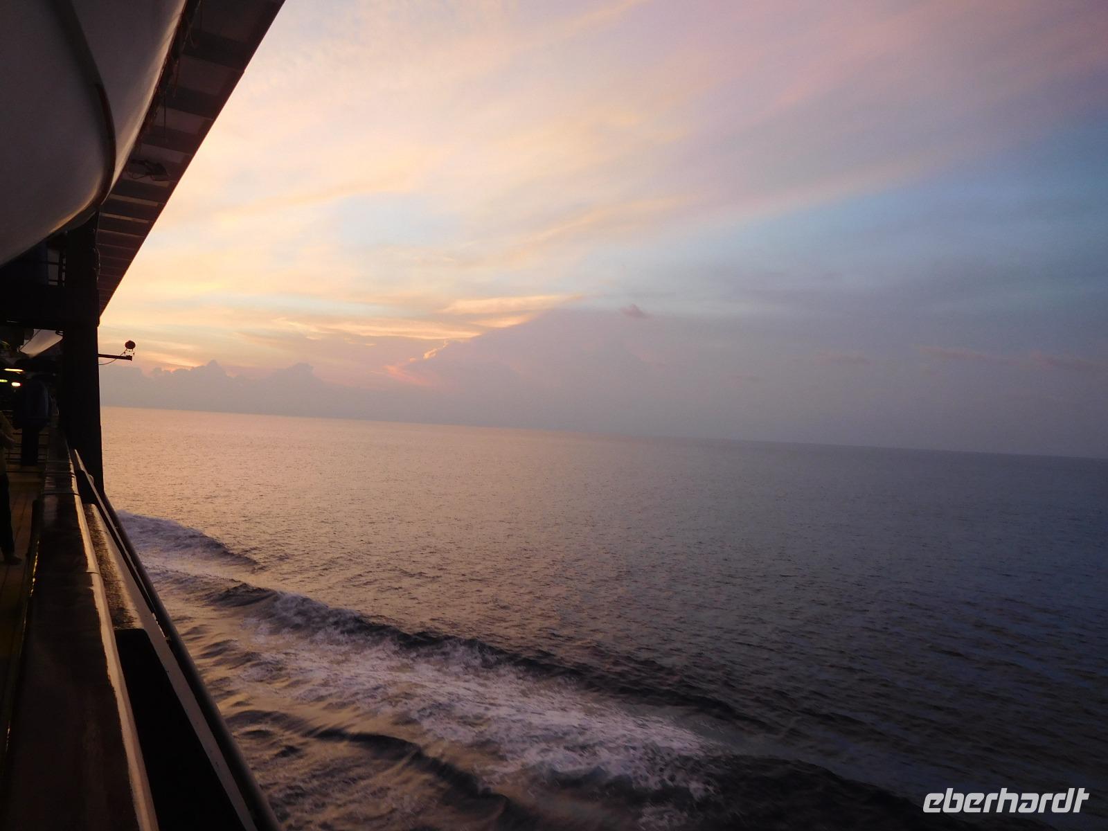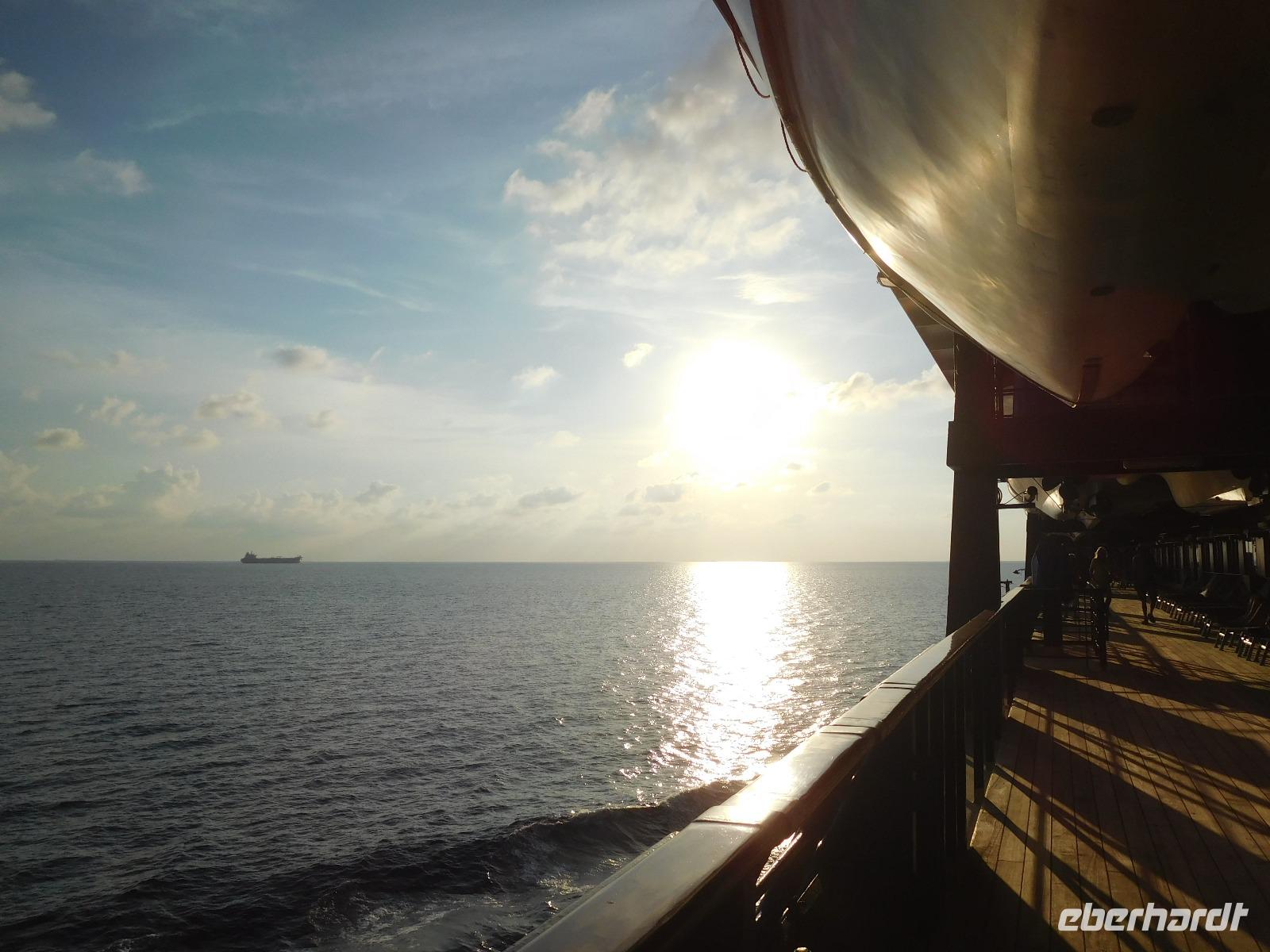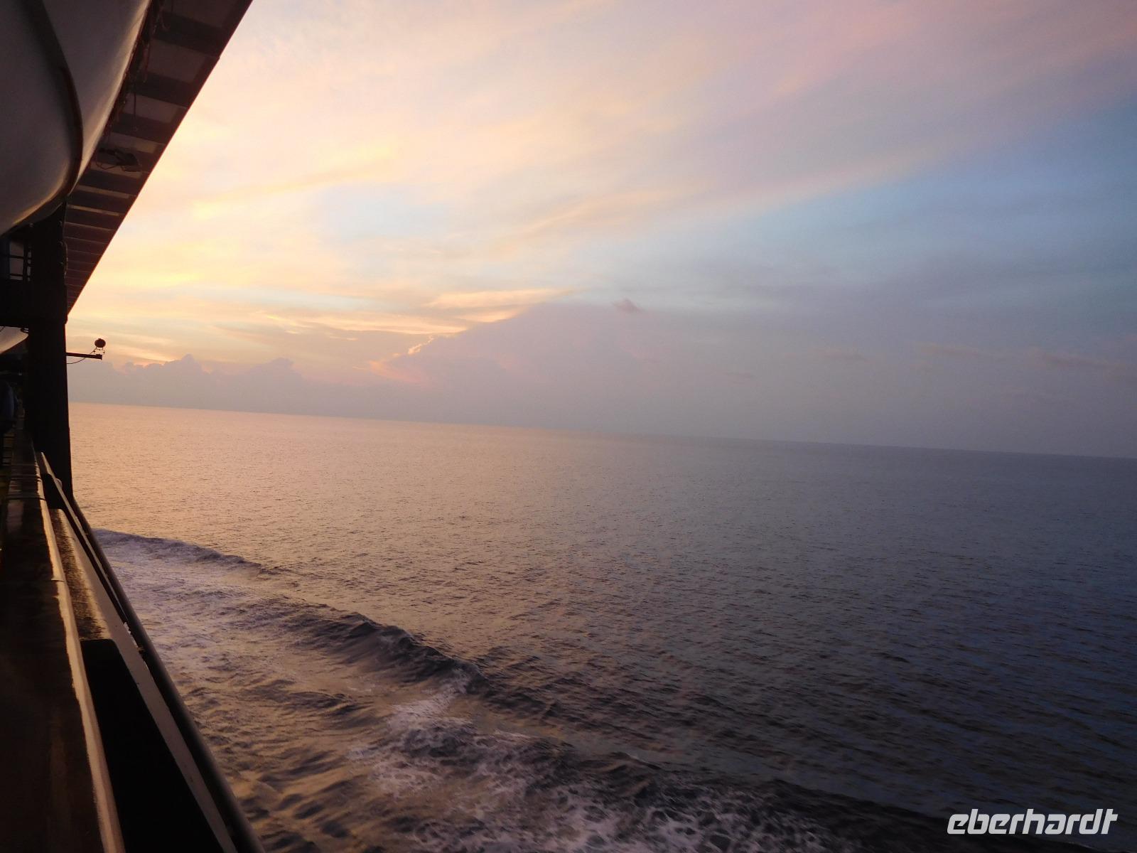 Endlich entspannen! Nach so vielen Eindrücken in den vergangenen Tagen hatten wir nun drei volle Tage auf See Zeit, erlebtes nachklingen zu lassen, Sonne und Kulinarik an Bord zu genießen und die vielseitigen Angebote des Bordlebens ausgiebig zu genießen. Für die einen zählte definitiv der Balkon dazu, andere zogen eher den Pool vor. Gemeinsam lauschten wir den verschiedenen Lektoren-Vorträgen über neue Kreuzfahrten in Nordamerika und natürlich unsere nächste Destination Sri Lanka, getrennt später dem Meeresrauschen, dessen Farbspektrum diesmal von silbergrau bis azurblau reichte und uns teils mit spiegelglatter Fläche faszinierte oder uns in leichten Wellen sanft wiegte. Abends trafen wir uns zum Restaurant-Testen, erst Atlantik, dann das Gosch. Je nach Interesse besuchten wir dann die Shows im Theater oder die einladenden Bars an Deck.