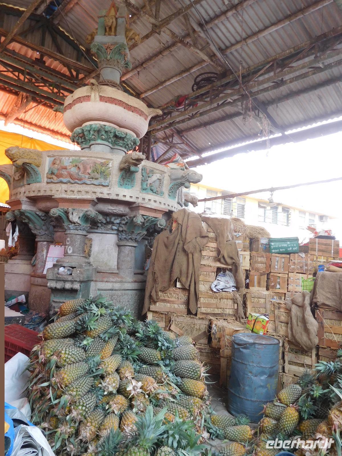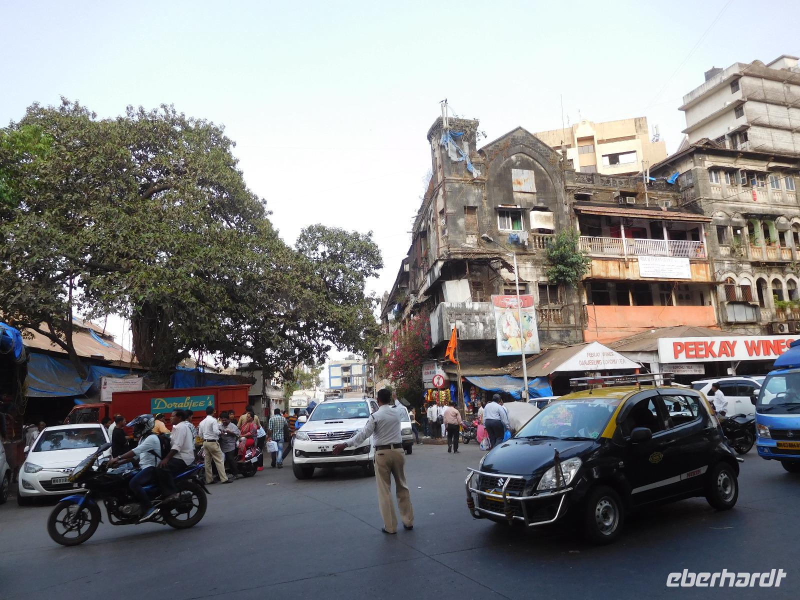 Indien ist pures Leben, ist Trubel - und Handel. Deswegen entschlossen wir uns, beim Crawford Market nicht nur einen Fotostopp einzulegen, sondern wagten uns mitten hindurch! Allein die Straßenüberquerung, um zum Markt zu gelangen, kann als Abenteuer durchgehen. Auf dem Markt selbst findet man alles, was das Herz begehrt. Ob Kanarienvögel oder Gewürze, frisches Obst, Kosmetik oder Waschmittel wird hier alles angepriesen.