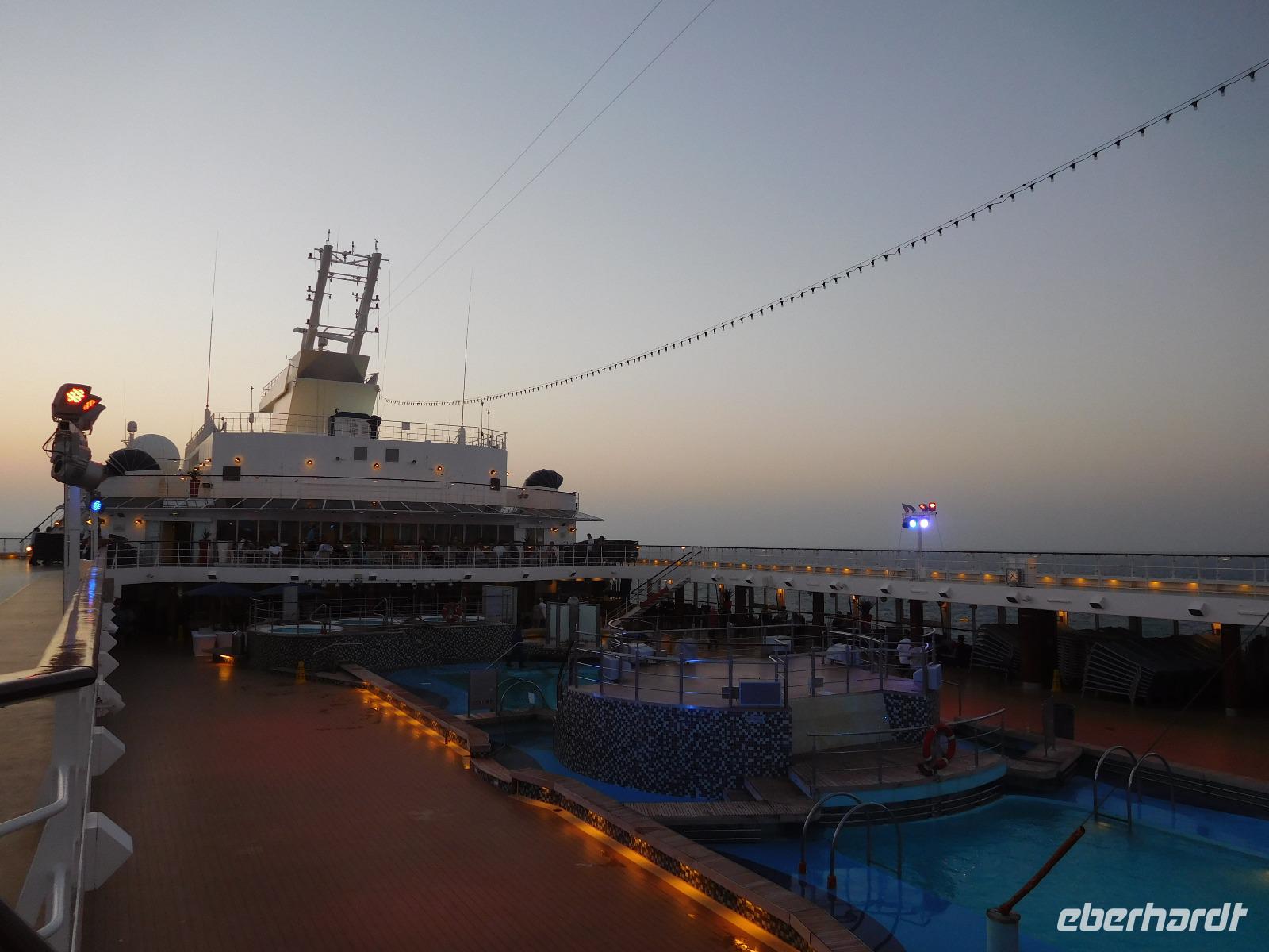 Den Nachmittag verbrachten manche wieder bei den Annehmlichkeiten an Bord unseres Schiffes, während andere noch einmal die Gelegenheit nutzten und die orientalische Stadt individuell zu erkunden. Am Abend liefen wir aus und genossen noch einmal den bisher schönsten Anblick unserer bisherigen Reise.