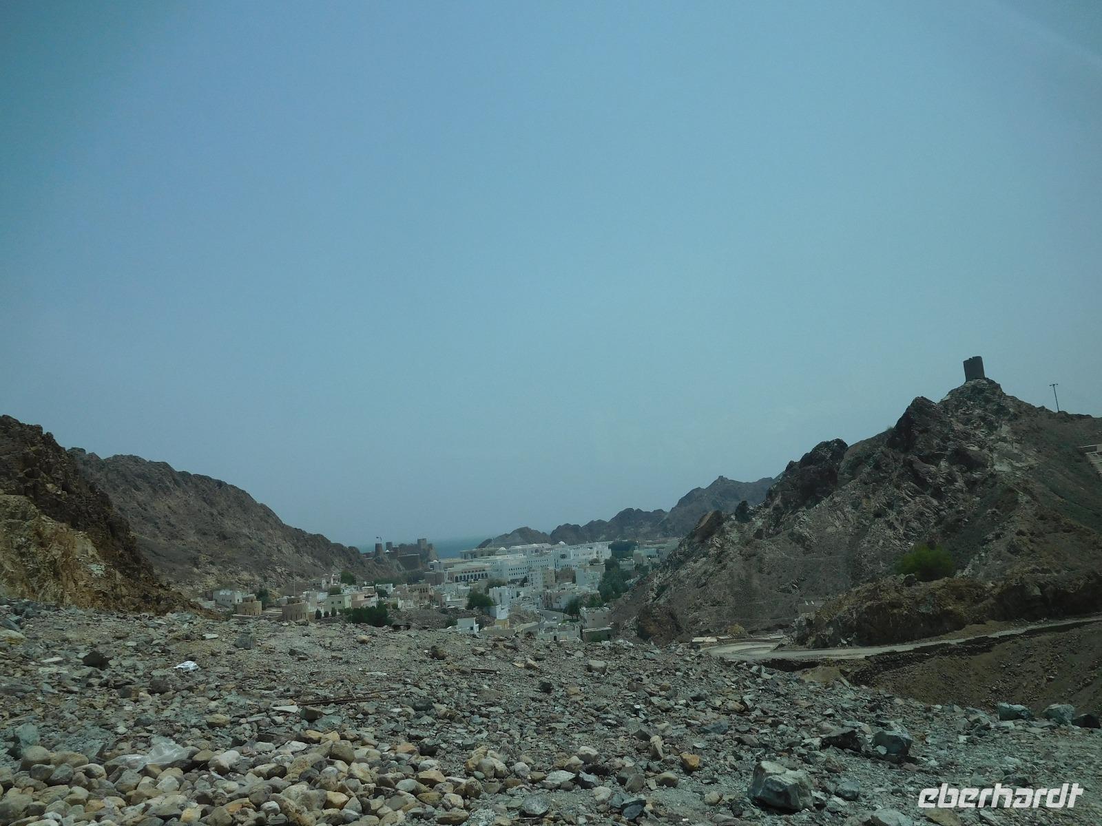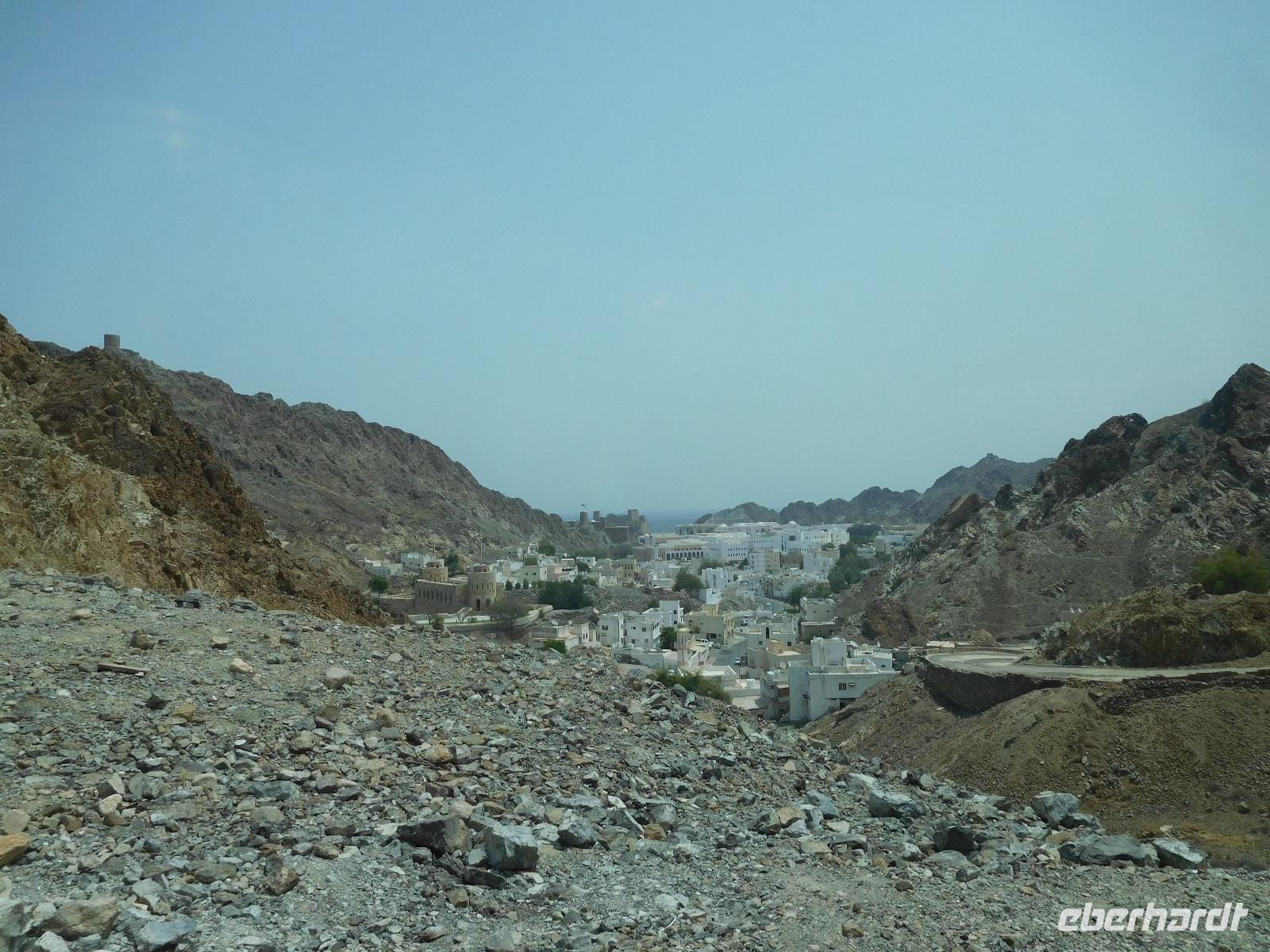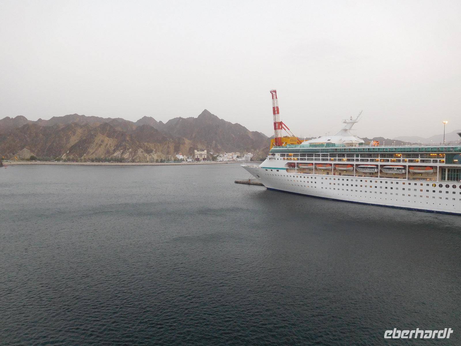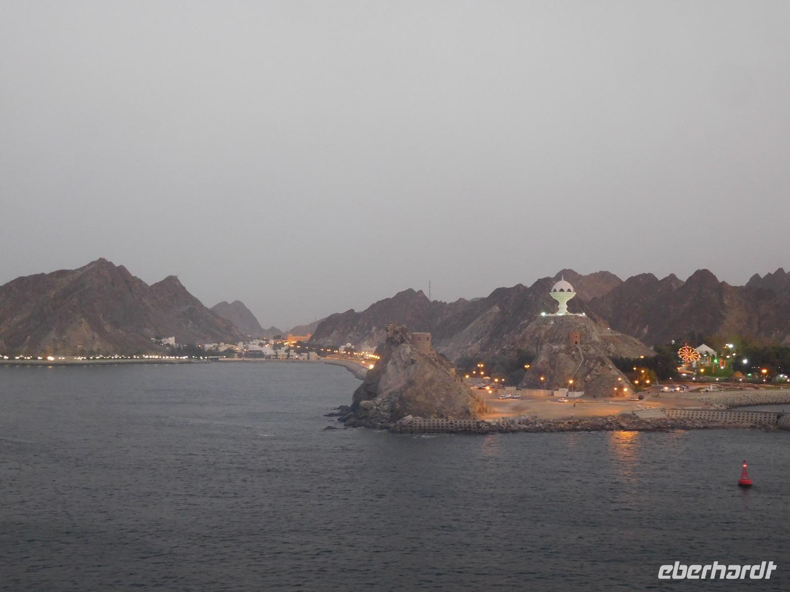Auf den ersten Blick war klar: Hier waren wir im bisher schönsten Hafen unserer Reise. Wir lagen direkt in der Hauptstadt Muscat, die uns mit weißgetünchten Häusern anstrahlte und von schroffen Felsen gerahmt war.