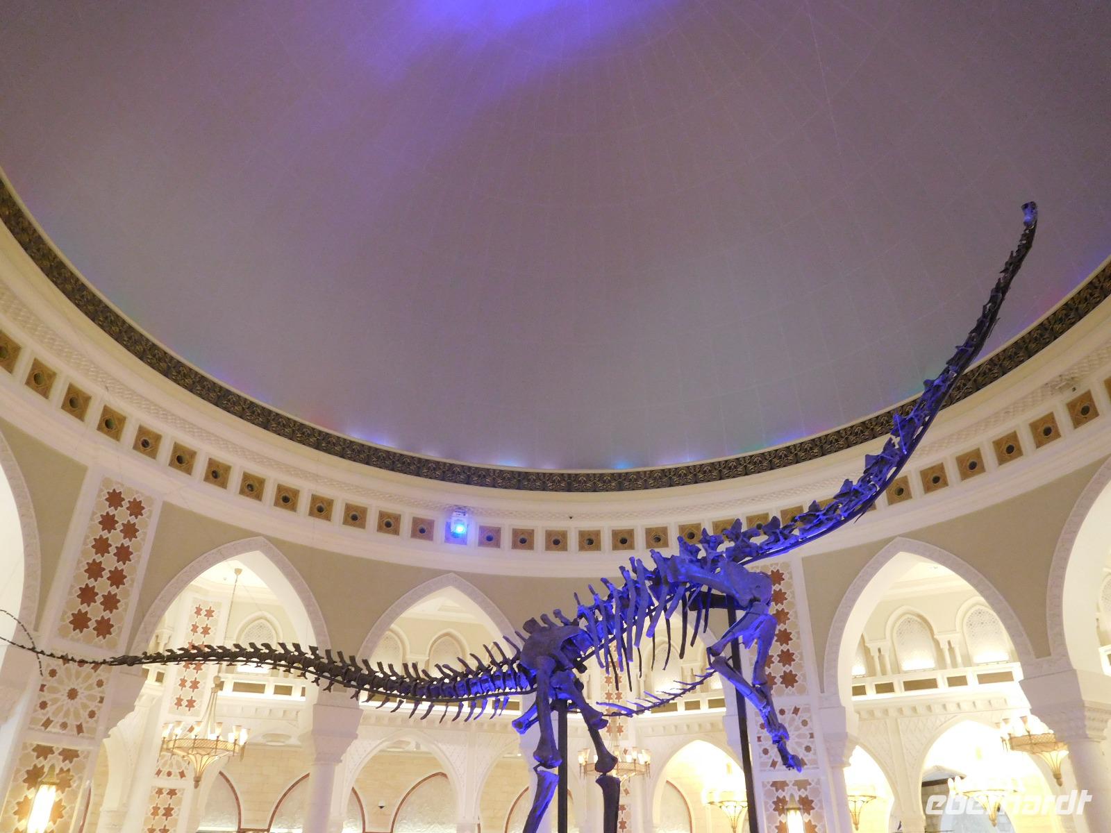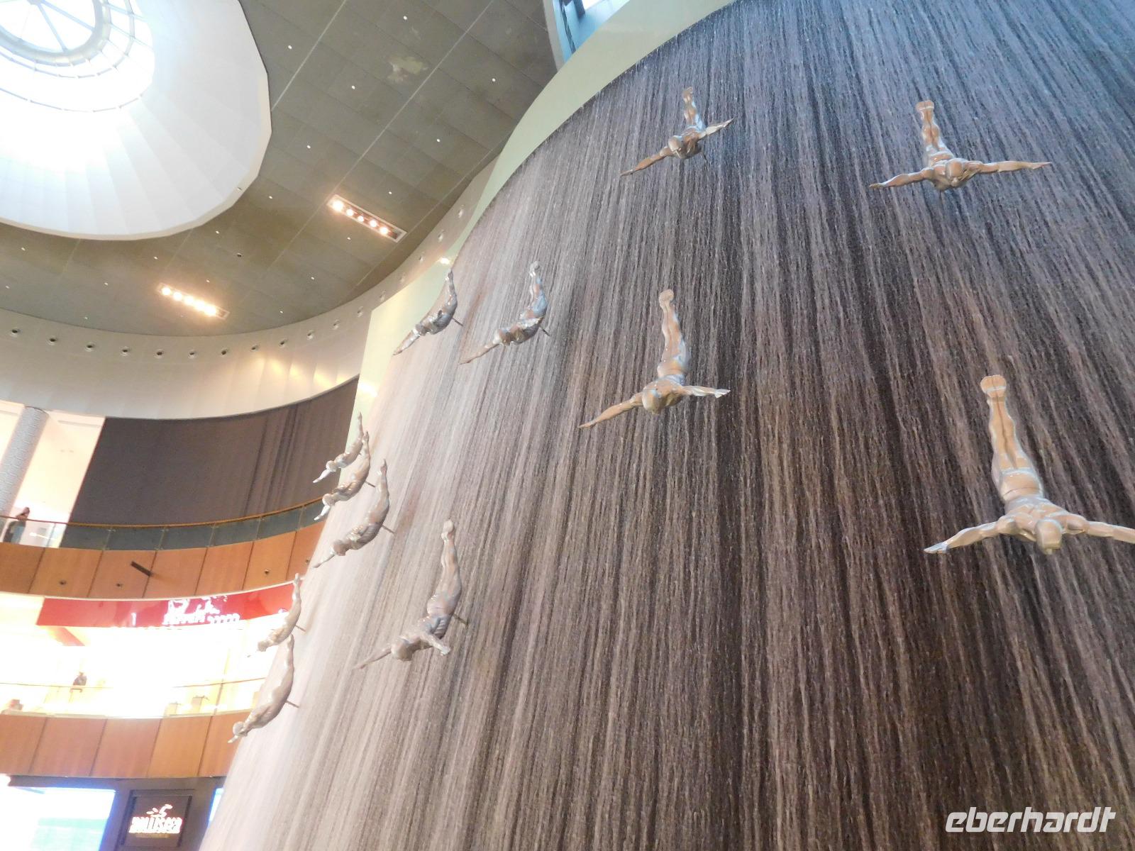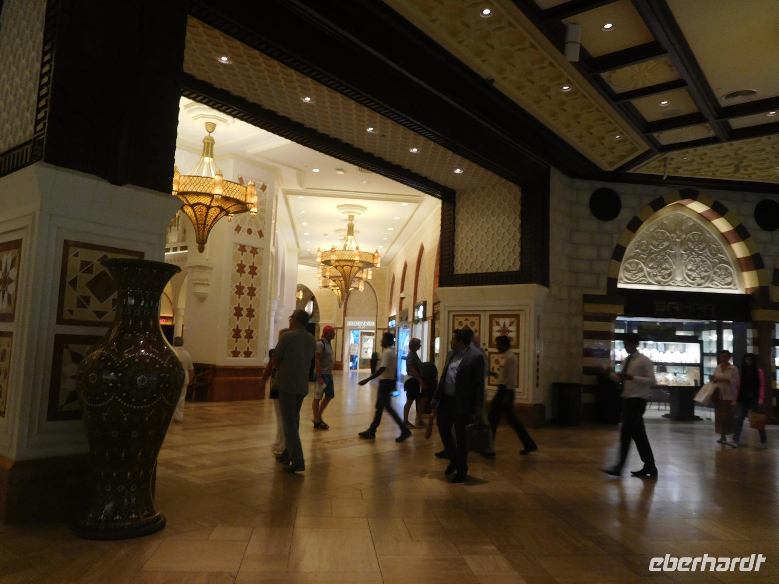 Dass es in Dubai überall etwas zu entdecken gibt, bewies uns Anja mit einer Führung durch die Dubai Mall, einer der größten Einkaufszentren weltweit. Wo sonst sieht man hunderte bunte Regenschirme, eine 24 Meter hohe Wasserkaskade, ein Dinosaurierskelett, eine Eislaufbahn und ein riesiges Aquarium mit Rochen und Haien?