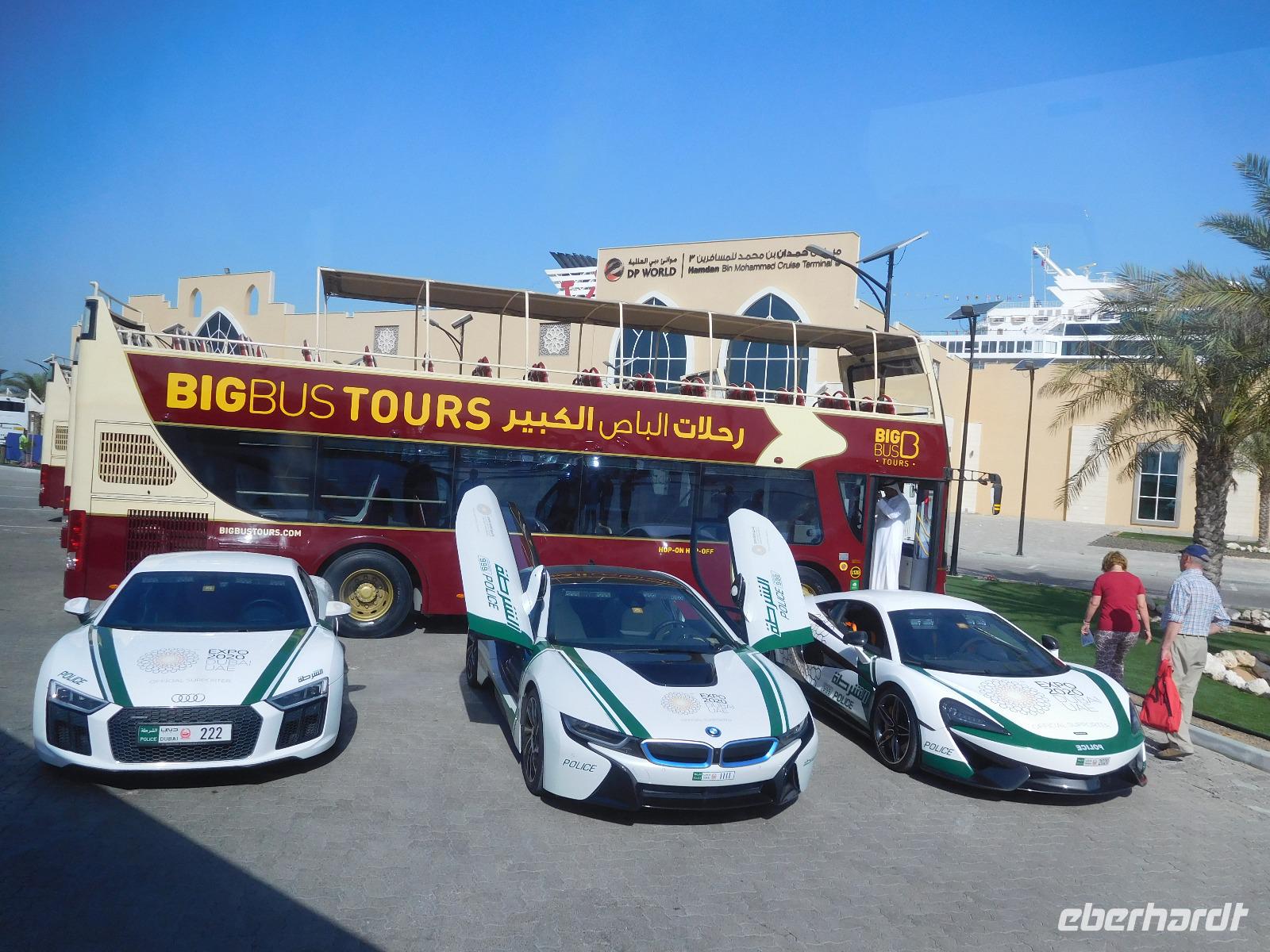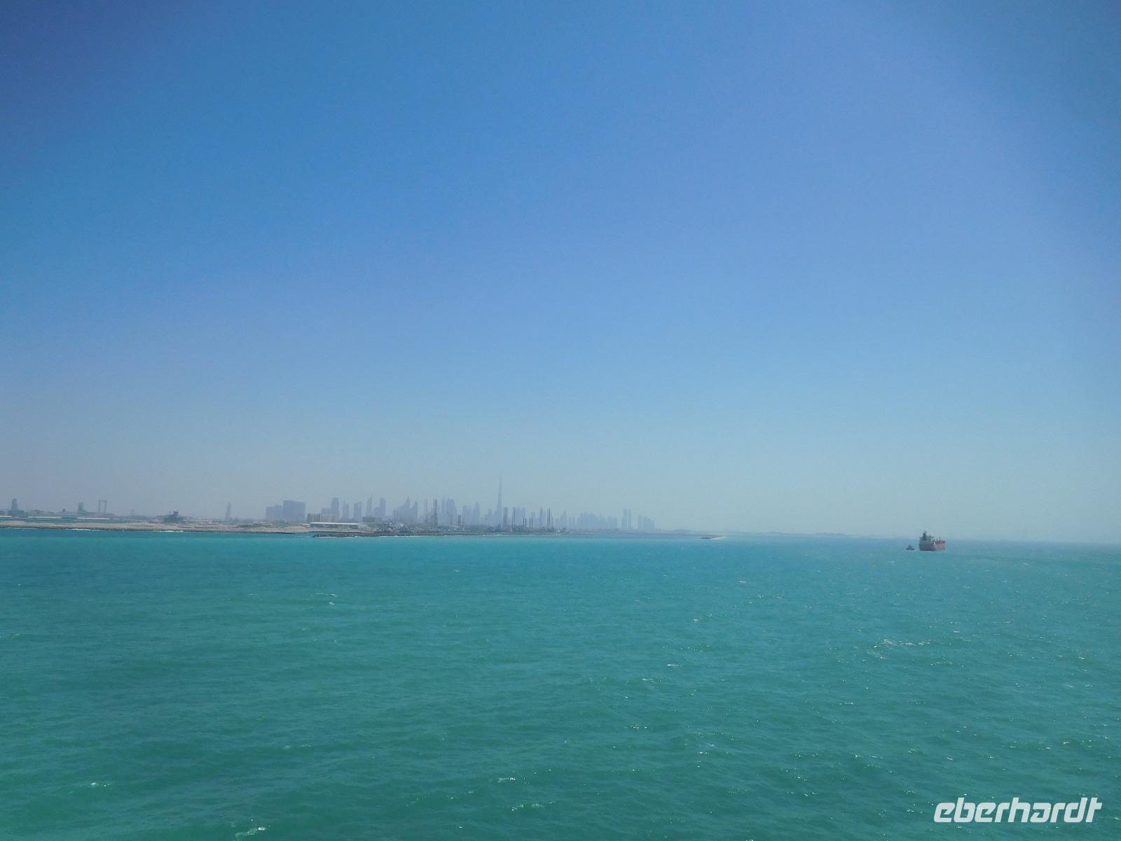 Den Tag konnten wir noch einmal an Bord genießen, bevor wir am frühen Nachmittag in Dubai anlegten. Nach etwas langwierigen Einreisekontrollen hatten wir wieder festen Boden unter den Füßen und wurden herzlich von unserer Reiseleiterin Anja begrüßt. Gemeinsam fuhren wir zur ersten weltbekannten Sehenswürdigkeit: Das 6-Sterne-Hotel Burj Al Arab, bei dem wir beim kurzen Fotostopp den feinen Sandstrand an unseren Füßen genießen konnten.