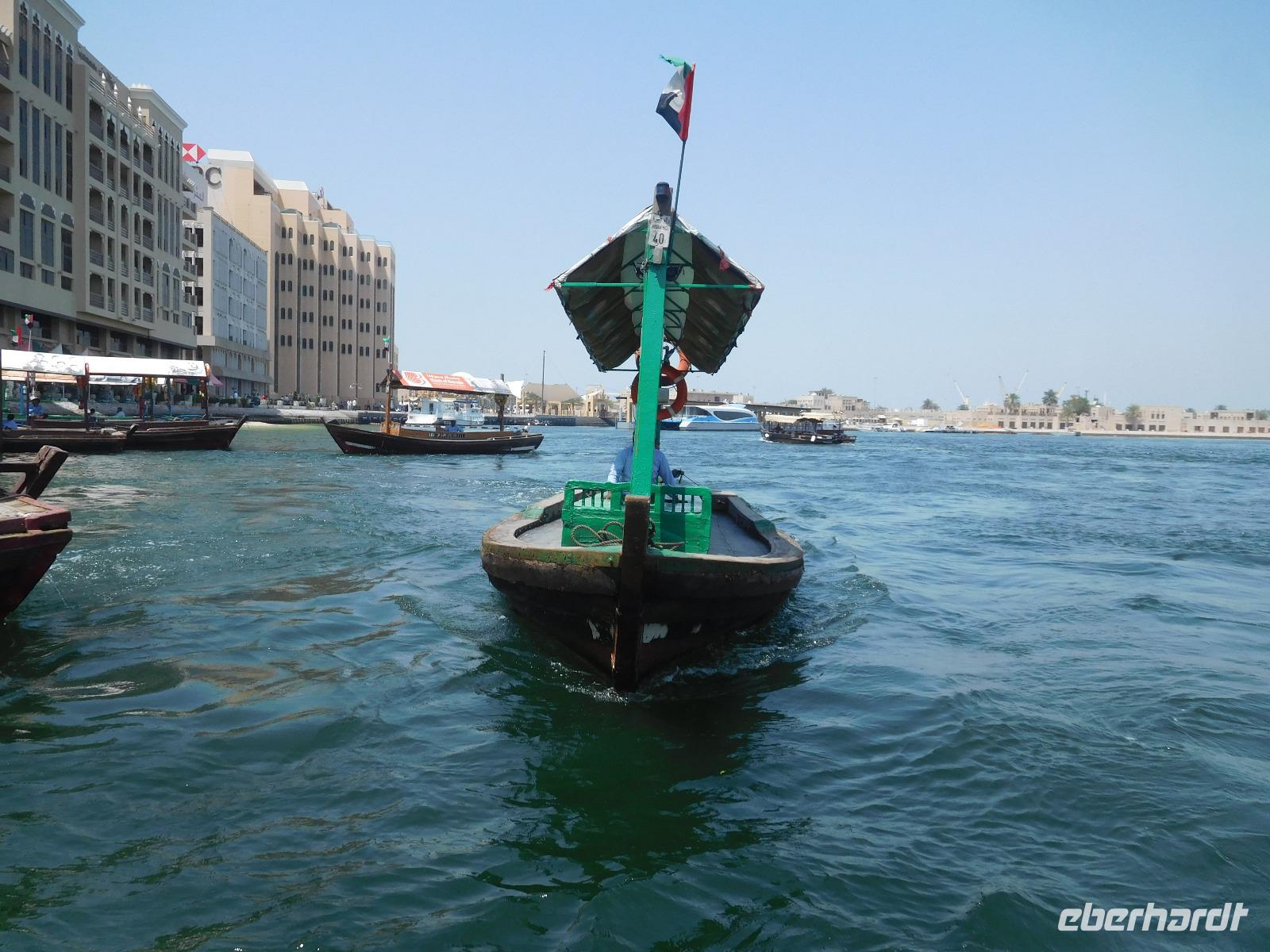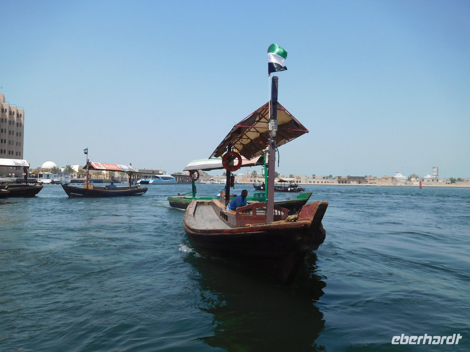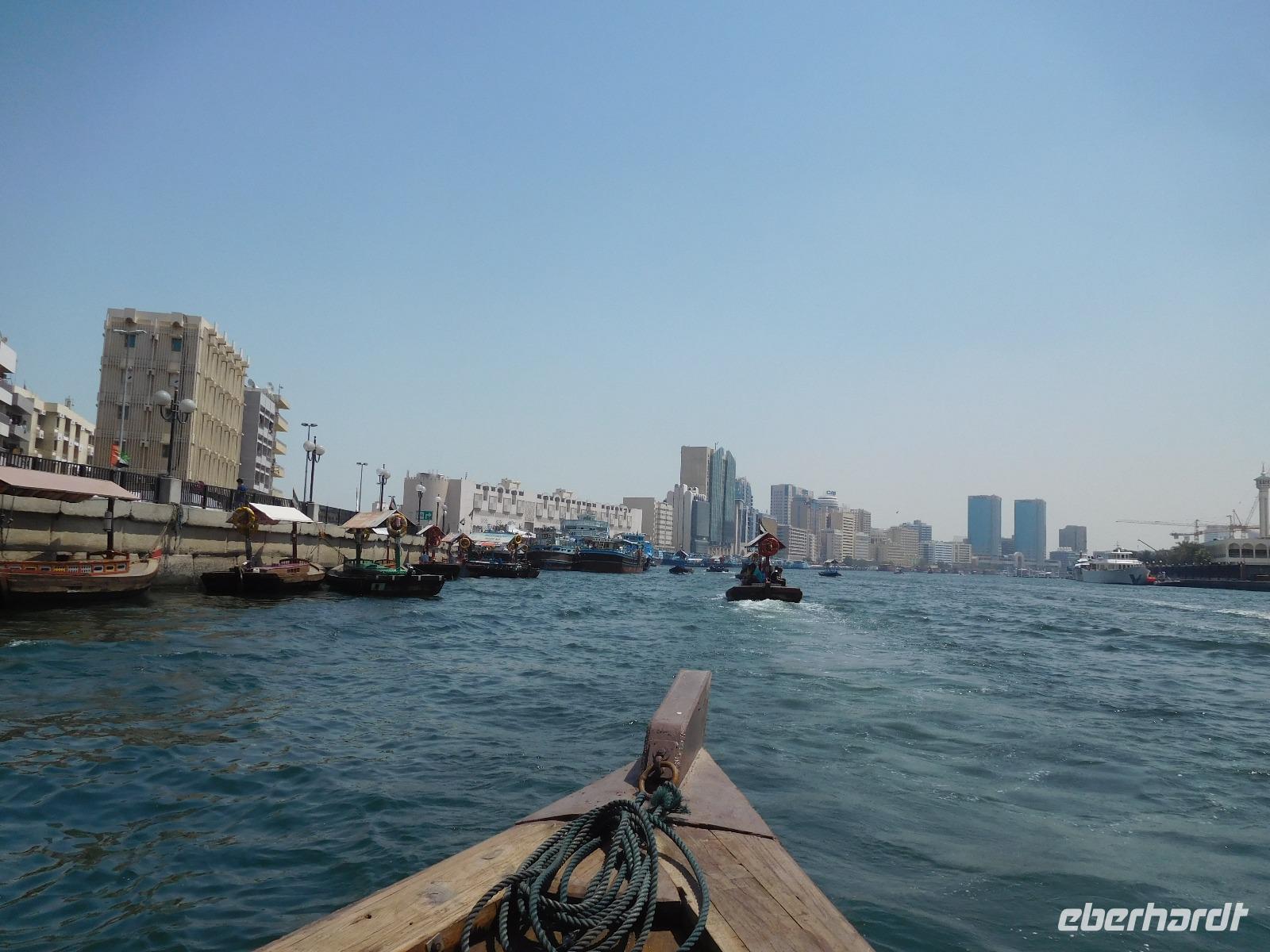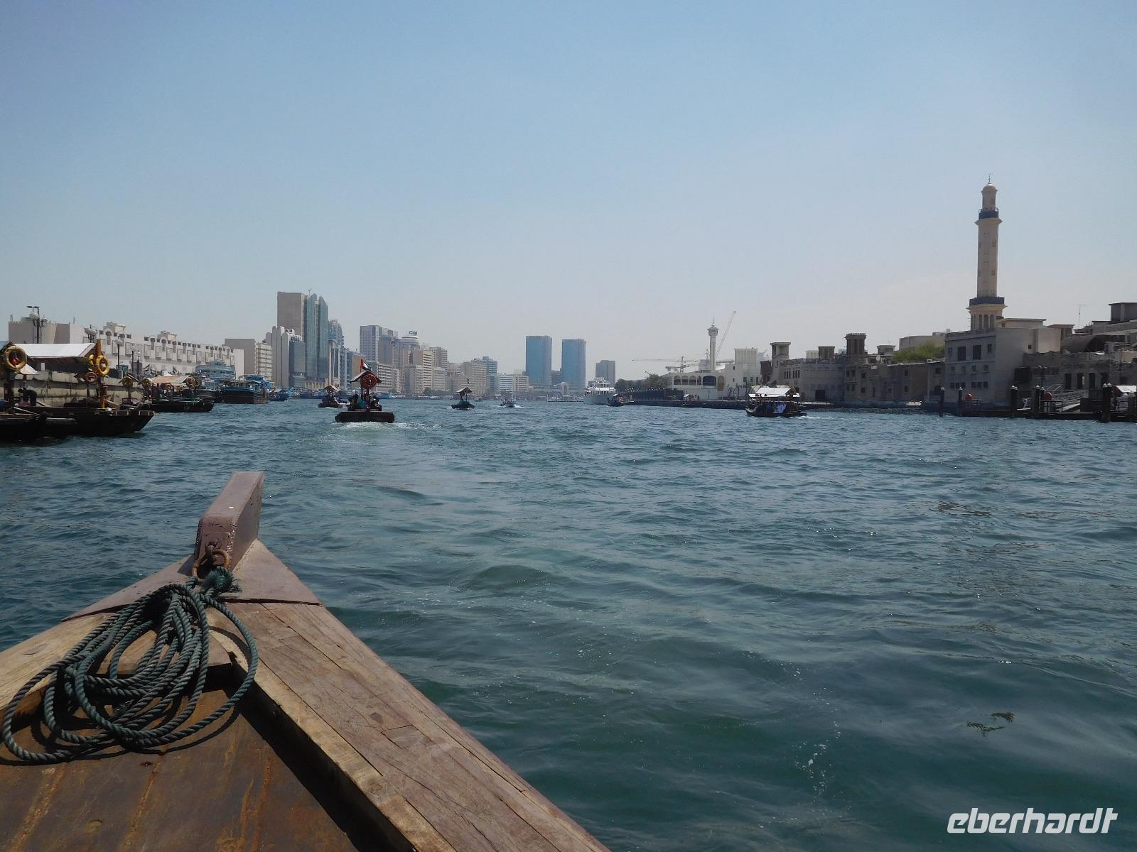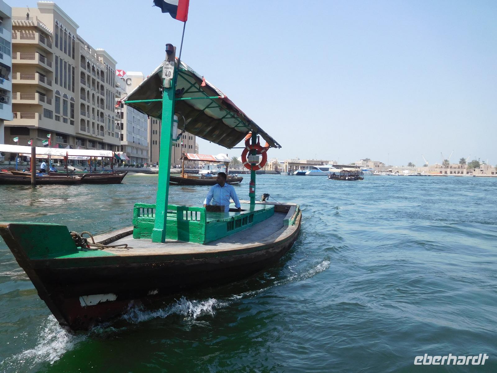 Mit unseren Koffern im Schlepptau zogen wir los, um erst im Dubai Museum alles über die Geschichte des Wüstenstaats zu erfahren und dann im alten Dubai die verschiedenen Souks, vom Stoff- zum Gewürz- bis zum Goldsouk kennen zu lernen. Farben über Farben begegneten uns da auf unserem Spaziergang durch die Stadt. Wie erholsam waren da die Fahrten mit dem traditionellen Fährboot, der Dhau, über den Dubai Creek!