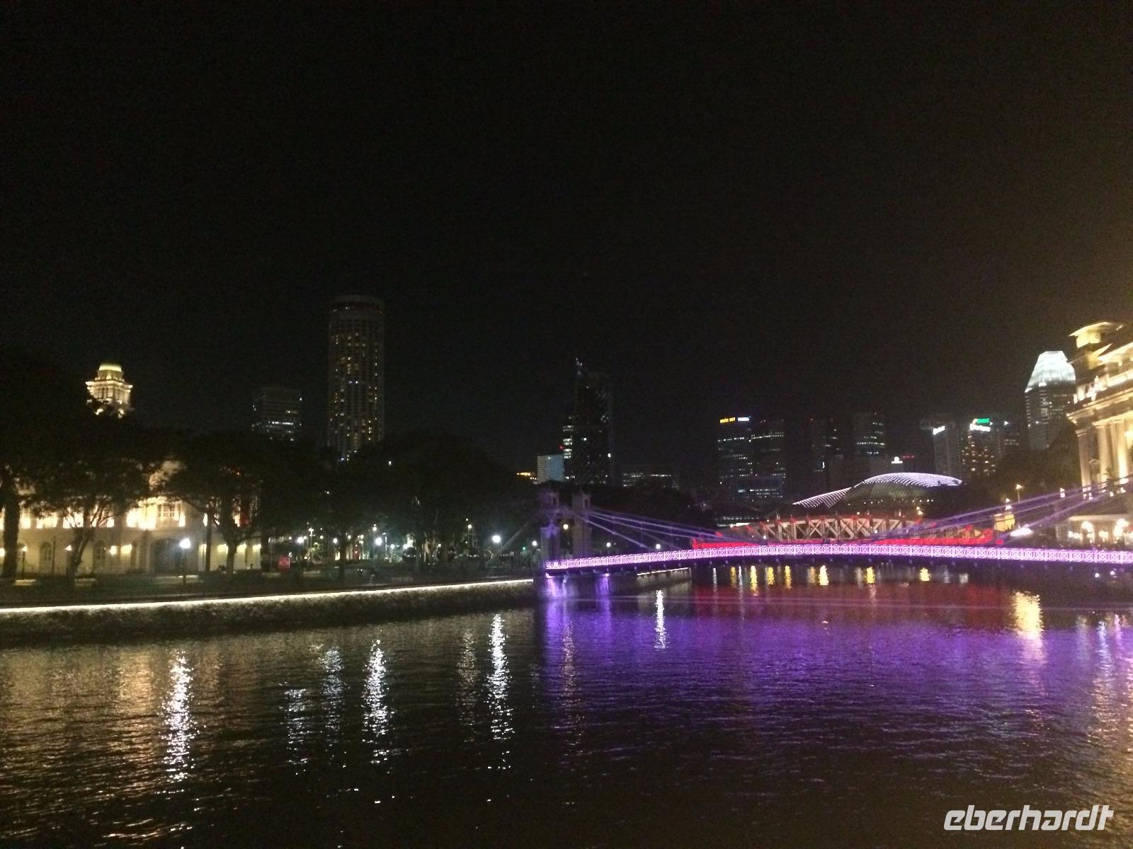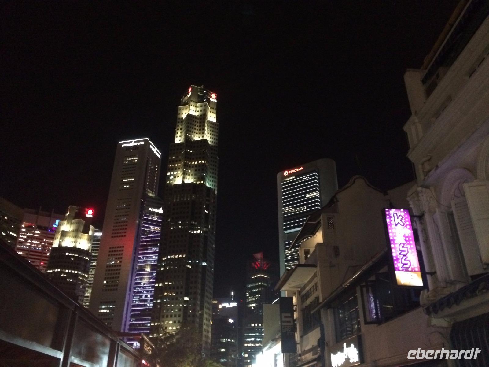 Am Abend wartete ein weiterer Höhepunkt auf uns: Nachdem wir uns beim Abendessen mehr oder minder erfolgreich am eleganten Chili-Krabben-Essen versucht hatten, stiegen wir mit Einbruch der Dunkelheit auf ein typisches Bum-Boat und erlebten die Lichterstadt Singapur vom Fluss aus. Die anschließende Gelegenheit, das spektakuläre Nachtleben Singapurs kennen zu lernen, ließen sich viele nicht nehmen.
