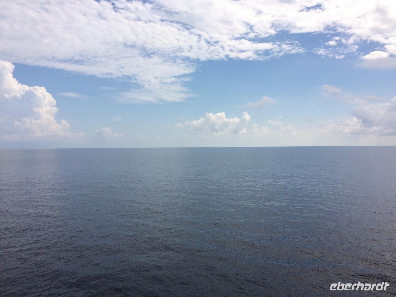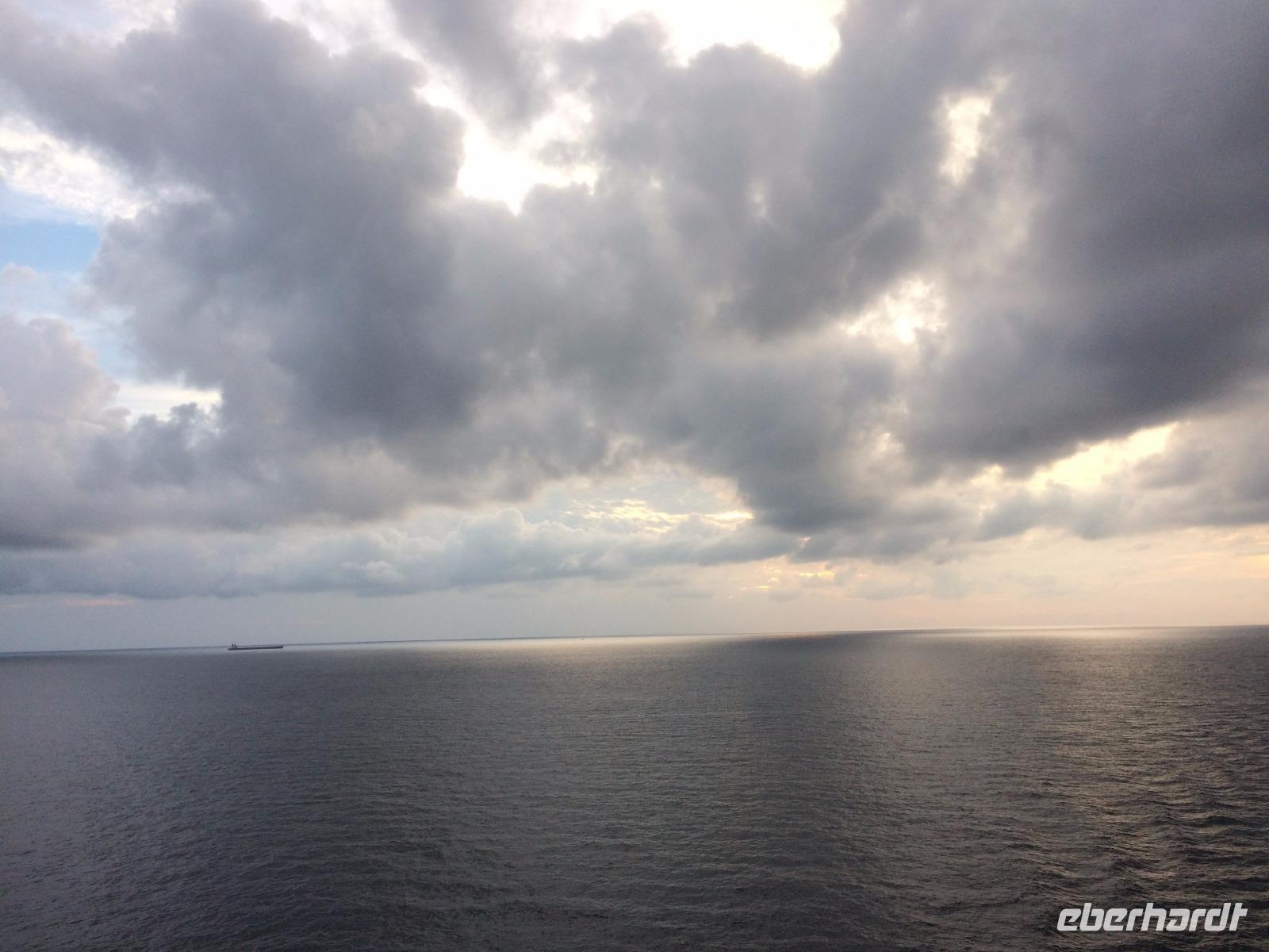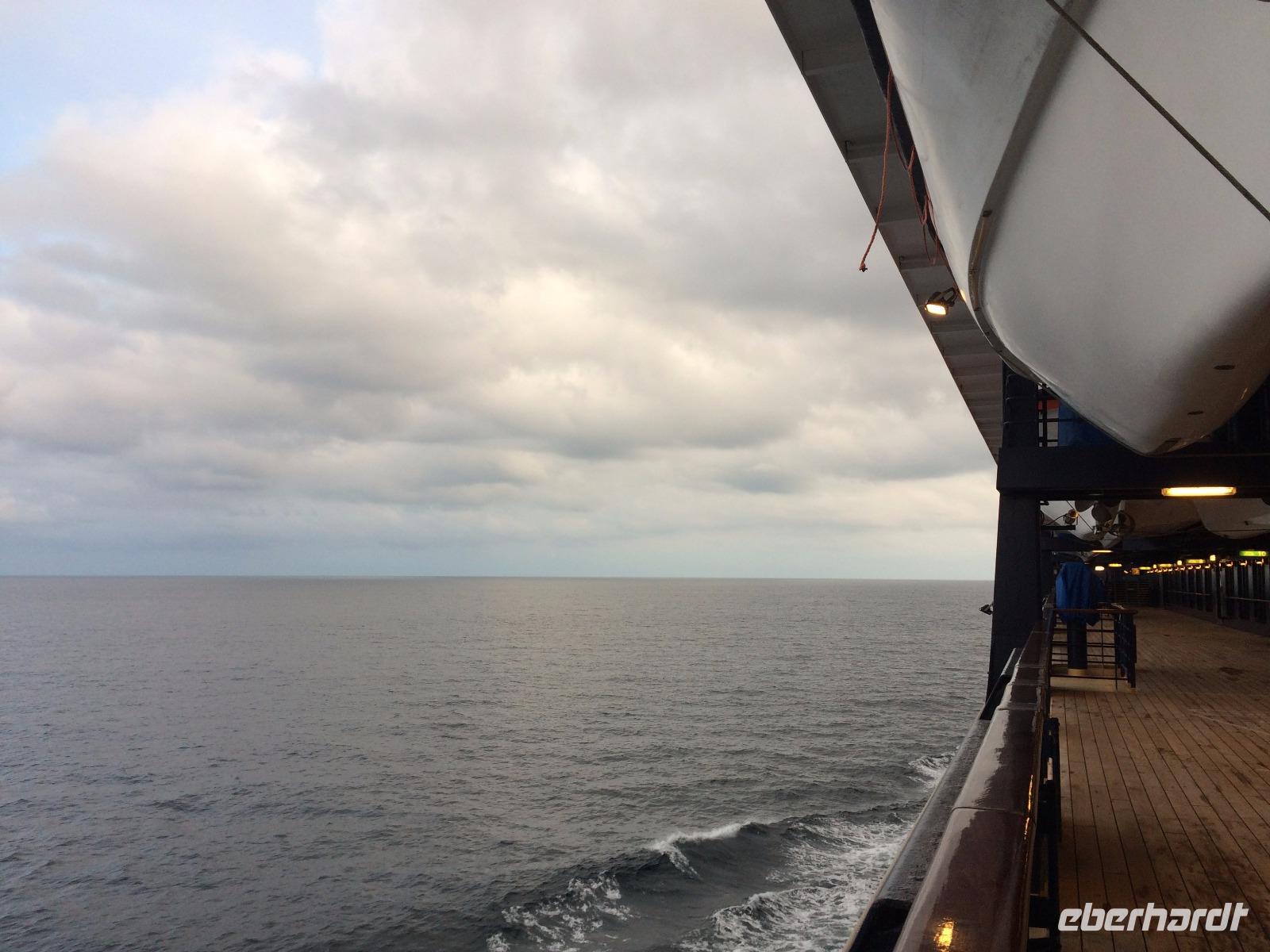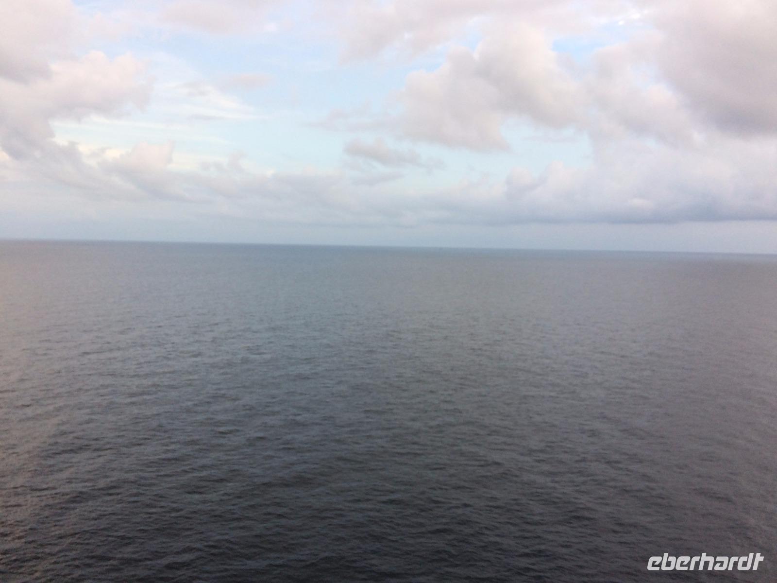 Um unser Schiff regte sich mittlerweile stärkerer Wind, trotzdem wiegte uns der Ozean eher sanft und bot uns ein Farbspektrum von dunkelblau bis diamantgrau.