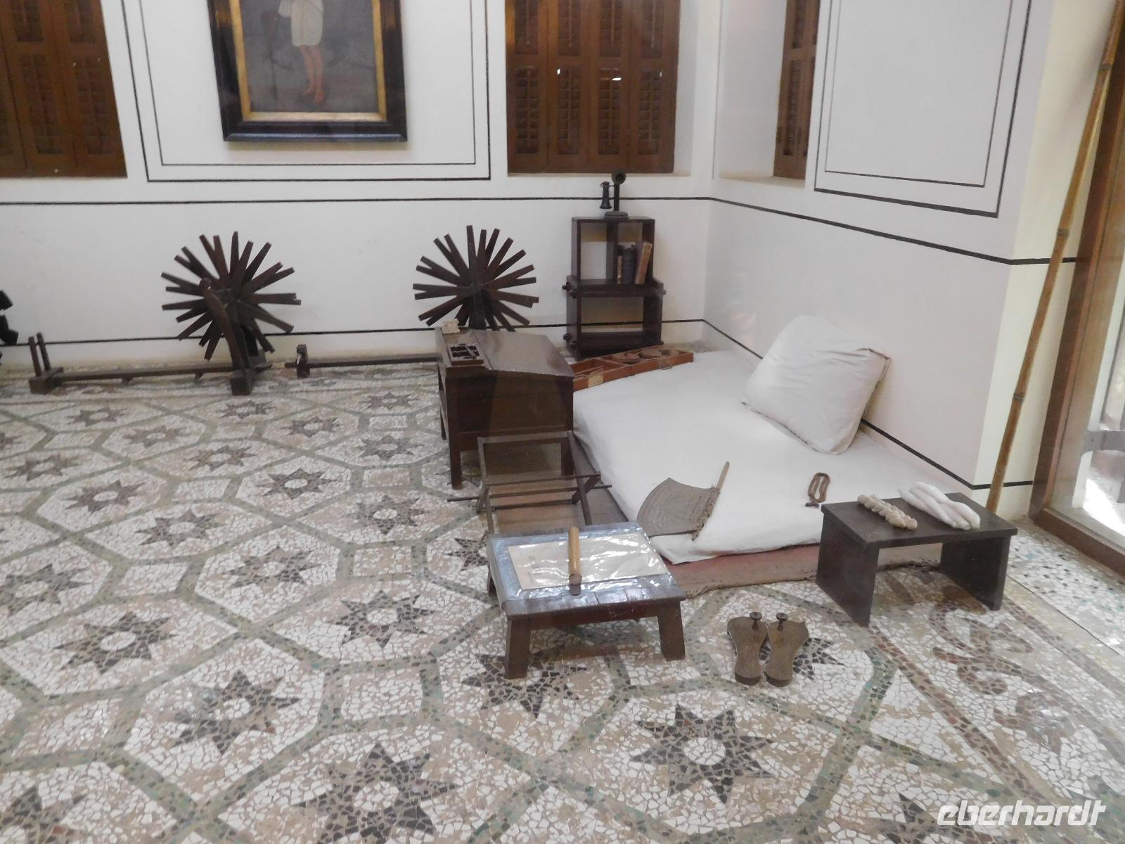Der nächste Stopp galt niemand geringerem als dem indischen Nationalheld Mohandas Karamchand Gandhi. Sein ehemaliges Wohnhaus wurde zum Museum ausgestaltet, in dem Besucher nicht nur eine umfassende Bibliothek, Briefe und Zitate von und über Gandhi findet, sondern auch sein Zimmer mit Schlafstätte und Spinnrad.