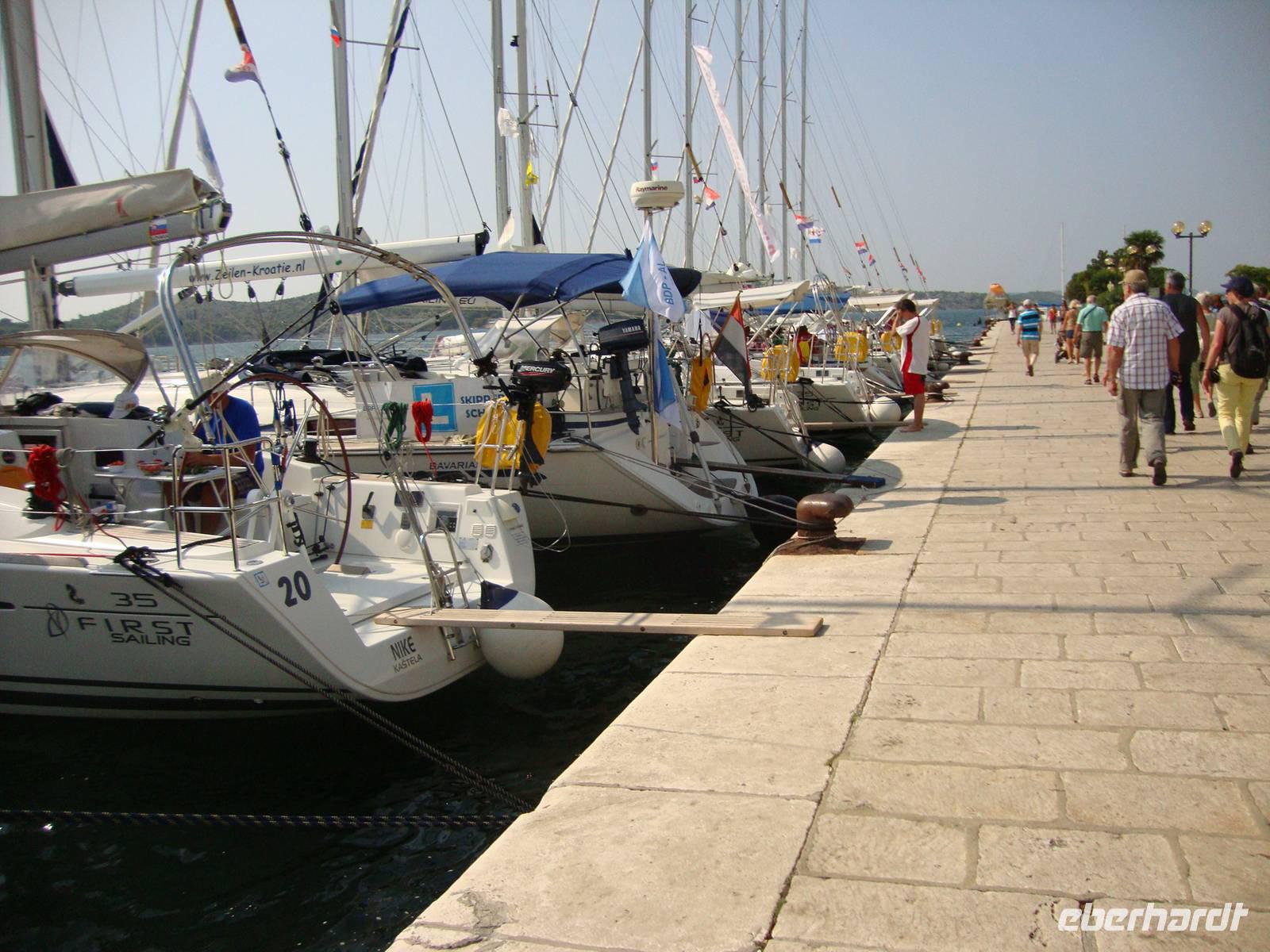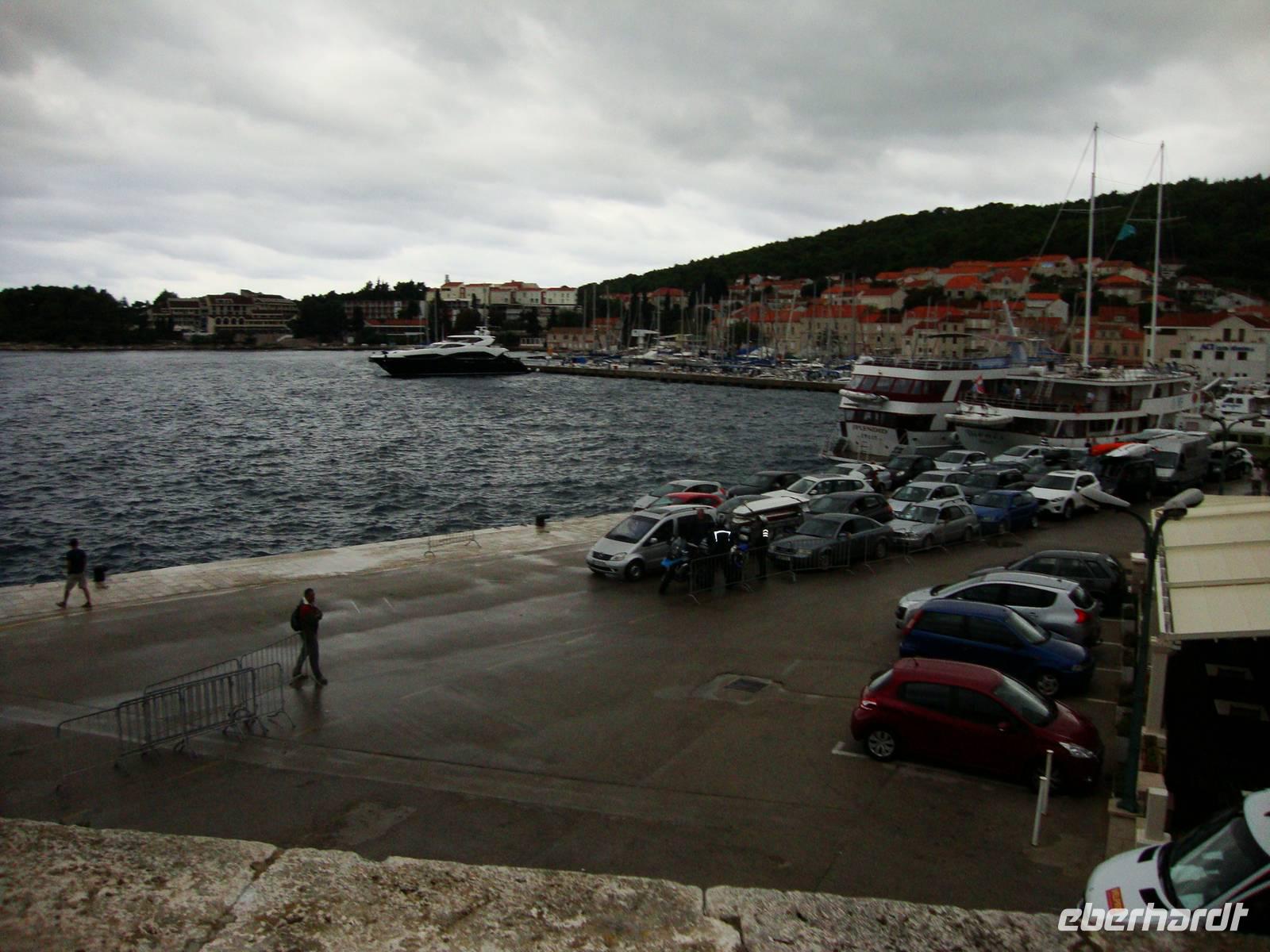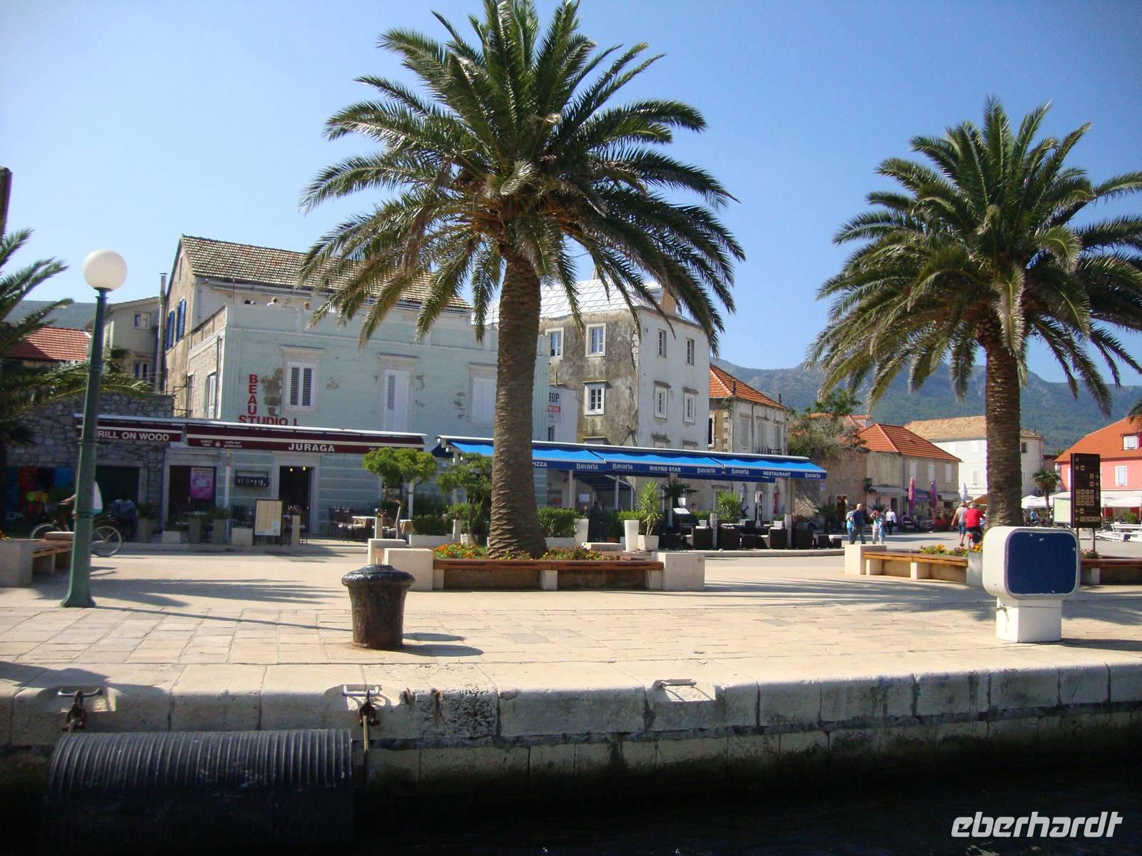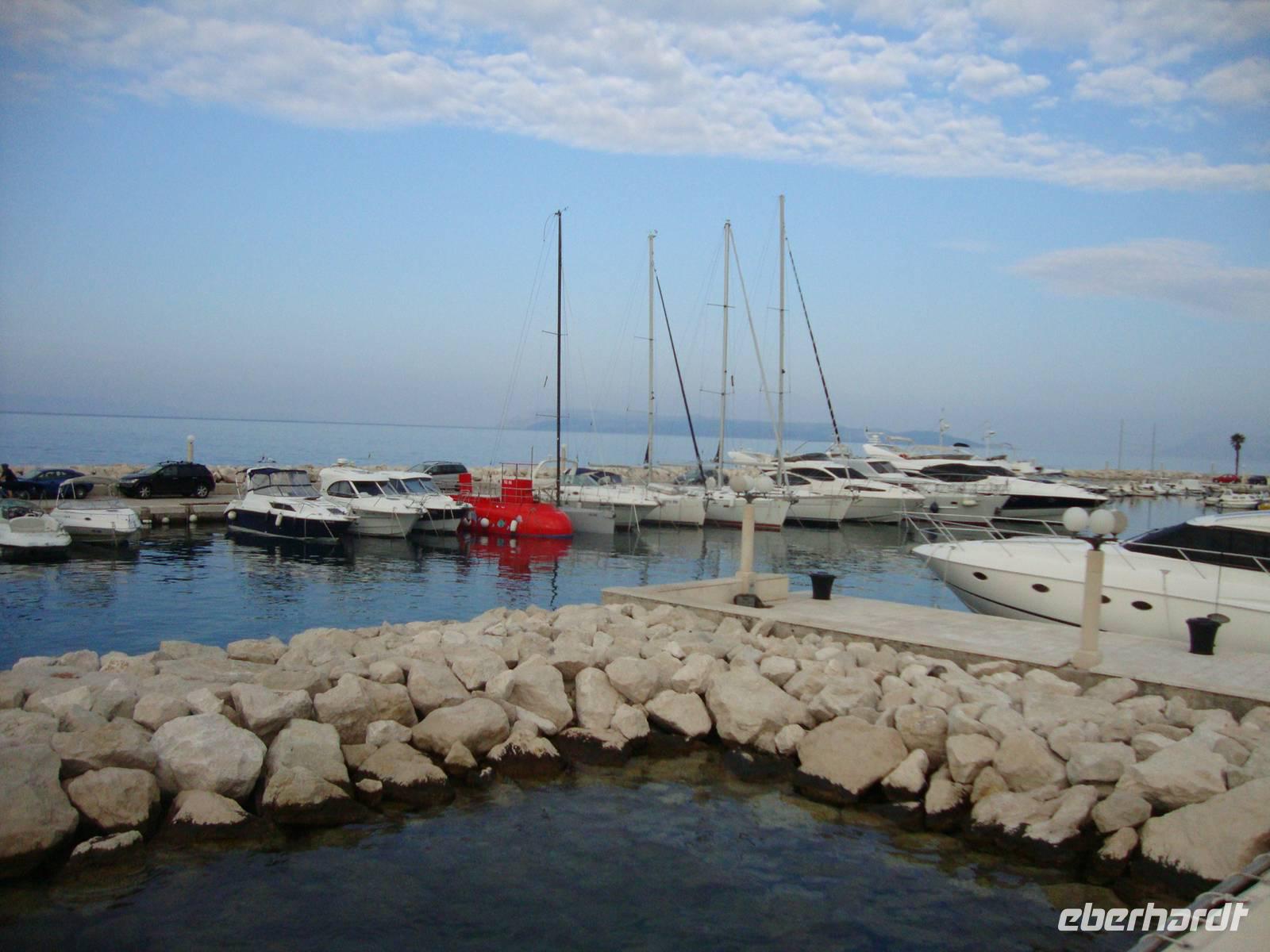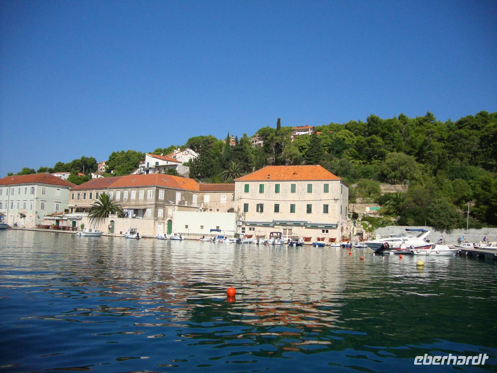 Nach dem etwas zeitigerem Frühstück laufen wir zum Hafen, wo das Ausflugsschiff "Vittorio" auf uns wartet. Wir nehmen unsere reservierten Plätze ein und die Fahrt kann beginnen. Zuerst nimmt der Kapitän Kurs zur Insel Hvar, aber vorher werden alle Gäste mit einem Grappa begrüßt. Die Insel gilt als die schönste der dalmatinischen Inseln und wird jedes Jahr von Urlaubern nahezu gestürmt. In Jelsa, einem kleinen Badeort, machen wir Station. Sonnenüberflutet zeigt sich das kleine Städtchen und wir sehen ein Wasserflugzeug landen und wieder starten. Zur Mittagszeit gibt es frisch gegrillte Makrele, Weßbrot, Tomaten -und Gurkensalat, alles vom Koch, einem Meister seines Faches, frisch und appetitlich zubereitet. Die Möwen erhalten während der Fahrt die Gräten, wie man auf den Bildern sehen kann. In Bol, auf der Insel Brac, haben wir den nächsten Landgang. Die meisten zieht es zum "Goldenen Horn" (Zlatni Rat). Auf einer schattigen Promenade erreicht man diesen Feinkiesstrand nach einer halben Stunde Fußweg. Auf Brac wird der marmorähnliche Kalkstein gebrochen, der für den Bau des "Weißen Hauses" in Washington ebenso verwendet wurde wie für Paläste Venedigs und den Berliner Reichstag. Bei herrlichstem Sonnenschein fahren wir zurück nach Tucepi und legen am frühen Abend im Hafen an. Ein erlebnisreicher Tag geht zu Ende.
