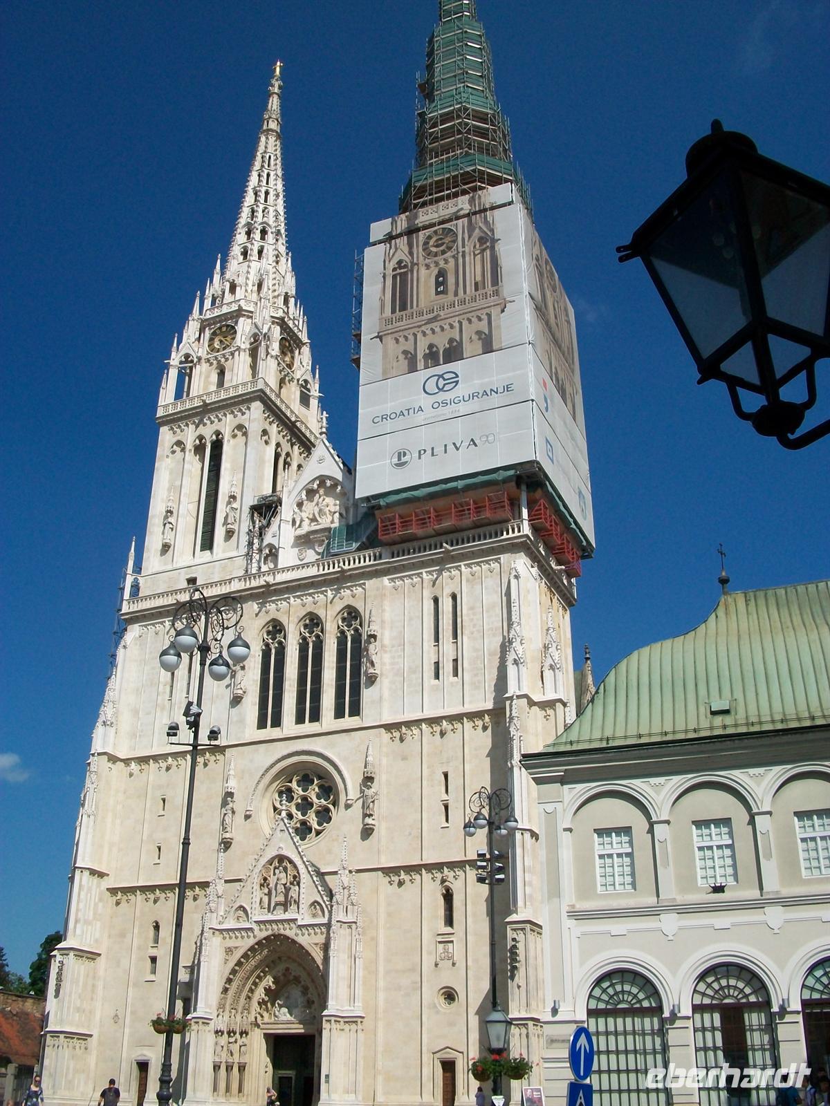 Gegen eins kommen wir an unserem Hotel „International“ an, einem sehr schönen und modernen Haus. Mein Kollege Milovan, Stadtführer von Zagreb, ist sehr pünktlich und 14.00 Uhr kann die Erkundung beginnen. Zuerst unternehmen wir eine kleine Rundfahrt um uns einen Überblick zu verschaffen. Wir sehen das quirlige Leben dieser europäischen Hauptstadt und fahren schließlich einen Hügel hinauf um denMirogoj- Friedhof einen Besuch abzustatten. Interessant ist hier die Architektur die einst vom wichtigsten Baumeister Hermann Bollé geschaffen wurde. Dann geht es hinunter zur Kathedrale, Milovan zeigt uns so manch interessantes Kleinod dieser Kirche in deren Inneren es angenehm kühl ist.