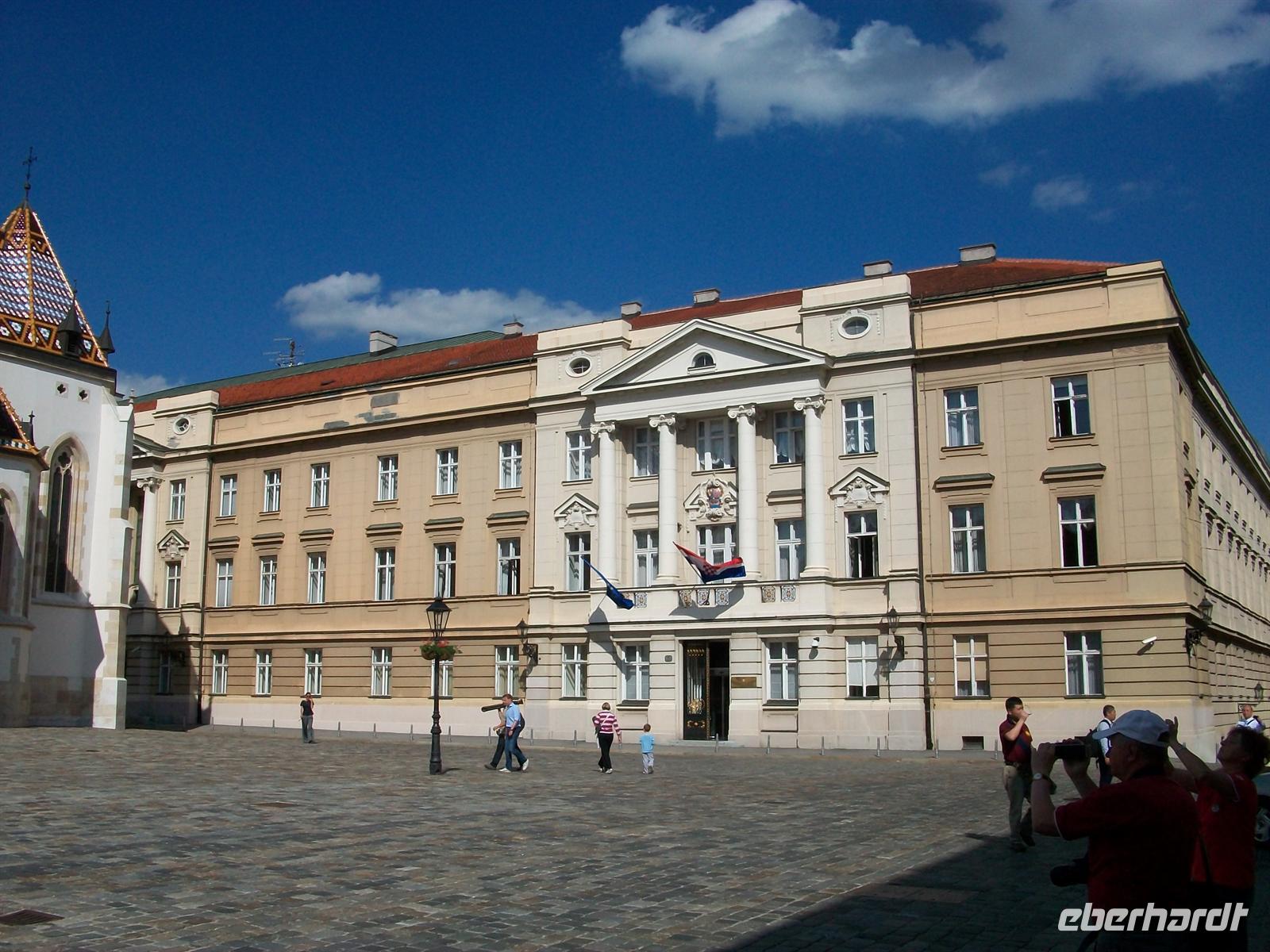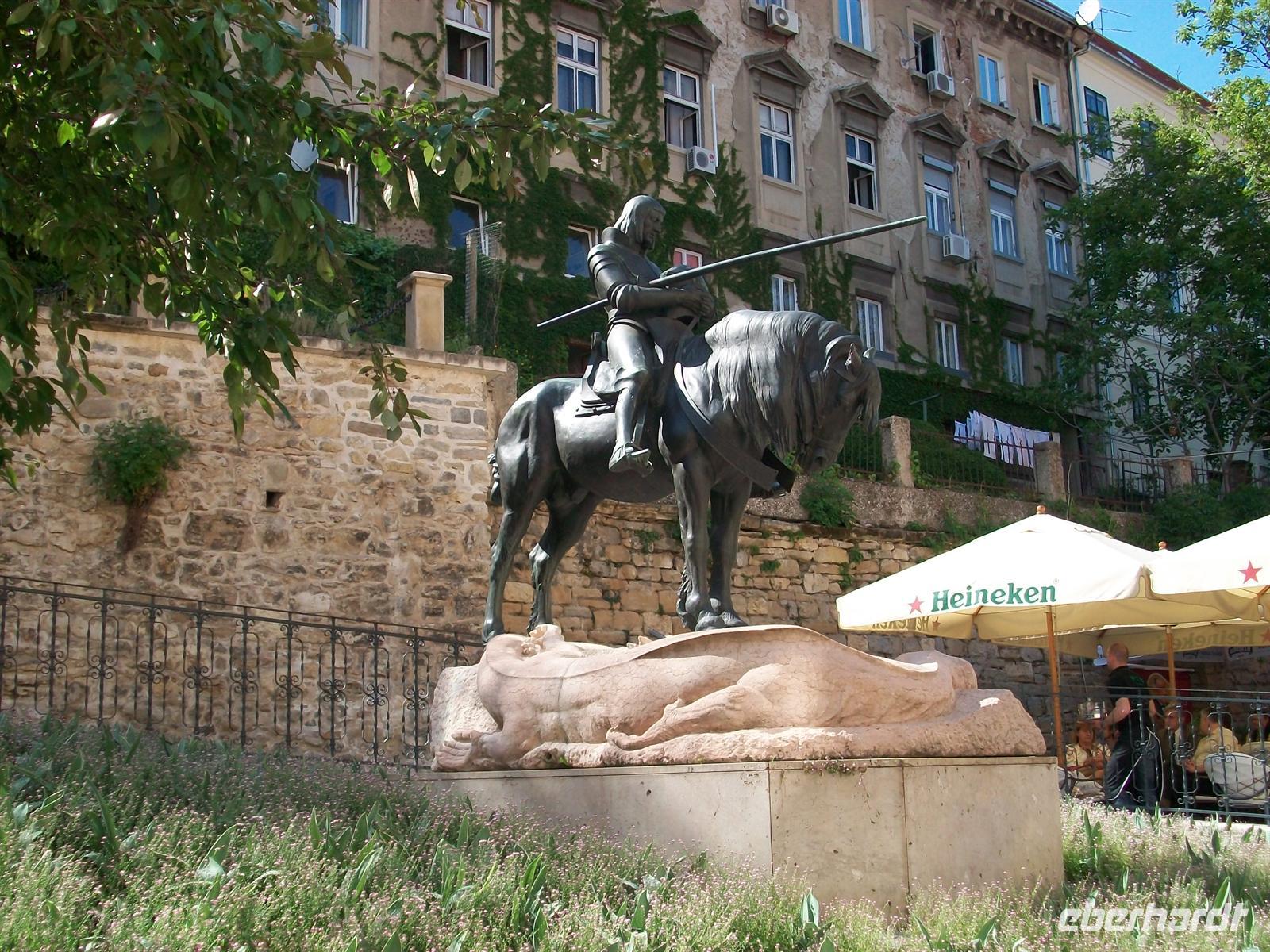 Noch ein paar Schritte und uns liegt Zagreb zu Füßen; am Aussichtspunkt lassen wir den Blick über die Häuser der Stadt schweifen. Am Horizont brodeln mächtige Haufenwolken, die angenehm wärmende Sonne trotzt aber noch der Wolkenfront. Nachdem wir unten am Jelaiplatzangelangt sind verabschiedet sich Milovan von uns, nun beginnt die Freizeit. Jeder kann nach Herzenslust bis 18.00 Uhr seinen Interessen nachgehen; Zagreb hat einiges zu bieten.
