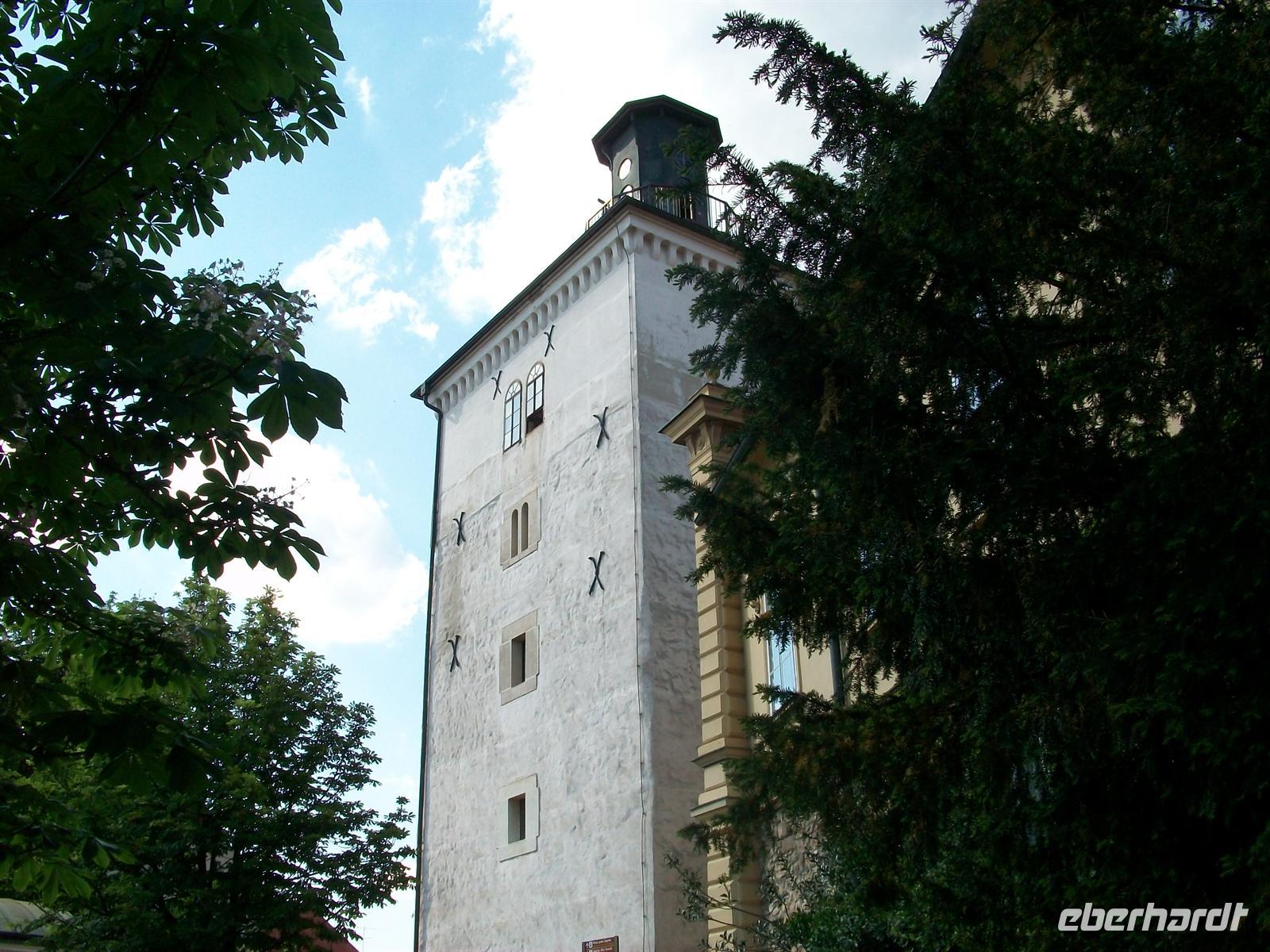 An diesem Nachmittag hat sich die Sonne zu ihrer Höchstform aufgeschwungen. Es ist sehr warm geworden und eine gewittrige Schwüle liegt in der Luft. Noch sind aber nur harmlose Wolken zu sehen und die Führung durch die Oberstadt kann beginnen.