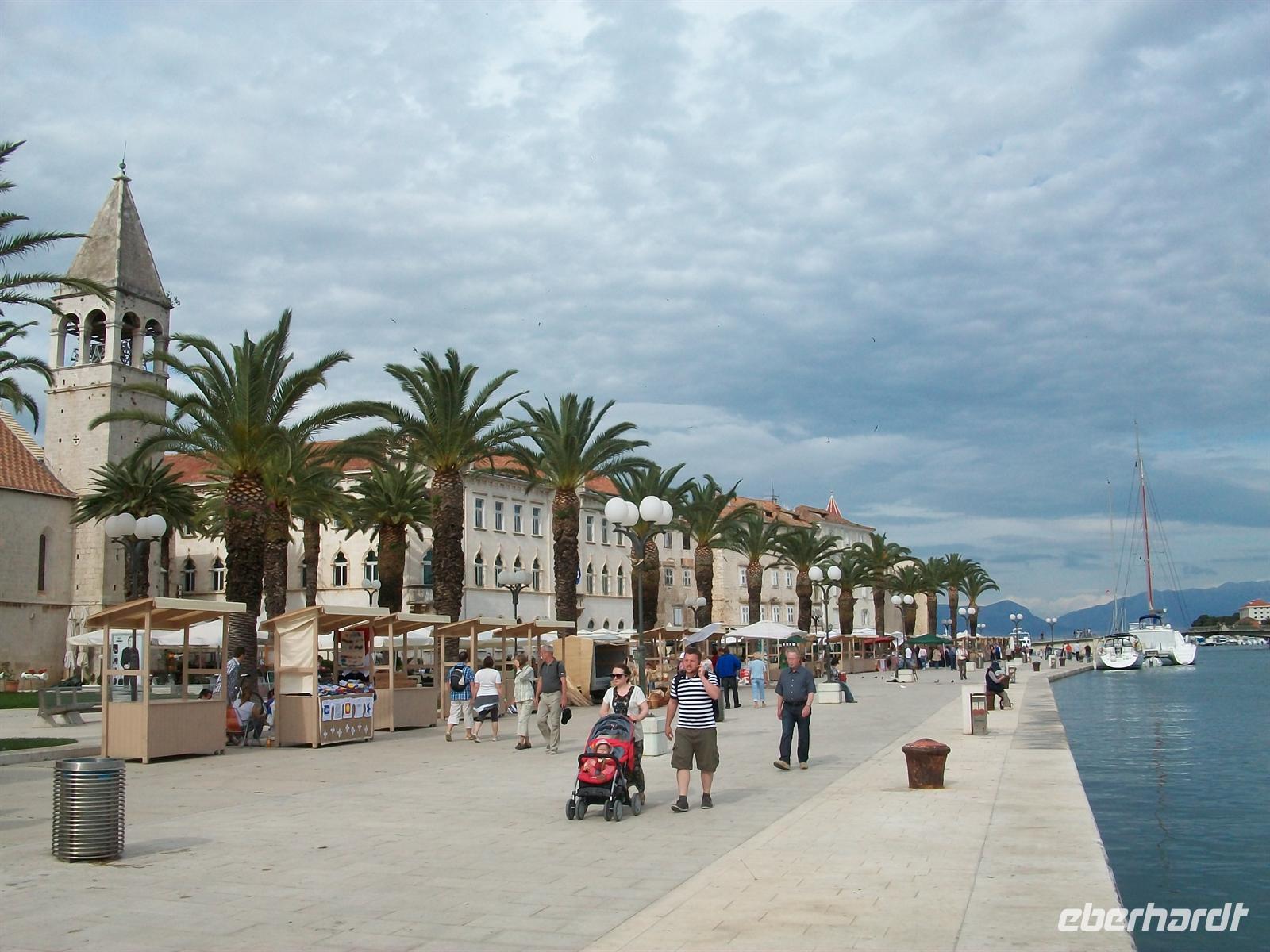 An der Uferpromenade die von der Sonne beschienen wird gibt es zahlreiche Cafés und sie laden zu einem guten Cappuccino ein. Die schönen Stunden verstreichen schnell und nach dem geruhsamen Aufenthalt in Trogir nehmen wir die Fahrt wieder auf und erreichen kurz vor halb sieben unser Hotel in Split.