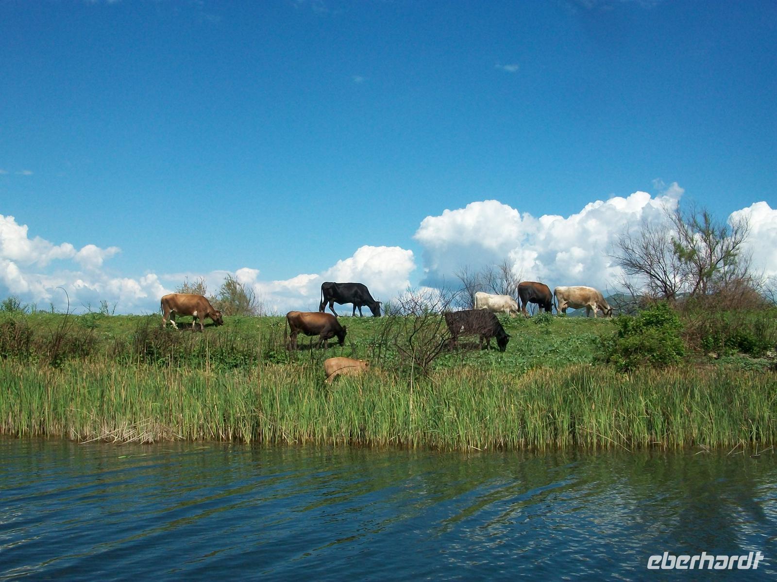 Immer wieder schön ist auch die kleine Bootsfahrt, der Elektromotor macht kaum Geräusch und so können wir in Ruhe die langsam entlangziehende Landschaft genießen.