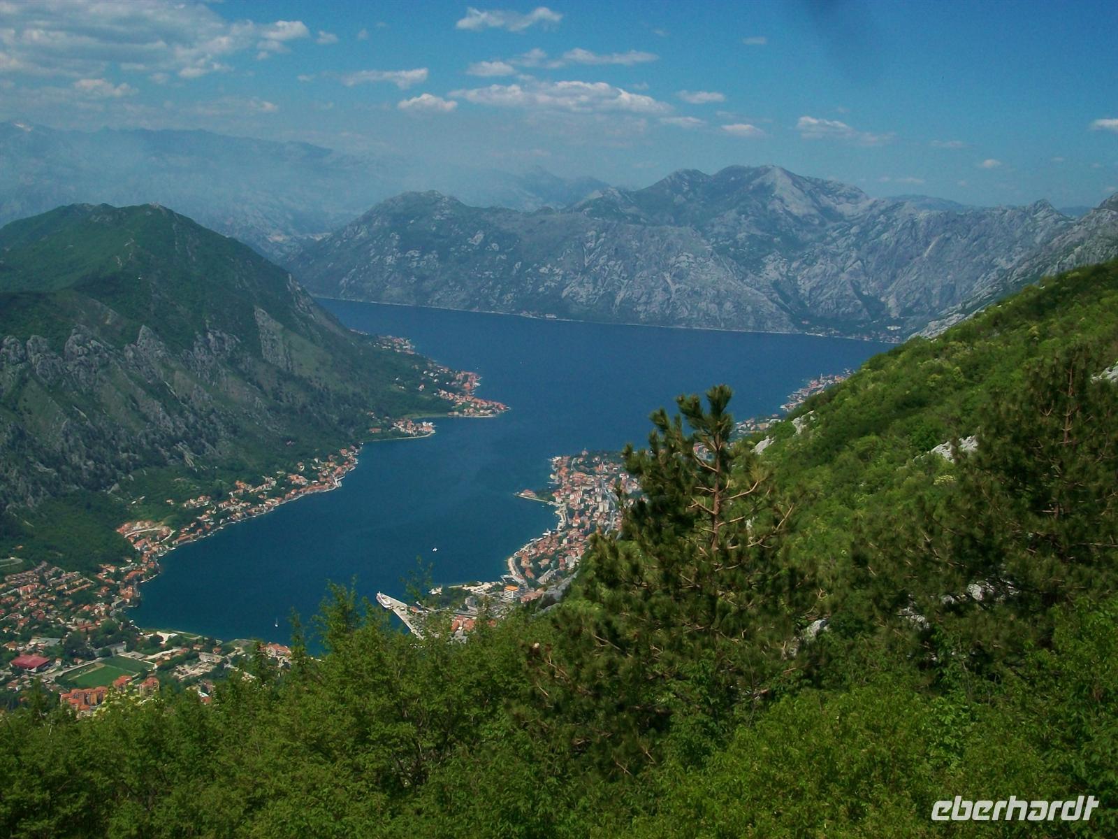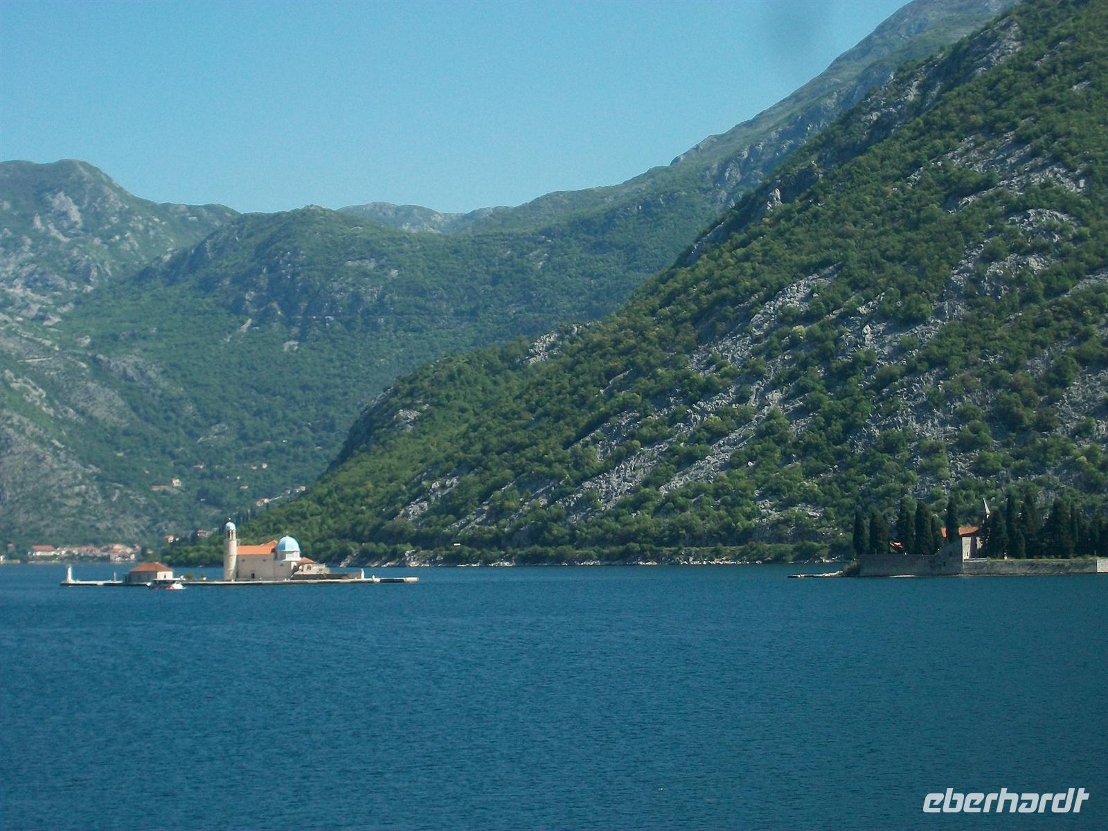 Bald fahren wir in die Bucht von Kotor hinein, vom Wasser steigen die Berge steil an, im Hintergrund ist schon das Loven- Massiv zu sehen, die höchsten Spitzen tragen dort noch