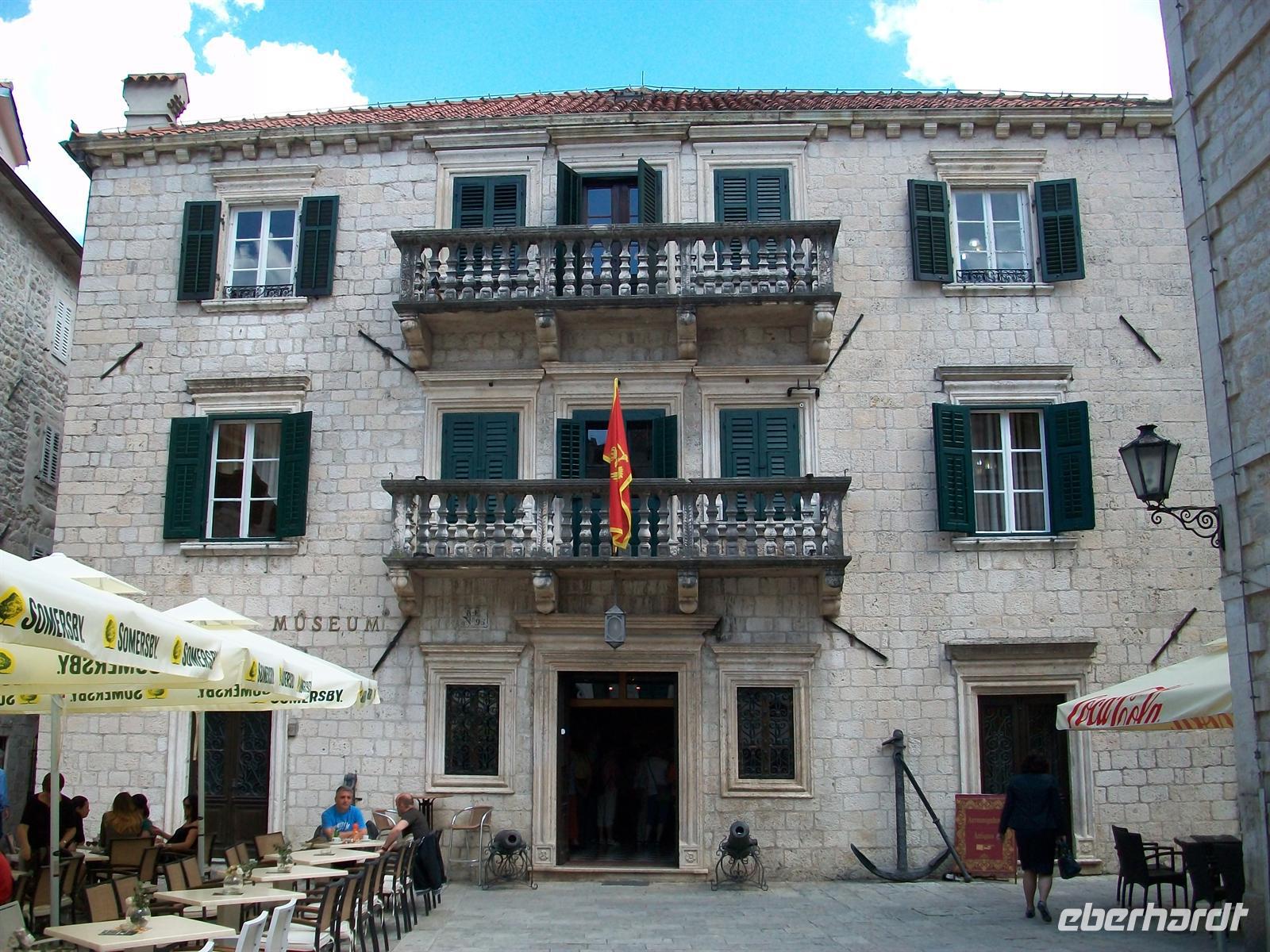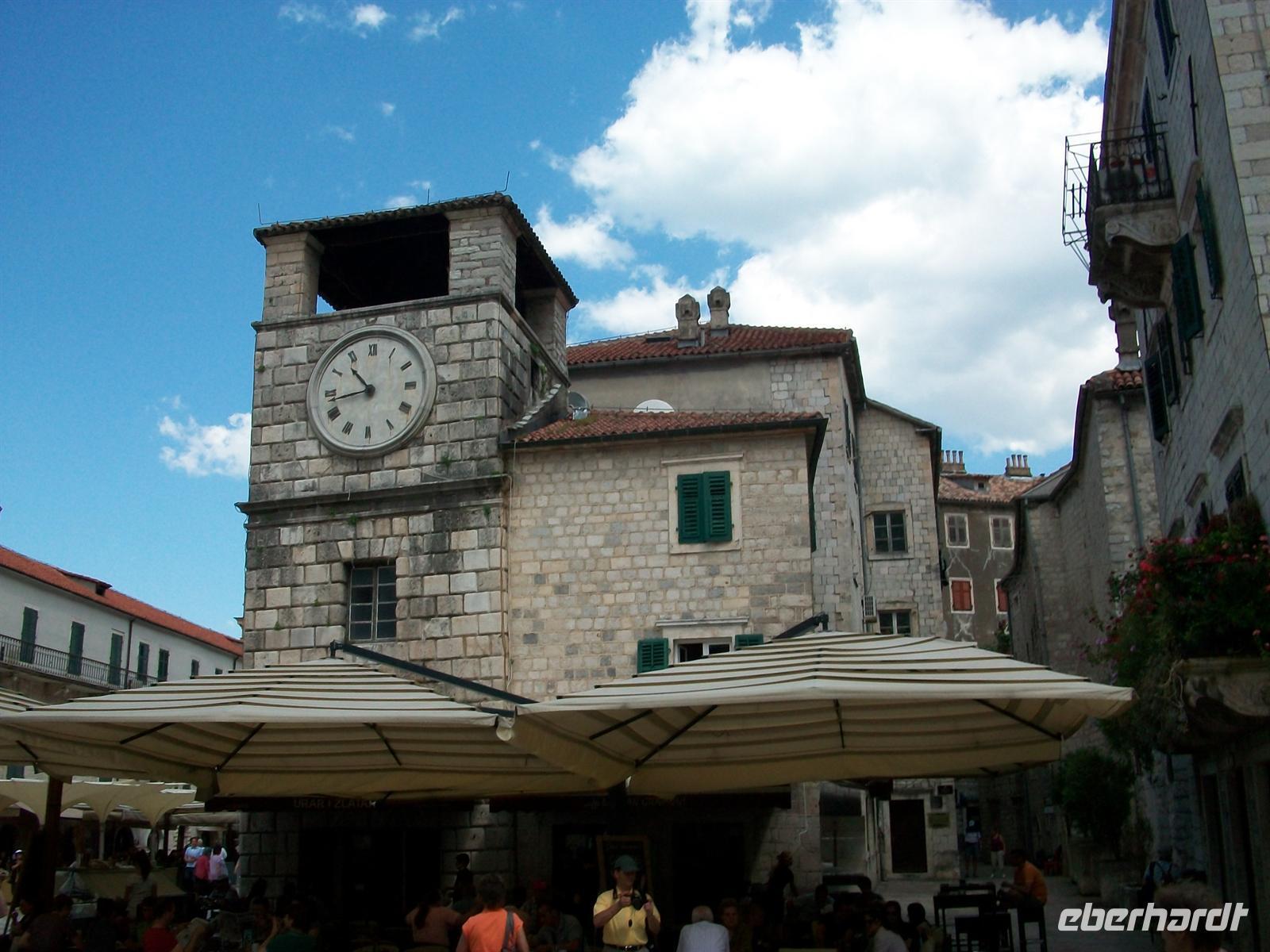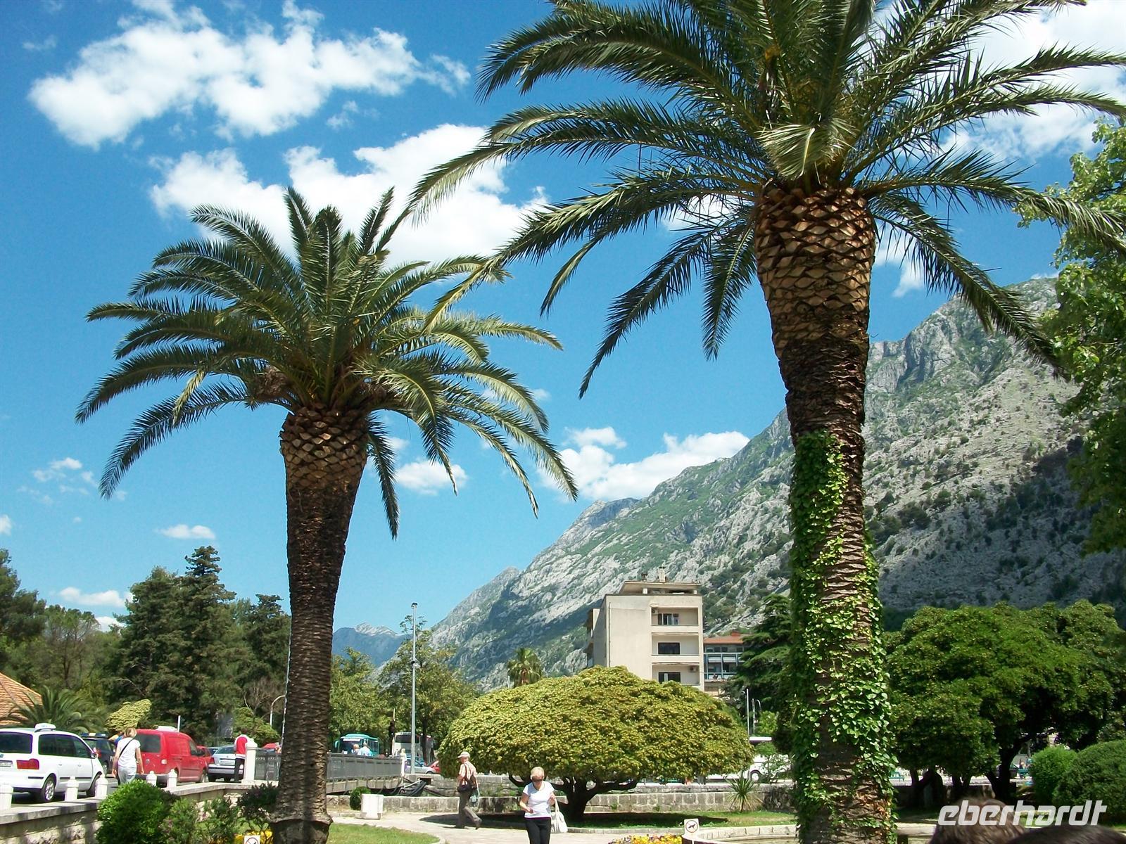 Schneereste, hier unten wird bald das Thermometer auf fast 30 Grad steigen- ein imposanter Kontrast! Um die weitausladende Bucht herum, mit einem schönen Blickauf die zwei Inseln, kommen wir halb elf in der geschichtsträchtigen Stadt Kotor an. Mächtig steigen die Verteidigungsmauern in die Berge hinein, wir halten den Atem an- was für eine Leistung der Baumeister und Arbeiter von damals. Dann führt uns Vesna durch diesen sehenswerten Ort, wir besuchen das Marinemuseum, lauschen den Erklärungen am Hauptpatz und haben im Anschluss noch etwas Zeit für eigene Erkundungen in den schmalen Gassen dieser Stadt.