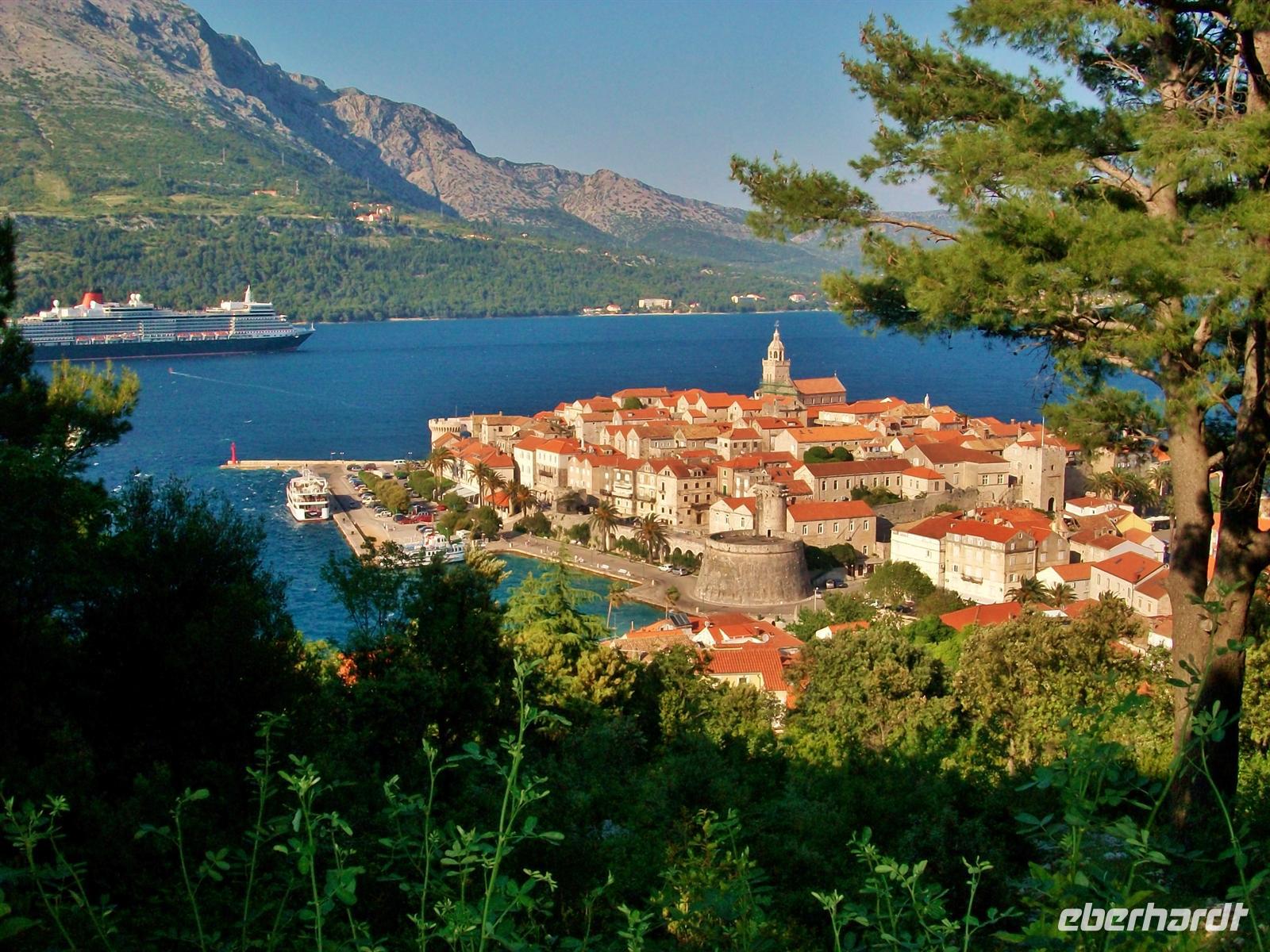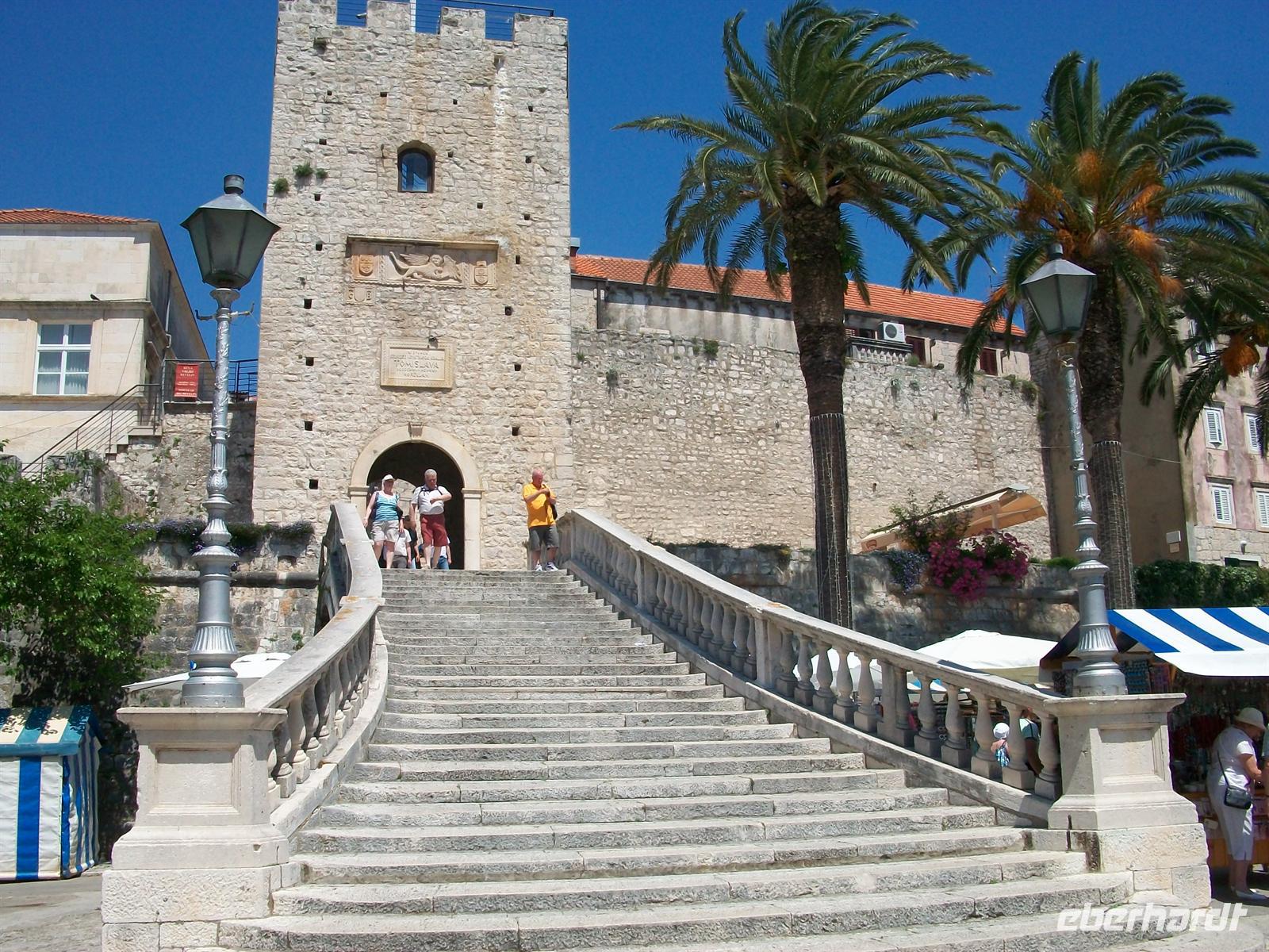 Dann geht es hinunter zur Fähre, sie bringt uns hinüber nach Korula wo wir schon von unserem Stadt- und Inselführer Lujo erwartet werden. Er wird uns mit seiner drolligen Art den Nachmittag begleiten und so manche Anekdote vom Leben der Insulaner zum Besten geben. Dieses mittelalterliche Städtchen ist aber wirklich sehenswert. Auch hier gibt es schmale, enge Gassen durch die einst die Bürger der Stadt gingen, sehenswert sind die Museen die vom Leben aus Vergangenheit und Gegenwart erzählen und beim Gang in die Kirche wird man von der Inneneinrichtung überrascht und vom Bild des großen Malers Tintoretto.