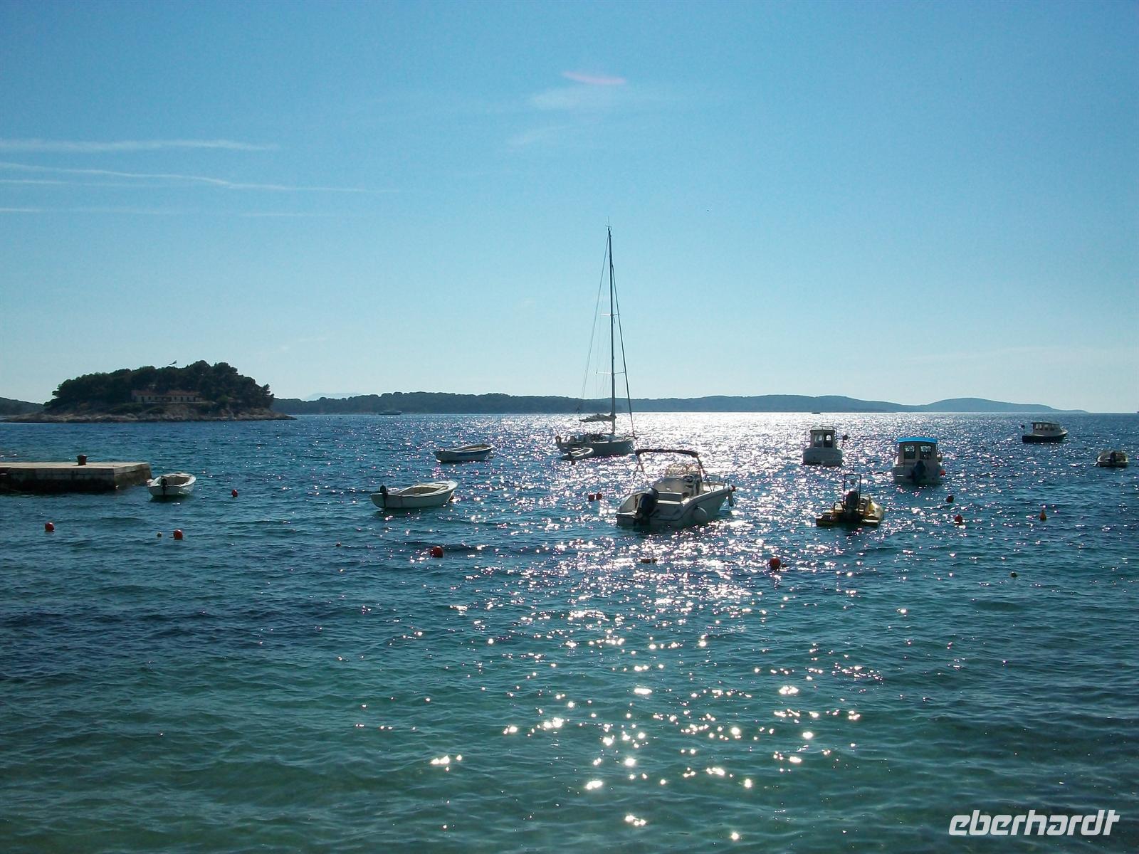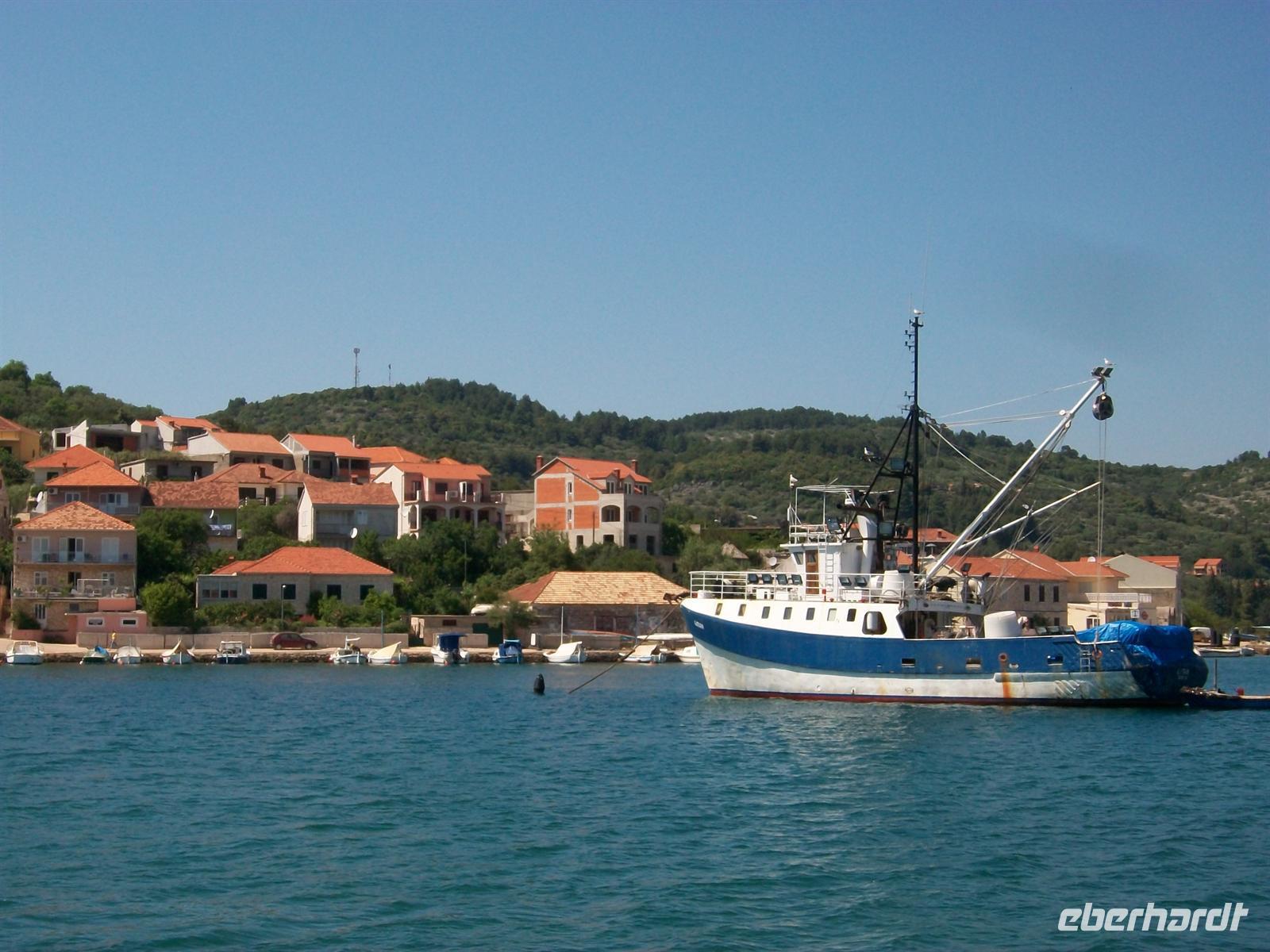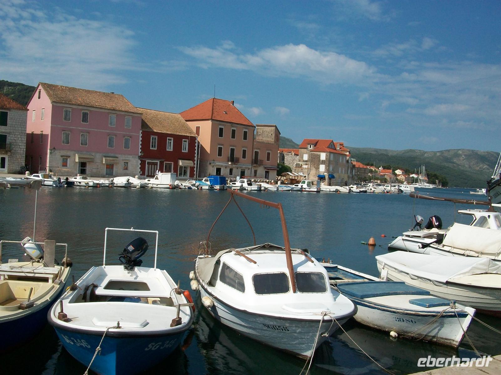 Später sind wir dann auf der Küstenstraße unterwegs, durchfahren den Ort Neum, sehen noch einmal die blauen Seen von Bain und langen gegen zwölf an der Fähre von Drvenik an. Hier werden wir dann später zur Insel Hvar übersetzen, die auslaufende Spitze dieser Insel ist von hier gut zu sehen.