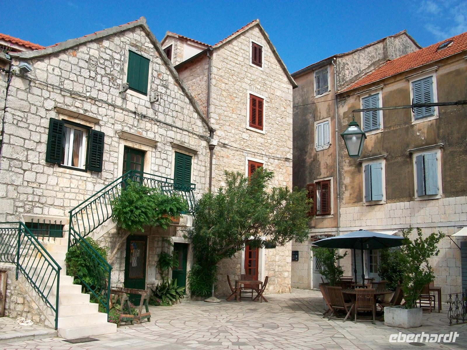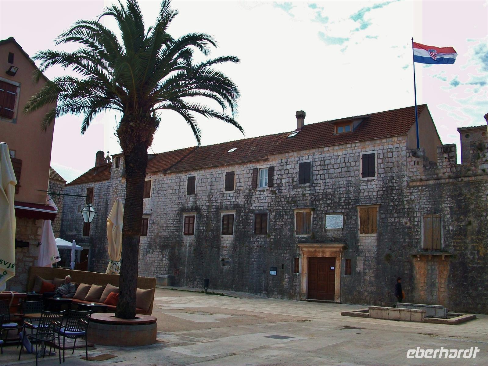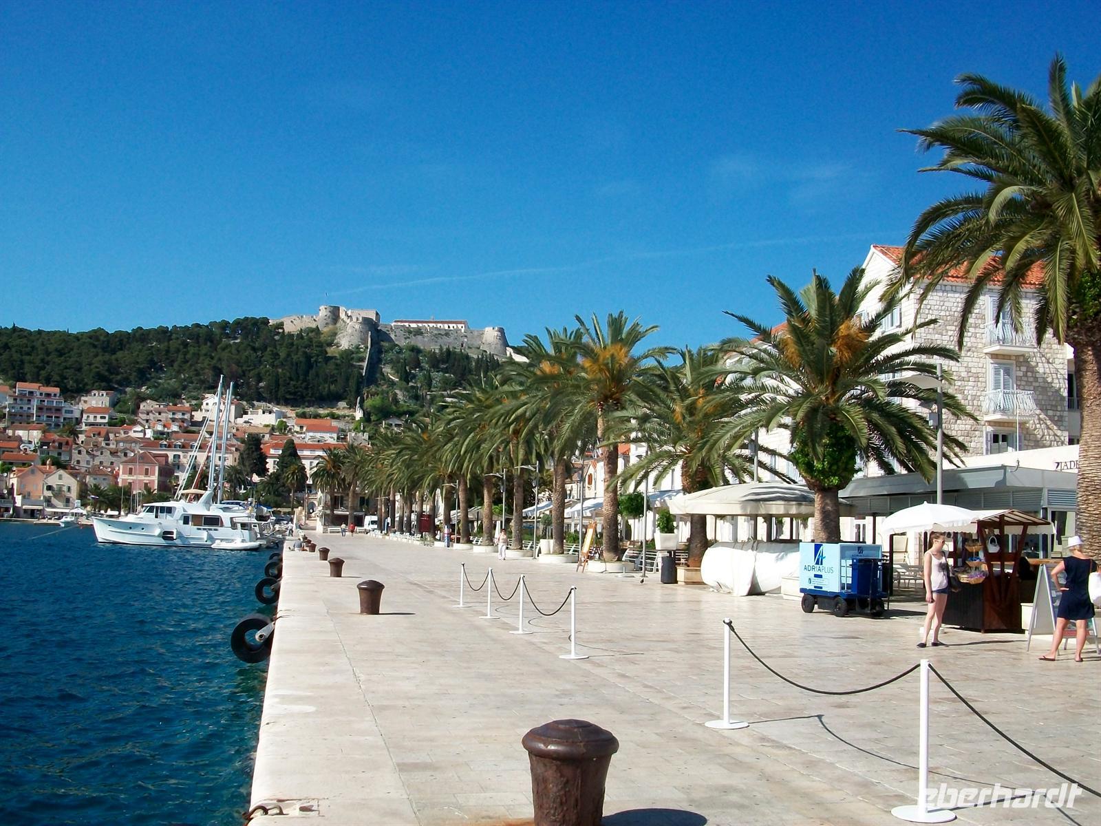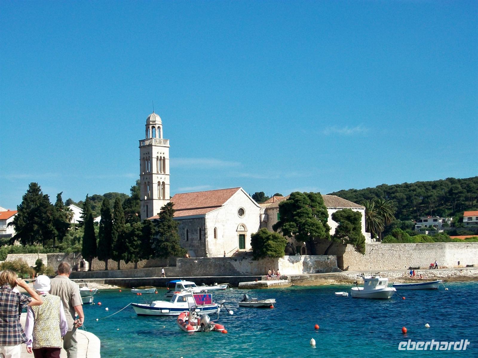 15.15 Uhr. Wir kommen im Ort Hvar an. Hier werden wir schon von unserer Ortsführerin Jasna erwartet, sie wird uns die nächste gute Stunde diese wirklich sehenswerte Stadt zeigen. Hvar ist eindeutig geprägt vom Einfluss der Venezianer, schöne Paläste zeugen vom ehemaligen Reichtum, wir durchstreifen die Gassen, gehen hinauf zum Stadttheater und sehen auch das Kloster. Dabei hat uns Jasna viel zu berichten, wie es hier einmal war und mit ihr sind wir wiederholt auf den Schwingen der Zeit unterwegs in ein uns unbekanntes Land der Vergangenheit welches es so nicht mehr gibt.
