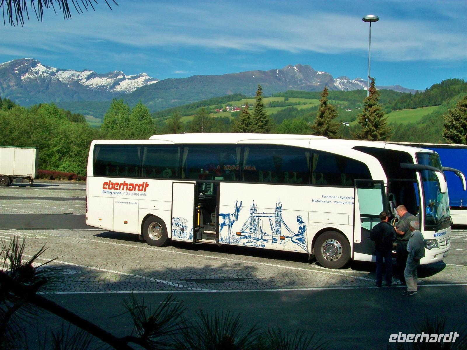 Gegen zwei überschreiten wir die Grenze zu Österreich und hinter Wels können wir schon die Berge der Kalkalpen sehen; dieser Fahrtabschnitt durch die Berge ist besonders schön.