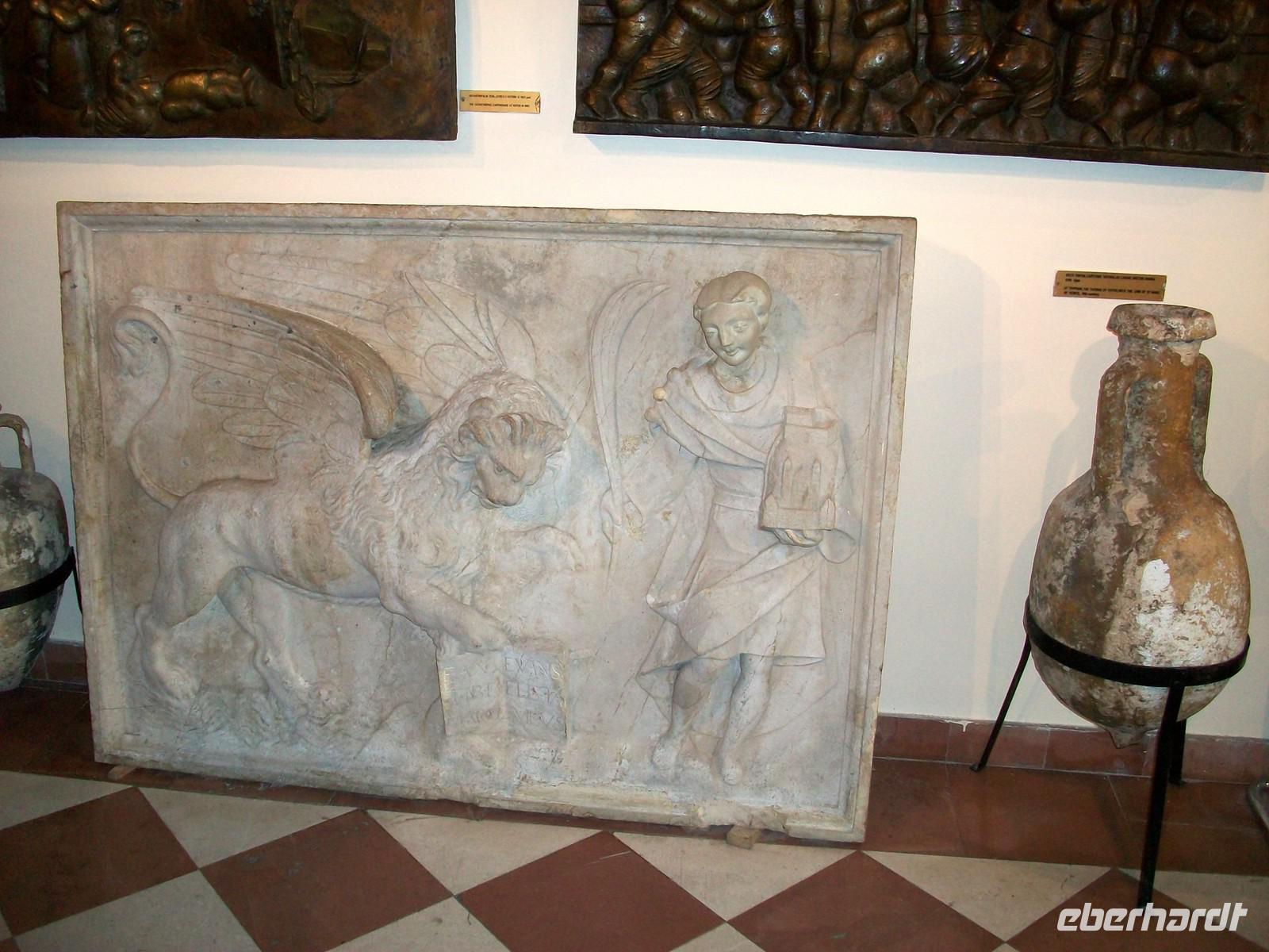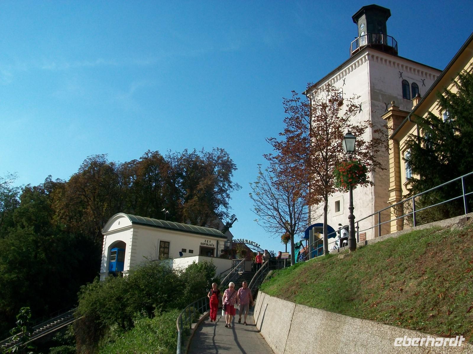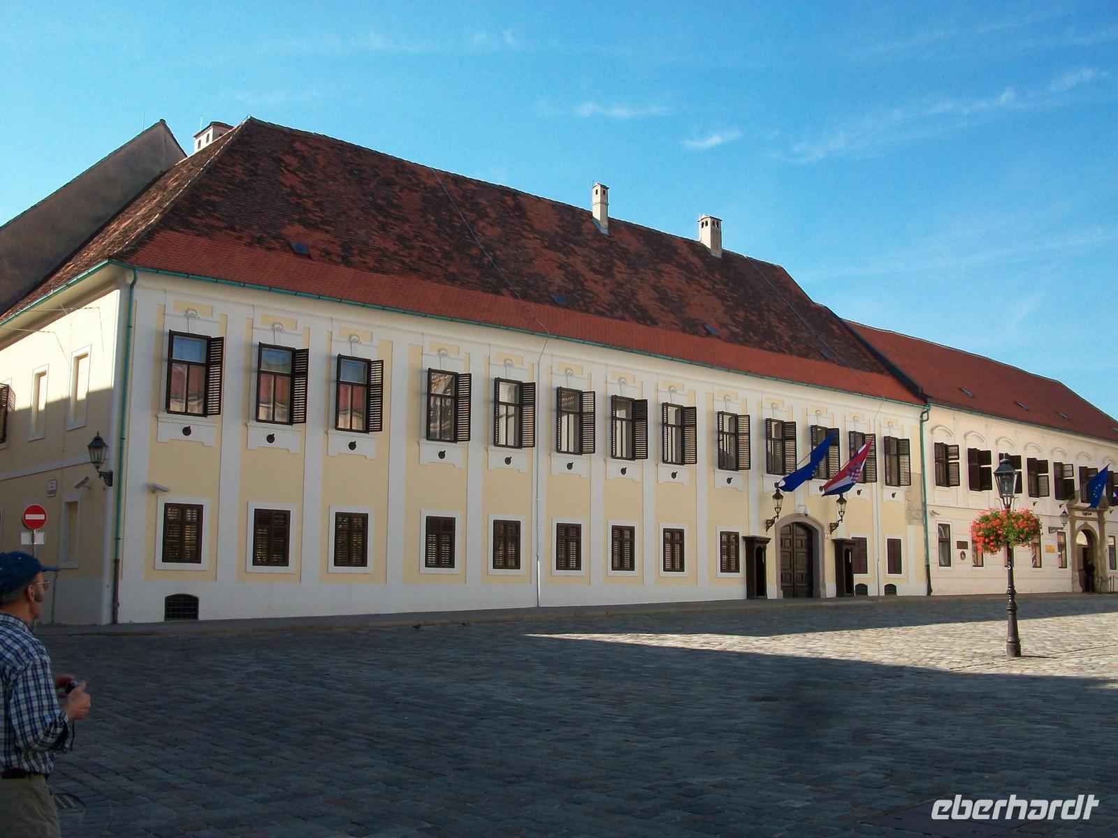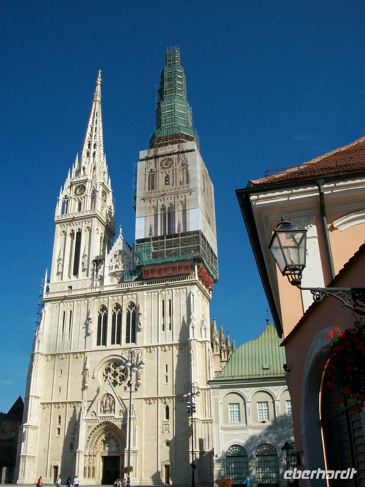 Dann fahren wir von dem Hügel herunter und besuchen im Anschluss die Kathedrale. Sie entstand nach dem Erdbeben von 1880 völlig neu und wird außen immer noch renoviert. Im Innern können wir mit Milovan ungestört eine Runde drehen, hier gibt es viel zu zeigen aus den verschiedenen Zeitepochen. Nach dem Besuch der Kirche geht es quer über den Marktplatz, hier wird zurzeit aufgeräumt und von da gelangen wir später zum Steintor. Bald stehen wir oben am Markusplatz und bestaunen die bunten Dachziegel der gleichnamigen Kirche, sie glitzern in den Strahlen der Nachmittagssonne und geben den Fotografen ein schönes Motiv.