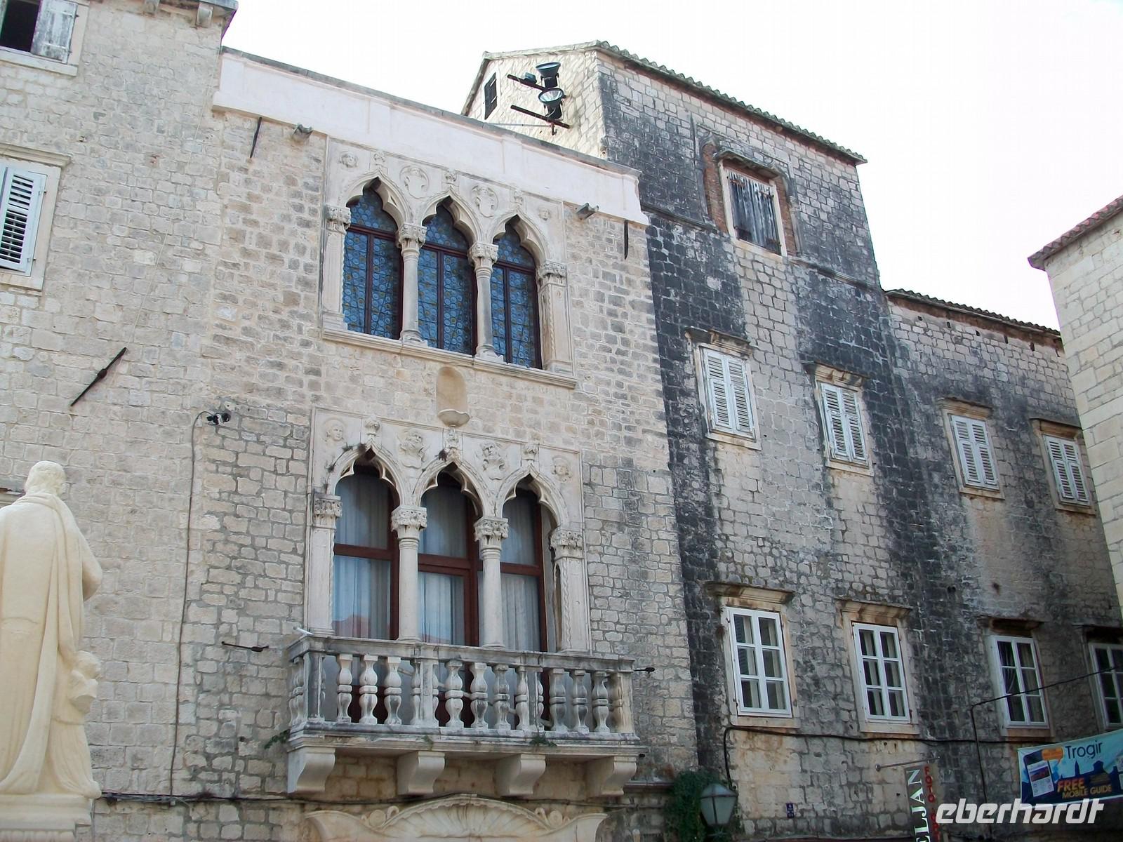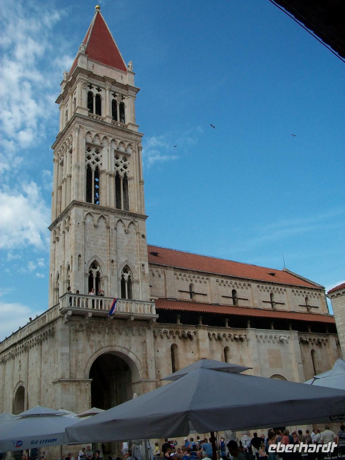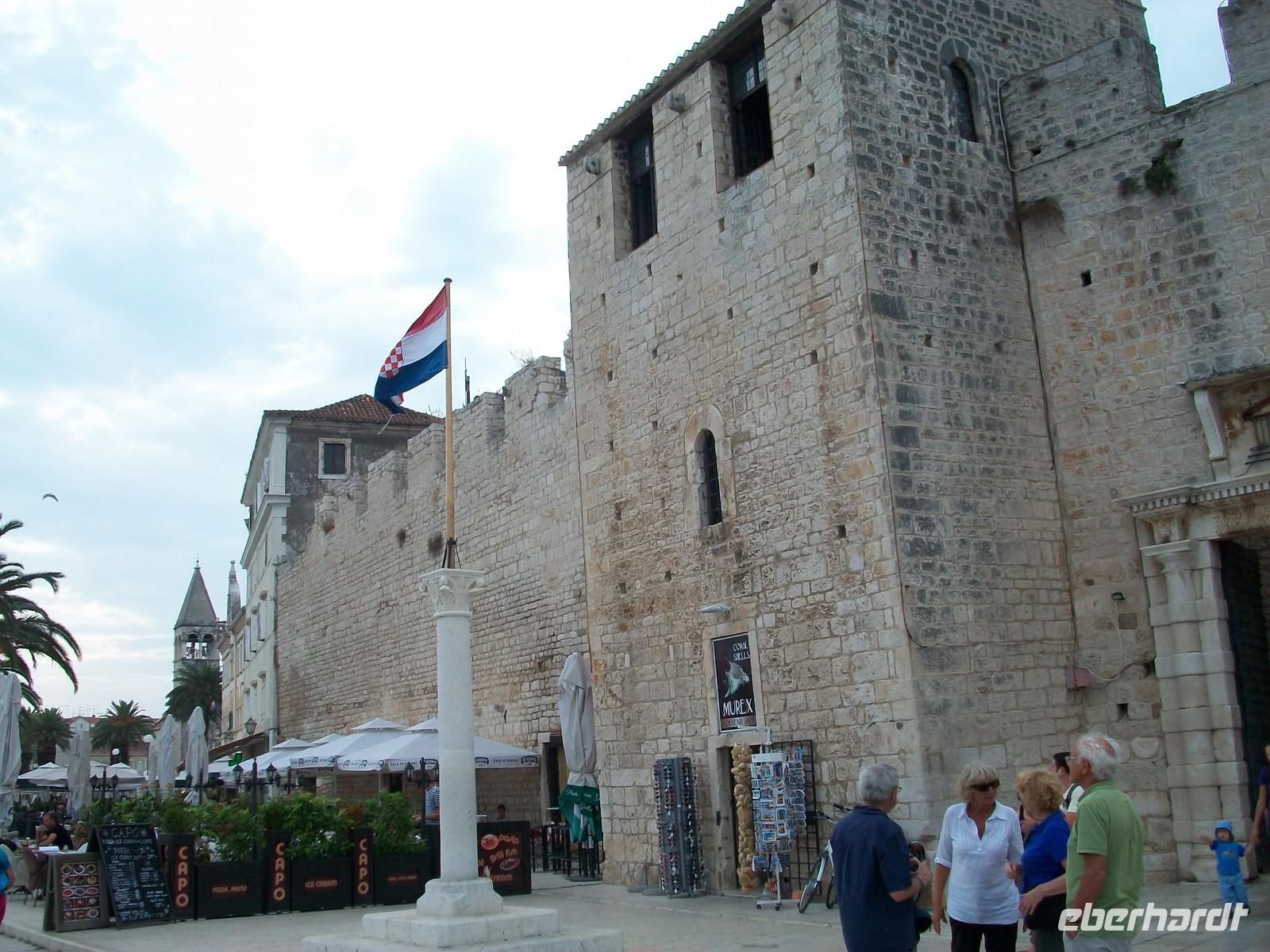 Dann sehen wir von Ferne schon den Turm der Kathedrale von Trogir, dort werden wir nun einen Halt einlegen und unsere Gäste haben hier die Möglichkeit in die Zeit der vergangenen Jahrhunderte einzutauchen. Die erste Siedlung begründeten seinerzeit schon die alten Griechen, lang vor Christi Geburt. Später waren es dann die Venezianer die die Stadt ausbauten. Der Reiz dieses Ortes liegt darin, dass es hier kaum Veränderungen gab und wir das Gefühl haben uns in einer längst vergangene Zeit zu befinden. Es gibt hier sehr enge Gassen in denen man kaum nebeneinander gehen kann, einen schönen Hauptplatz und direkt am Wasser eine schöne Promenade an deren Ende sich noch ein Fragment der alten Festung befindet. Hauptattraktion ist aber der schöne Skulpturenschmuck am Haupteingang der Kathedrale den einst der bekannte Bildhauer Meister Radovan schuf und der durch seine filigrane Ausführung besticht.