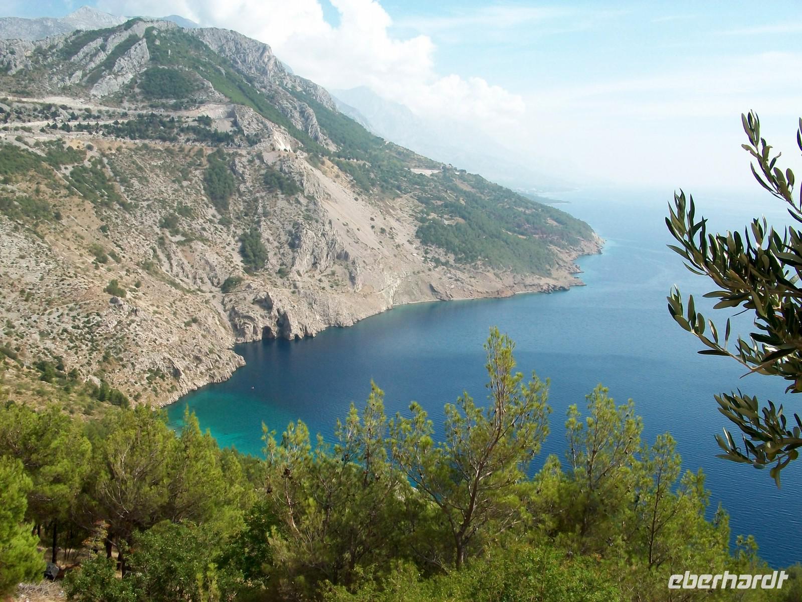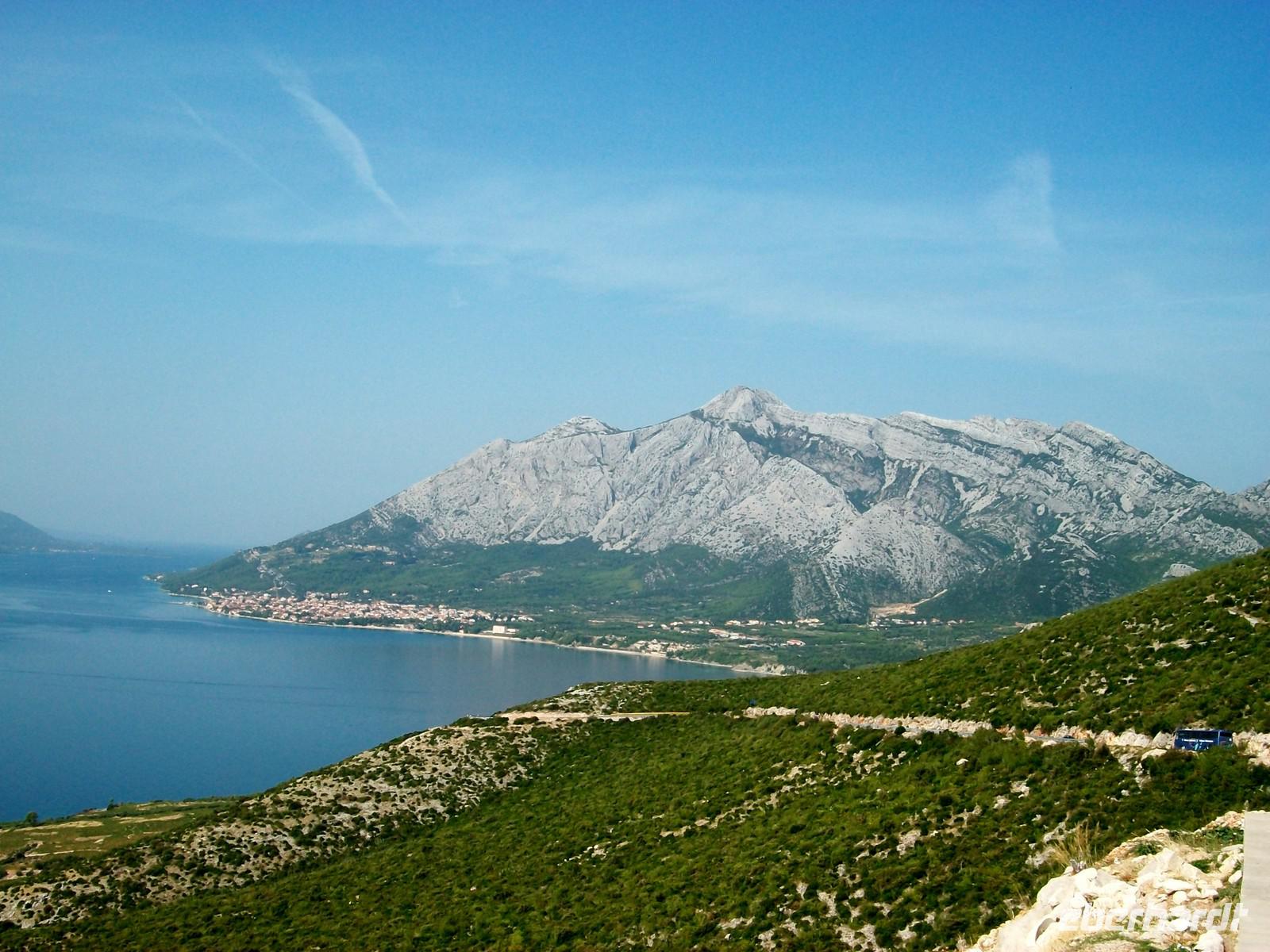 Für die nächsten Stunden verläuft unsere Fahrt entlang der Adriaküste. Dabei haben wir schöne Ausblicke auf das blaue Meer und die vorgelagerten Inseln die jedoch etwas im Dunst liegen. Hier an der Adria ist vom Herbst noch nichts zu spüren, die Sonne heizt uns kräftig ein als wir am schönen Aussichtspunkt zu Beginn der Makarska Riviera einen Stopp einlegen. Hier befinden wir uns über 100 Meter über der Meeresoberfläche und vor uns ist das mächtige Biokovogebirge zu sehen; auf den Spitzen der Berge haben sich einige Wolken aufgelegt- ein malerischer Anblick.