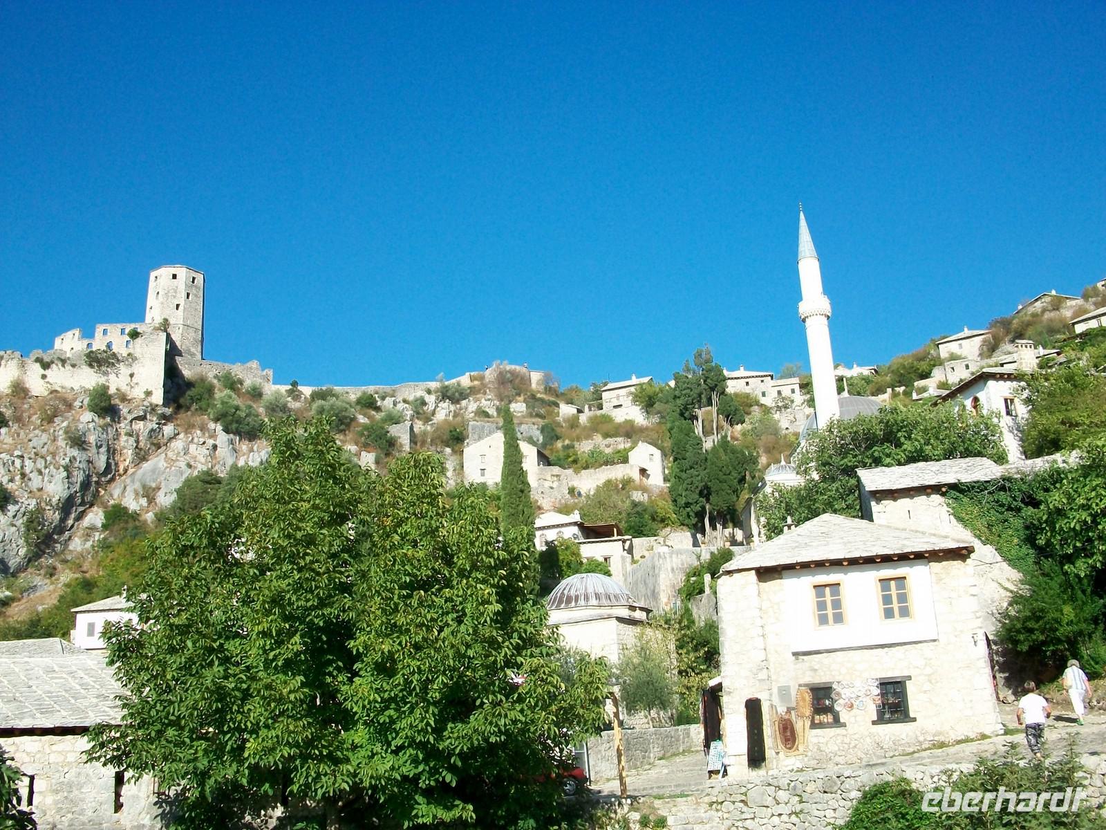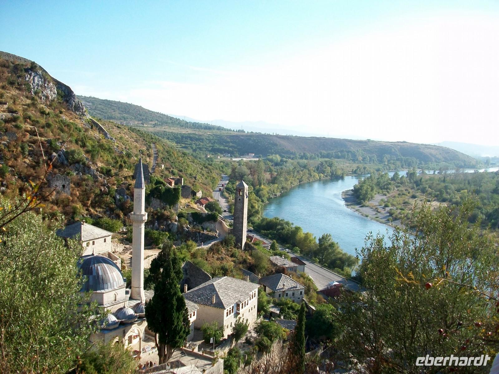 Die Grenzformalitäten an der Grenze zu Bosnien gehen heute besonders schnell, nach dem Übertritt sind wir bald im Ort Pocitelj angelangt. Hier lohnt ein Besuch immer, zur Türkenzeit angelegt, zeigt er uns ein typisches Dorf aus dieser Epoche. Etwas mühselig ist der Aufstieg zur ehemaligen Festung, hat man den aber geschafft wird man von einer grandiosen Aussicht belohnt. Unter den Füßen schlängelt sich der Fluss Neretva entlang, überall ist die üppige Vegetation des mediterranen Bereiches zu sehen.