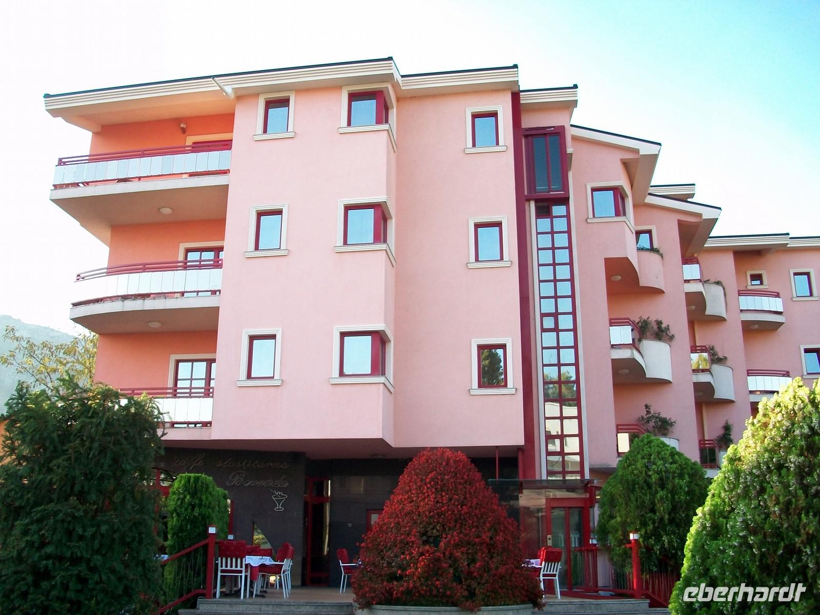 Danach unternehme ich noch einen kleinen Spaziergang, das Hotel liegt direkt an der Adria. Die Schwüle ist fast unerträglich geworden, in der Ferne auf dem Meer wetterleuchtet es und es liegt ein Gewitter in der Luft. Schon ist der Donner zu hören, erste Tropfen kündigen es an. Zeit um zum Hotel zurück zu kehren, keine Minute zu früh. Starkregen, Blitz und Donner lassen heute den Tag ausklingen, im Schutz des Hotelzimmers kann man dem Aufruhr der Elemente gelassen zusehen.